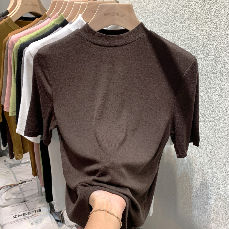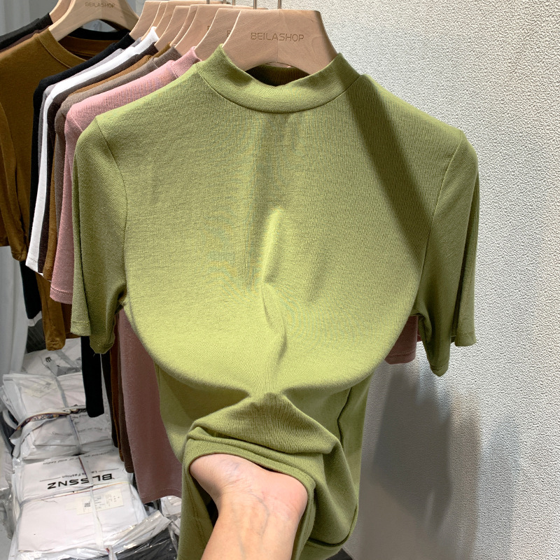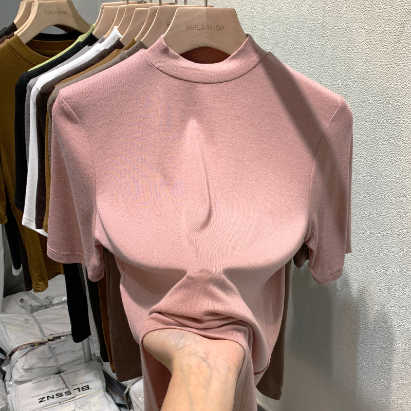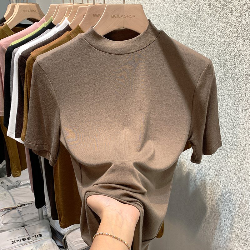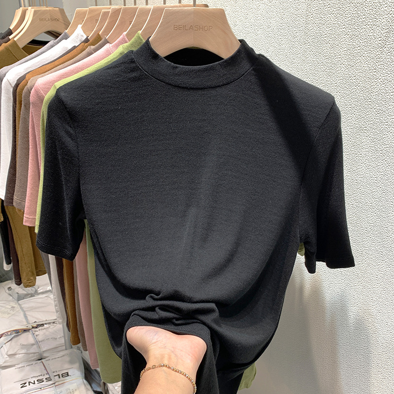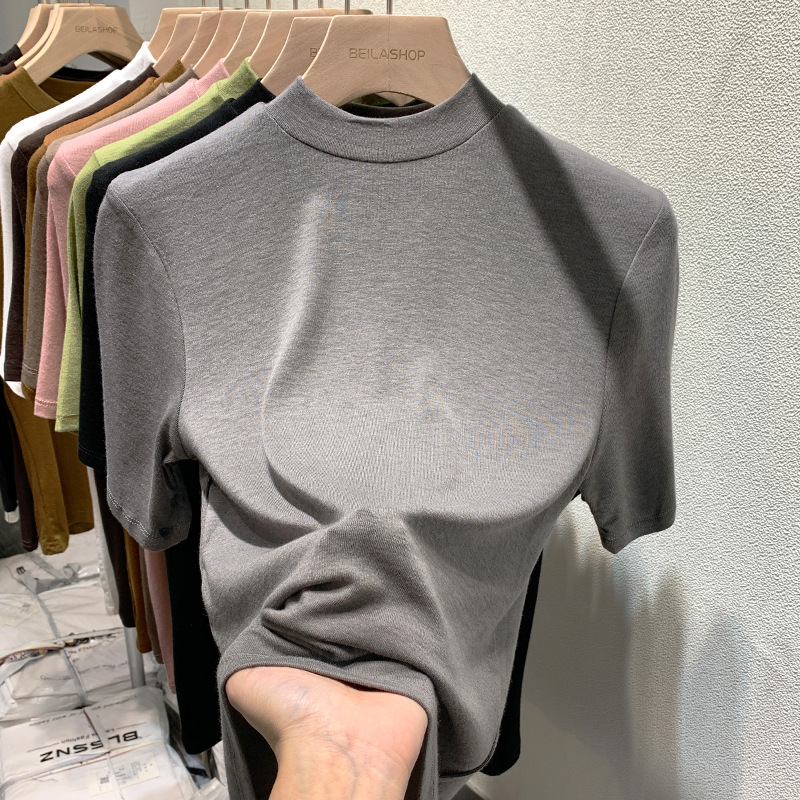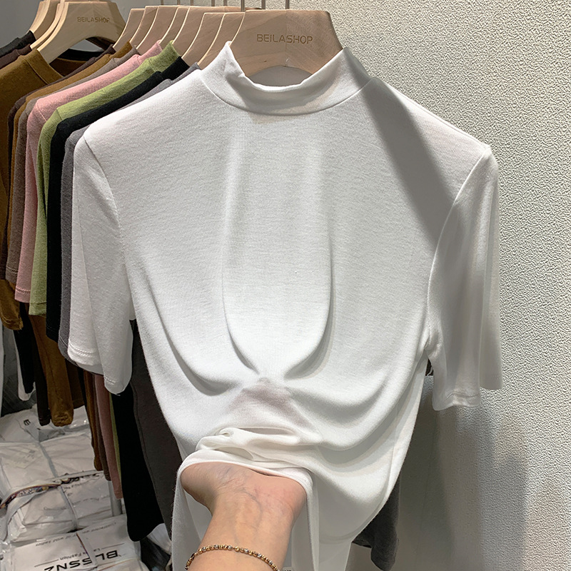 半高领打底衫女内搭春装年新款洋气半袖体恤上衣短袖t恤女潮