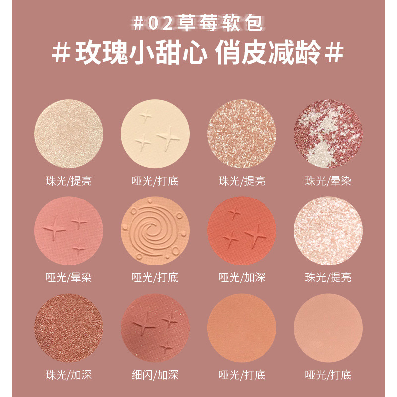 彩妆少女大地色粉色系眼影哑光珠光细闪眼影盘