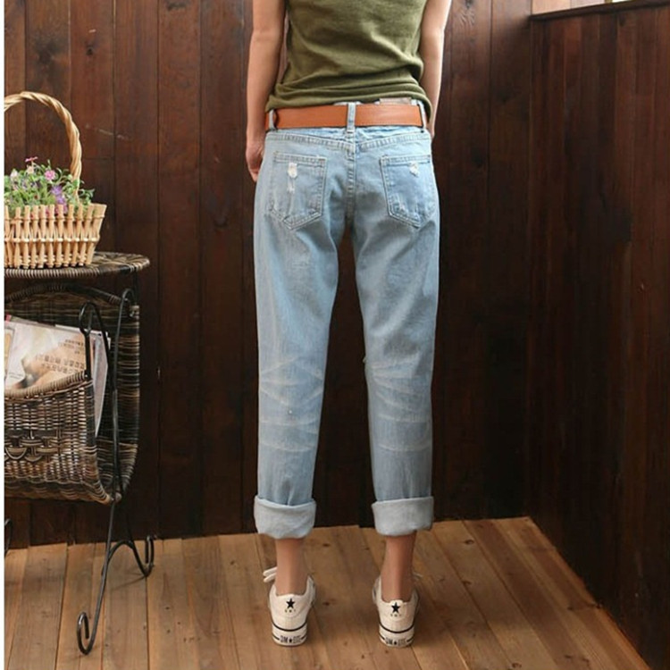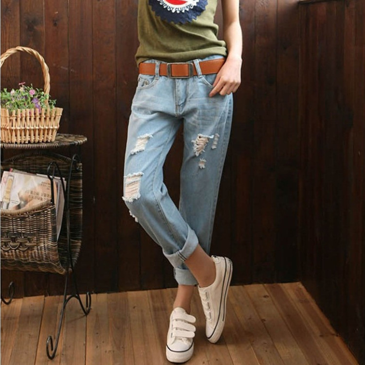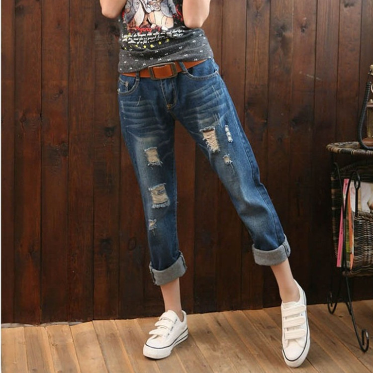春秋新款破洞牛仔哈伦裤女夏九分裤休闲宽松磨破9分乞丐裤潮