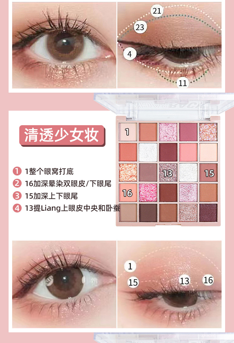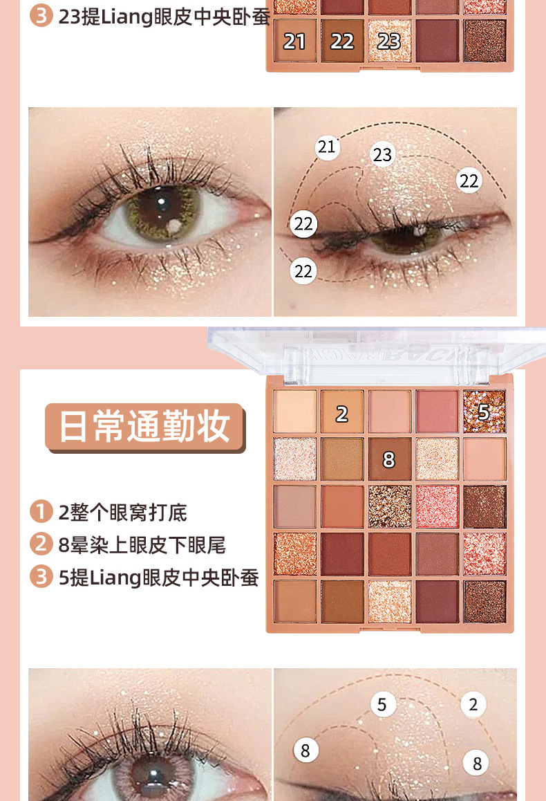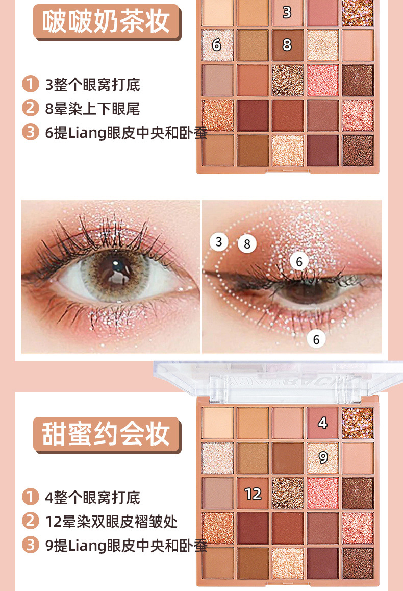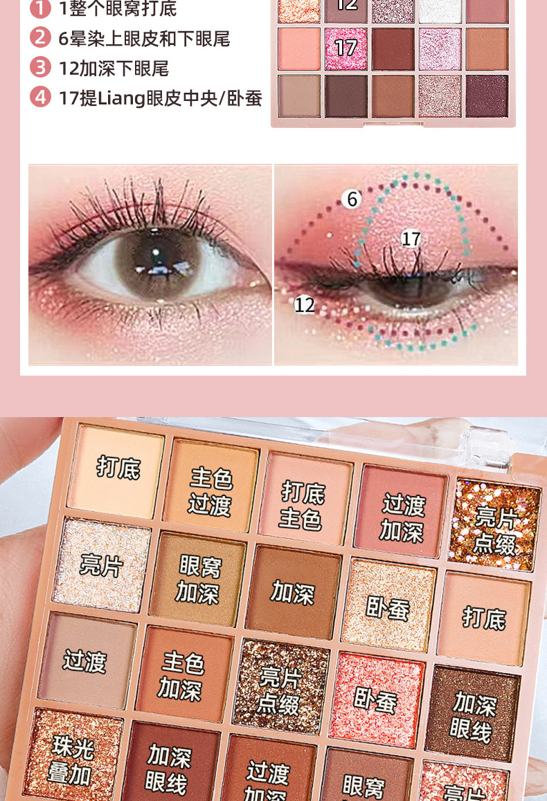 眼影盘大地色哑光珠光粉嫩亮片超闪一盘多用