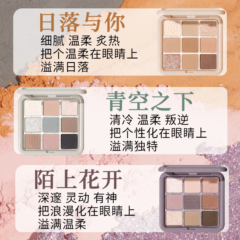 春日九色眼影盘九宫格珠光哑光细闪9色眼影芋泥盘橘棕盘大地盘女