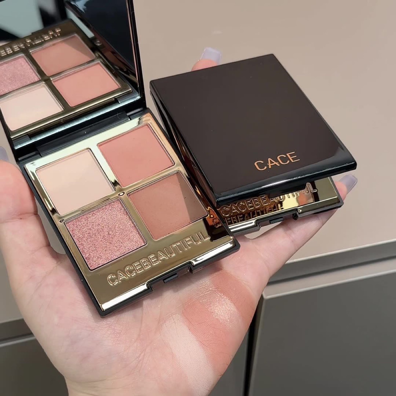 黑金四色眼影大地色珠光日常四色潮女出街补妆便携褐色深色系
