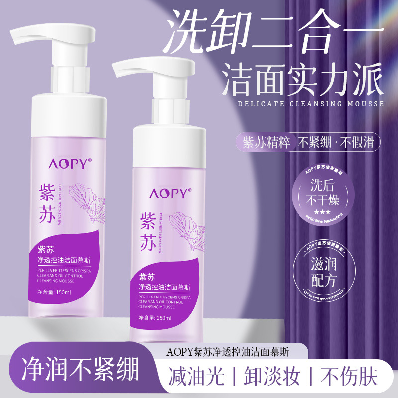紫苏净透洁面慕斯洗卸合一面奶清洁保湿泡沫细腻水润控油洁面乳