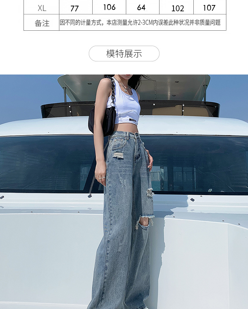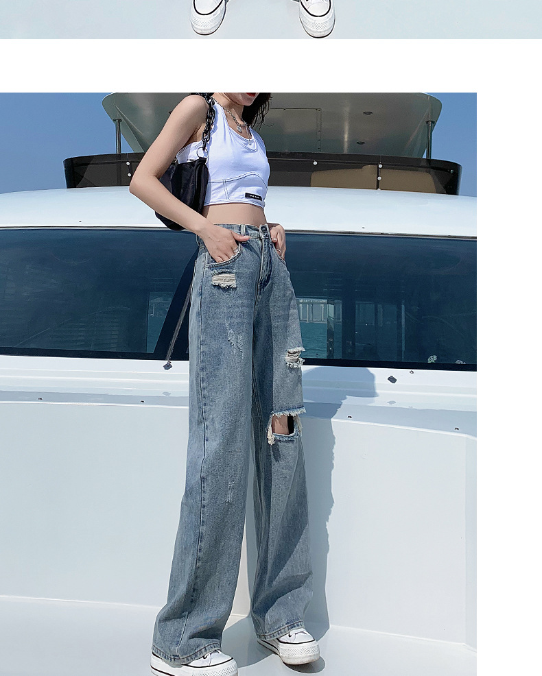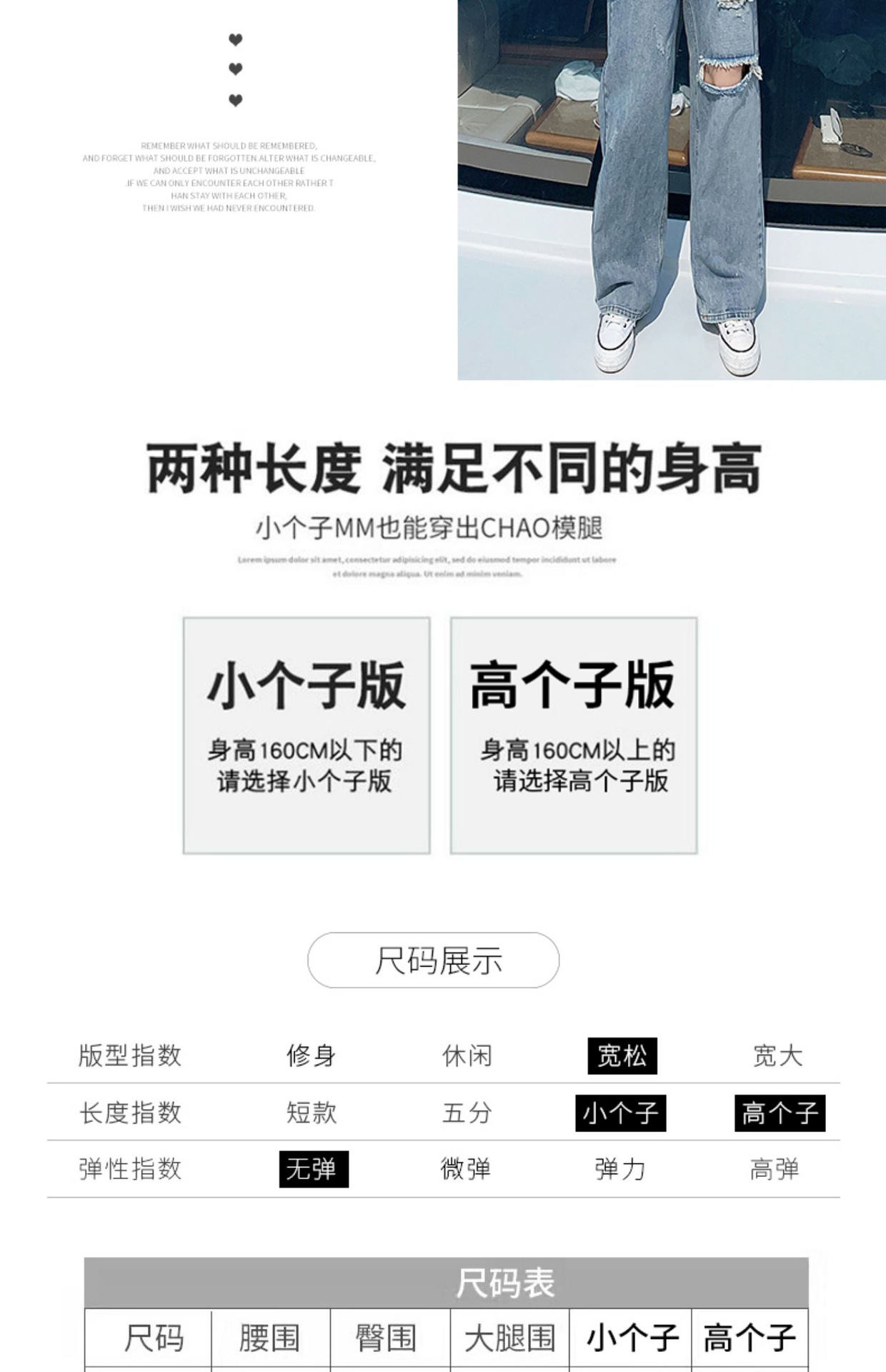 破洞牛阔腿仔裤女春秋季新款小个子高腰显瘦宽松垂感直筒裤ins潮