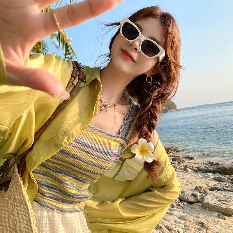 木耳边吊带背心女外穿夏新款设计感小众撞色针织条纹内搭打底上衣