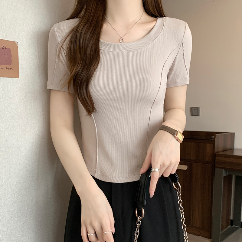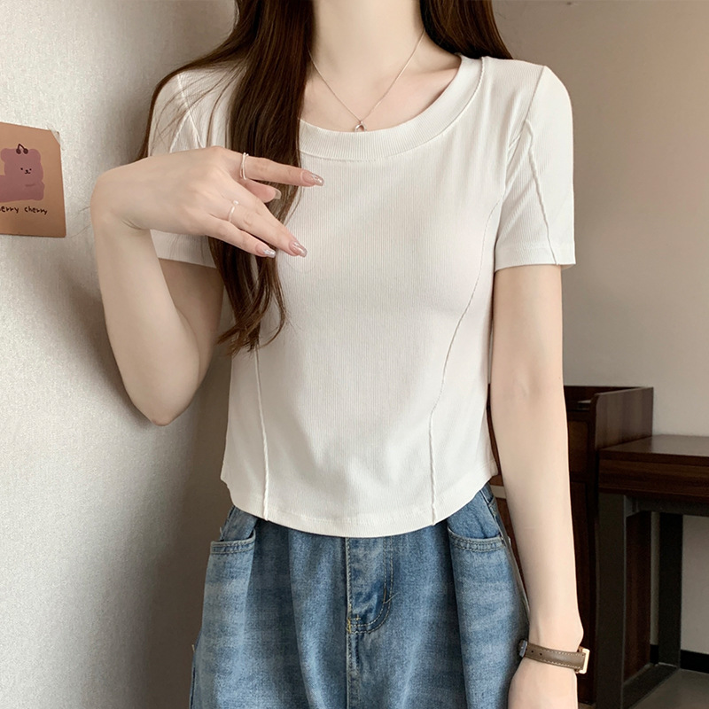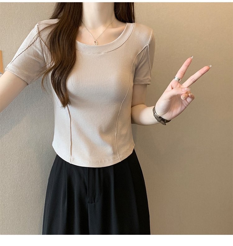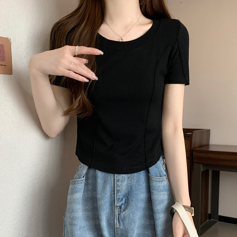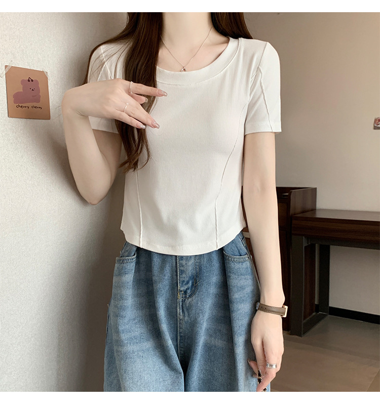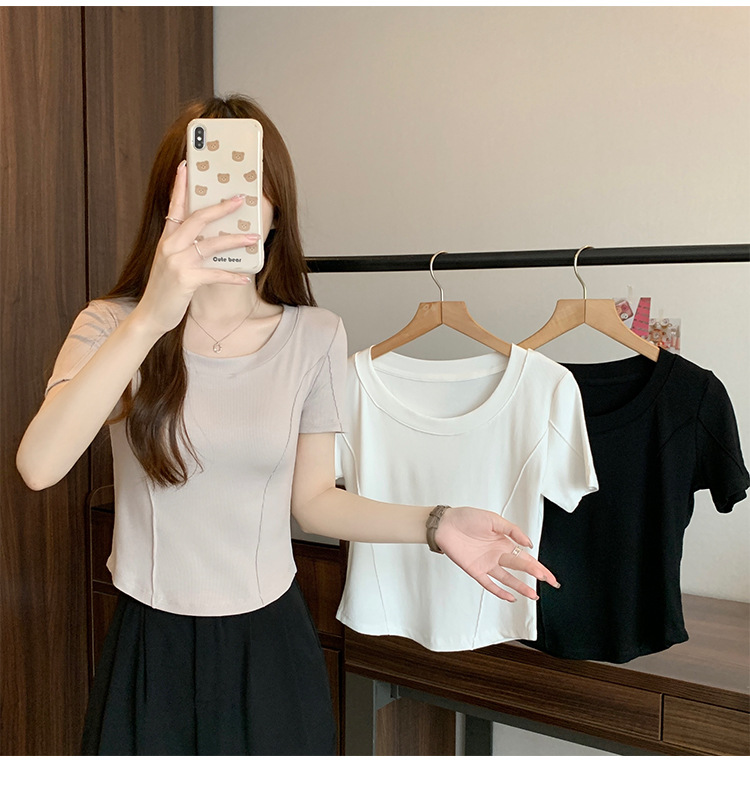 别致短袖t恤女正肩设计感夏装小众心机短款修身鱼骨上衣独特