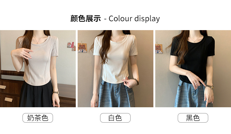 修身显瘦拼接撞色上衣女2025年春季新款短款短袖打底衫内搭T恤潮