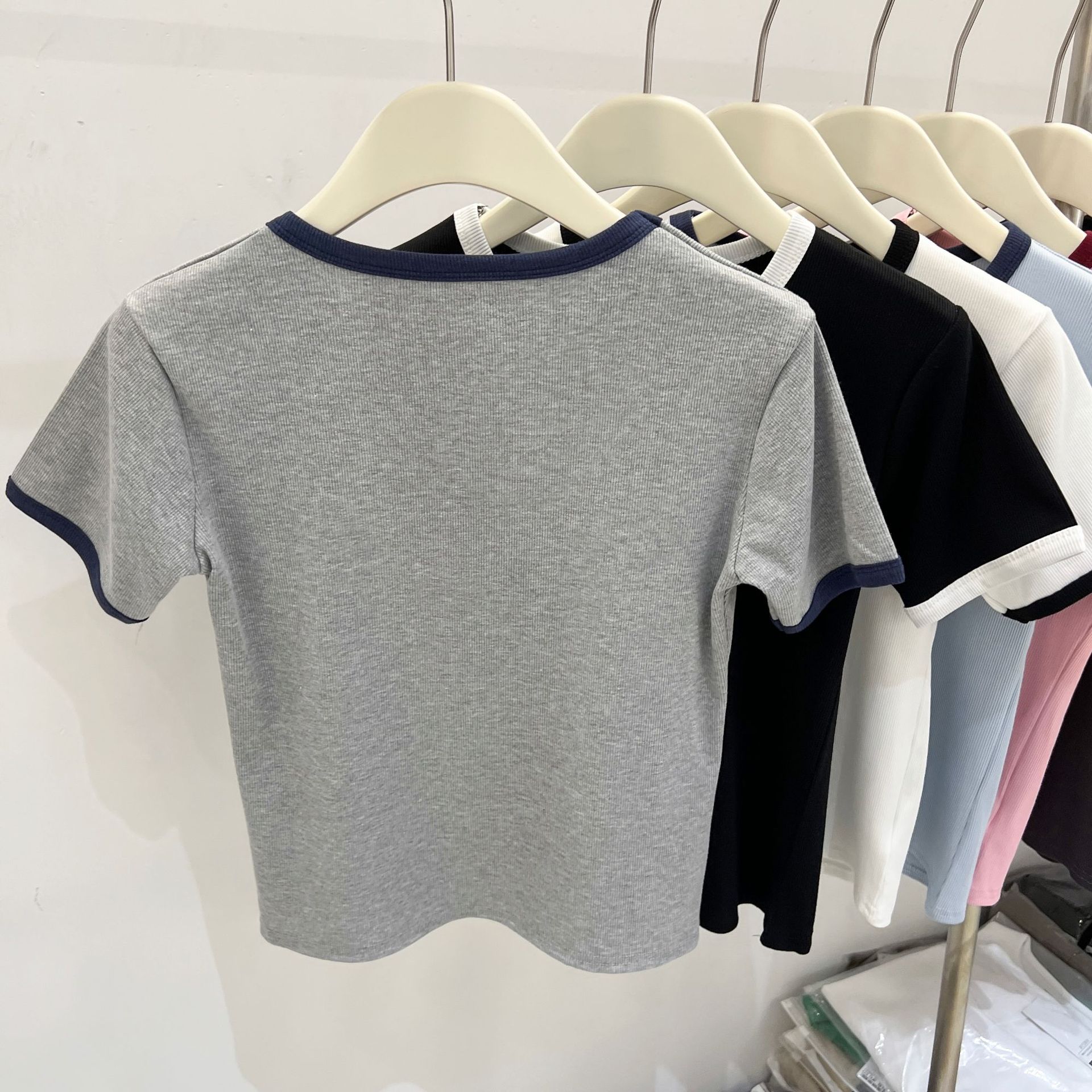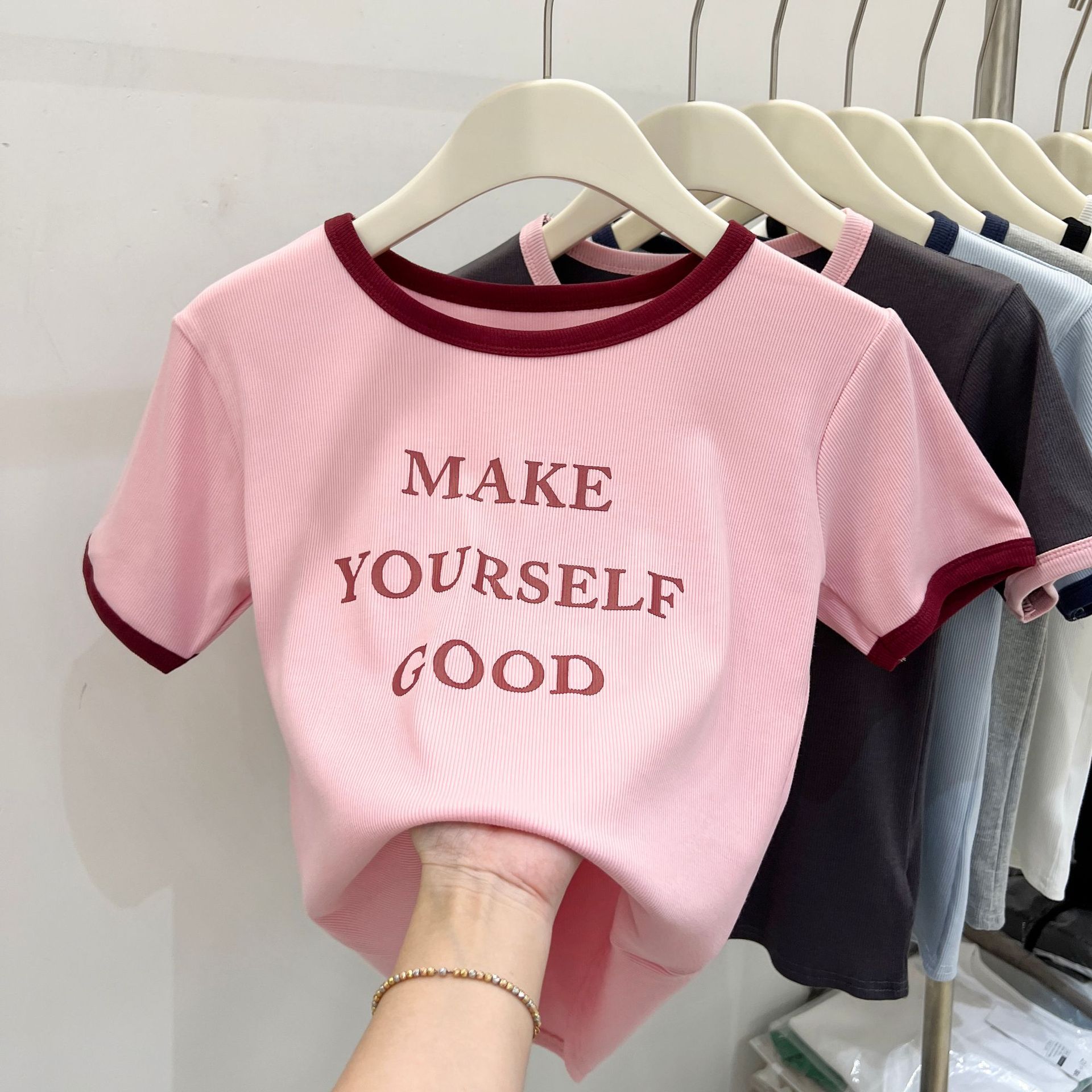 短袖t恤女修身夏季新款设计感小众字母印花短款上衣