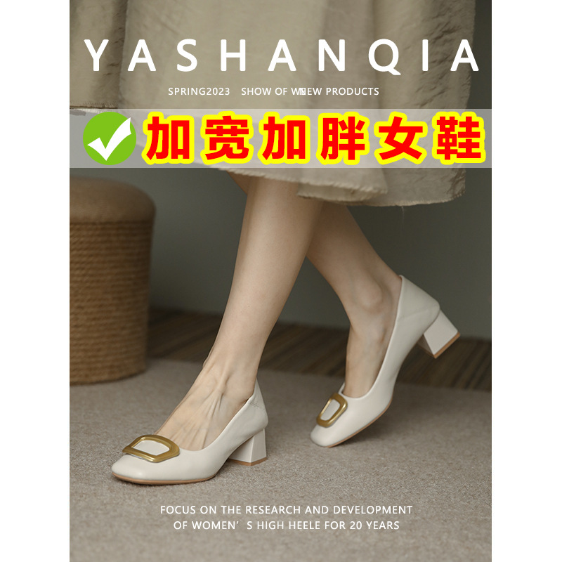 春秋新款大码女鞋41一43 加肥加宽名媛高跟鞋 小香风粗跟单鞋