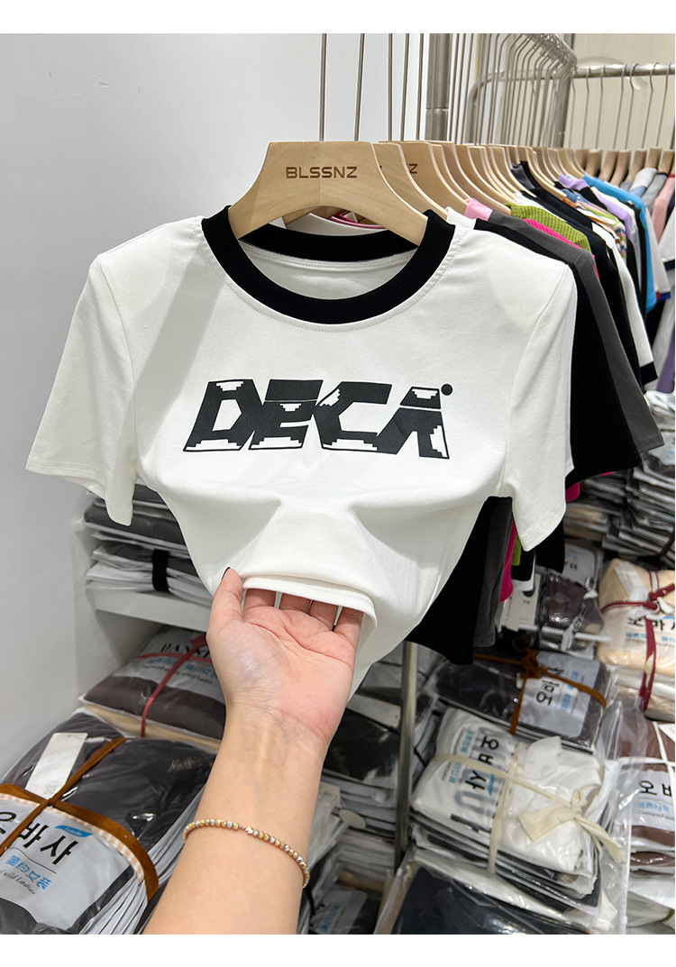 超手感莫代尔夏季新款垂软弹滑凉快字母印花圆领短袖T恤上衣女装