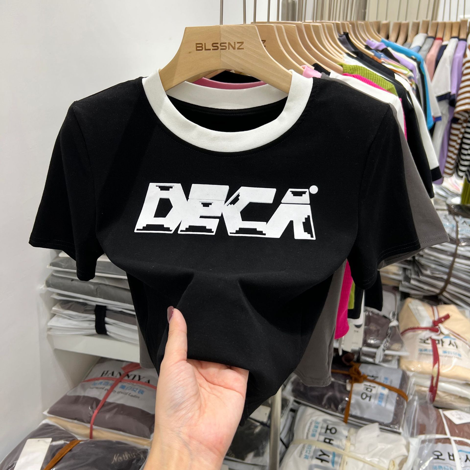 复古印花短袖t恤女ins夏季别致甜辣妹短款上衣