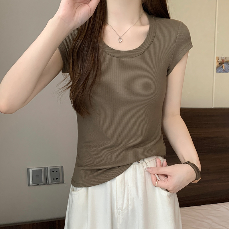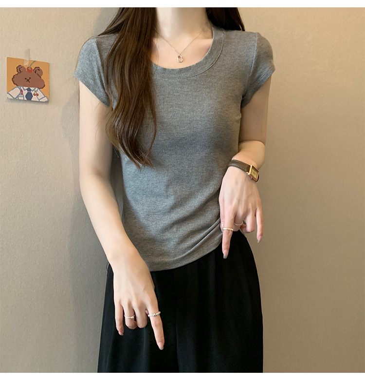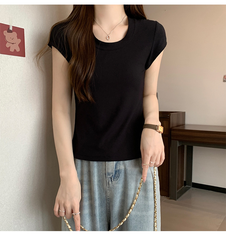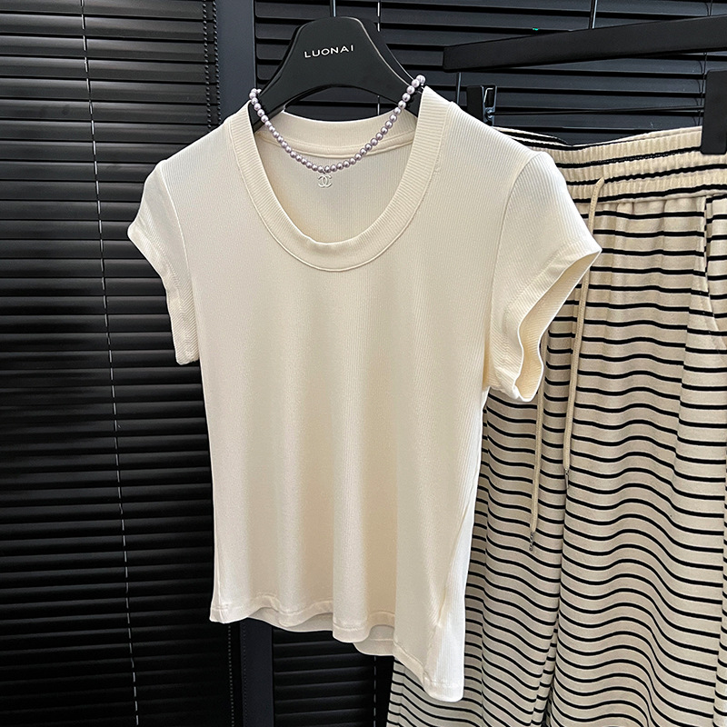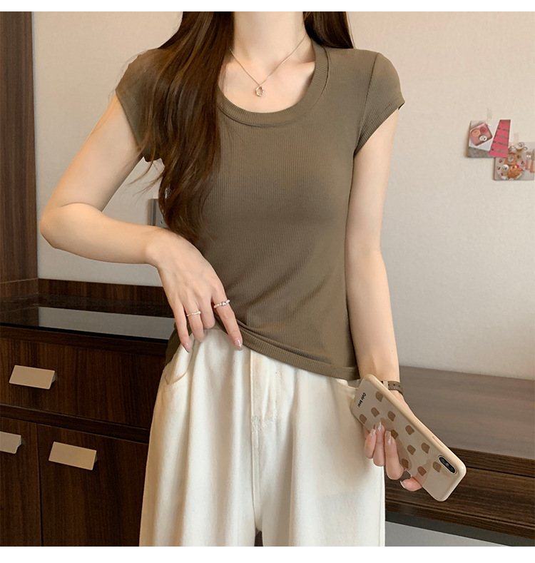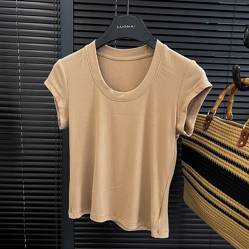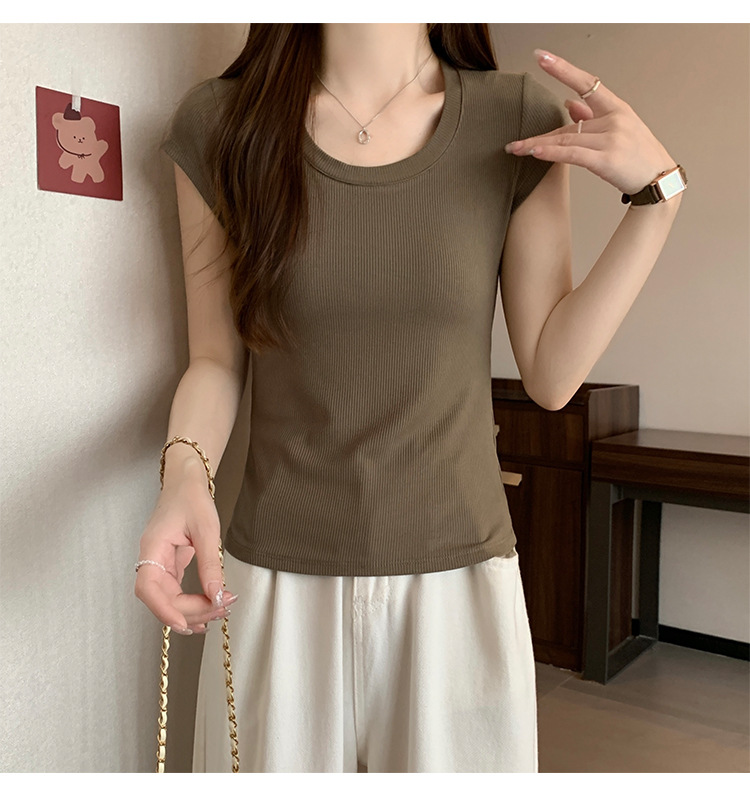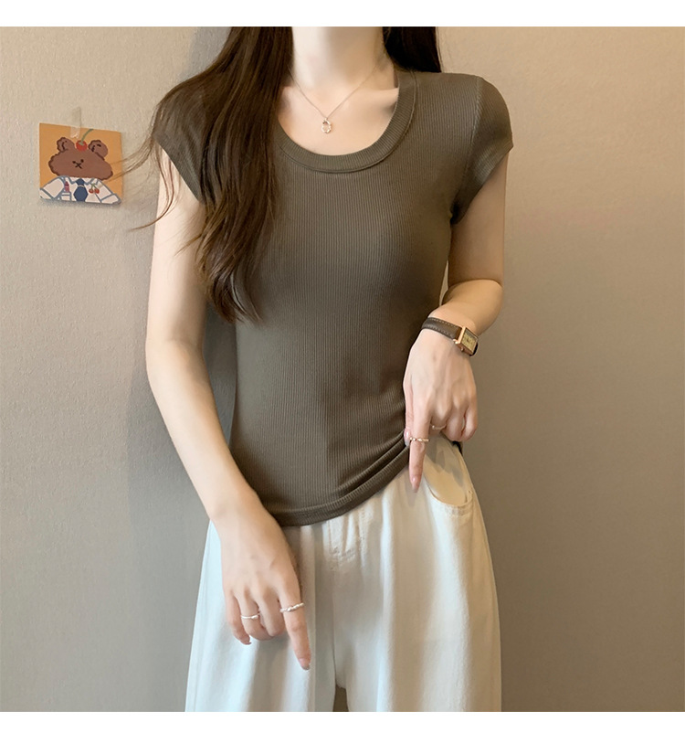 螺纹u领短袖t恤女夏季新款坎肩体恤修身百搭上衣ins