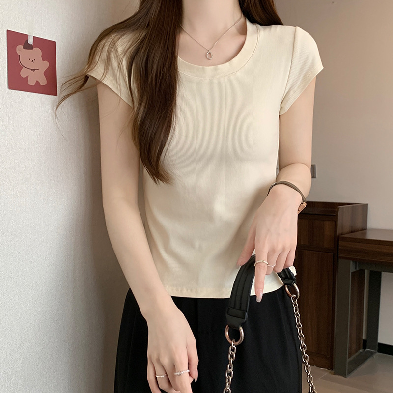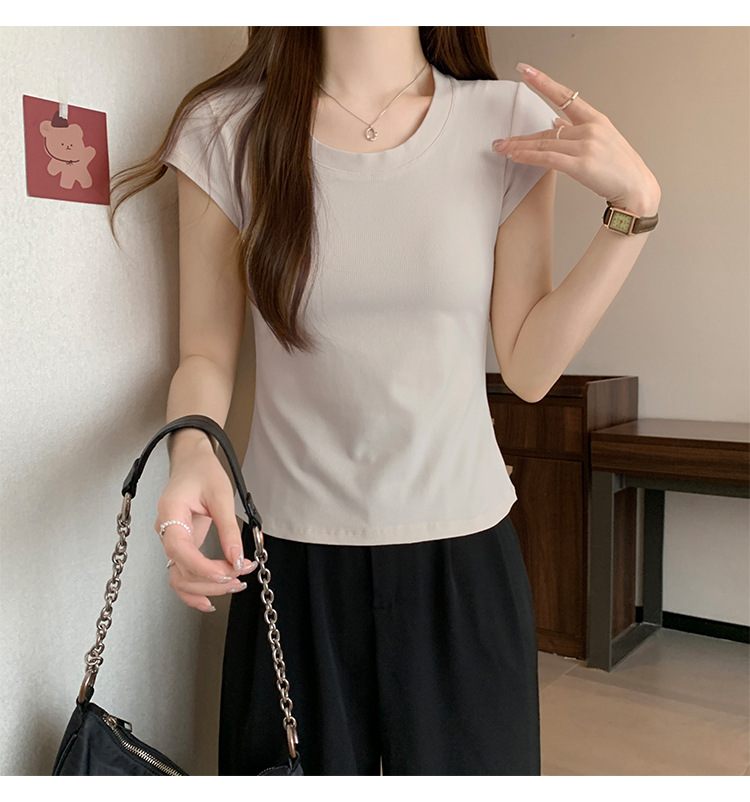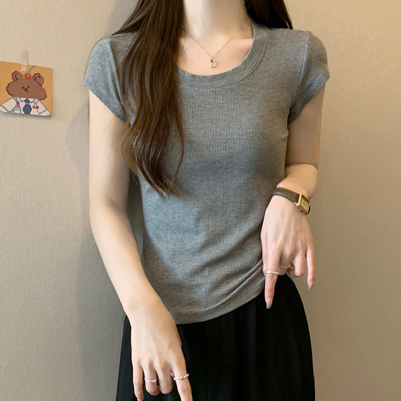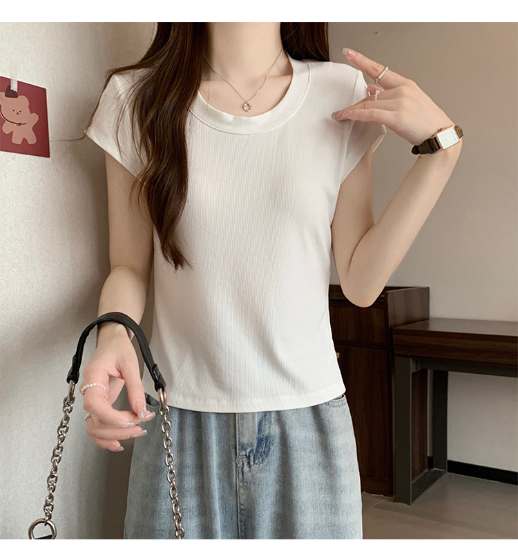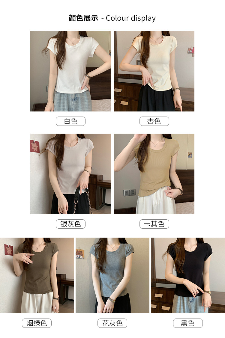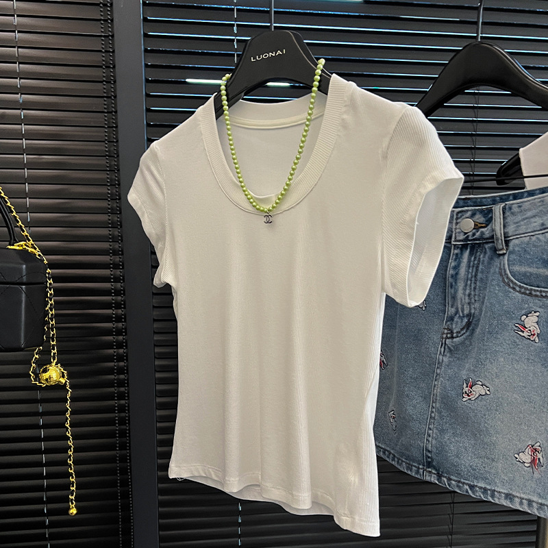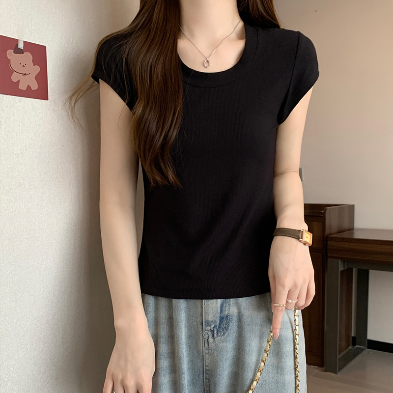 螺纹u领短袖t恤女夏季新款坎肩体恤修身百搭上衣ins