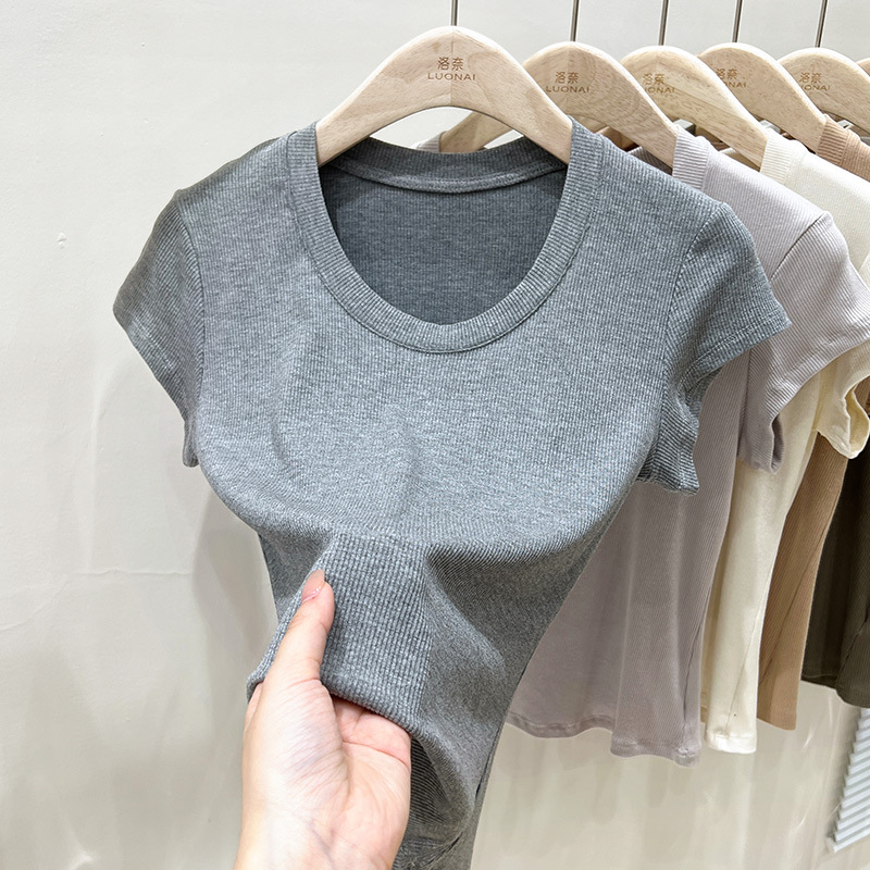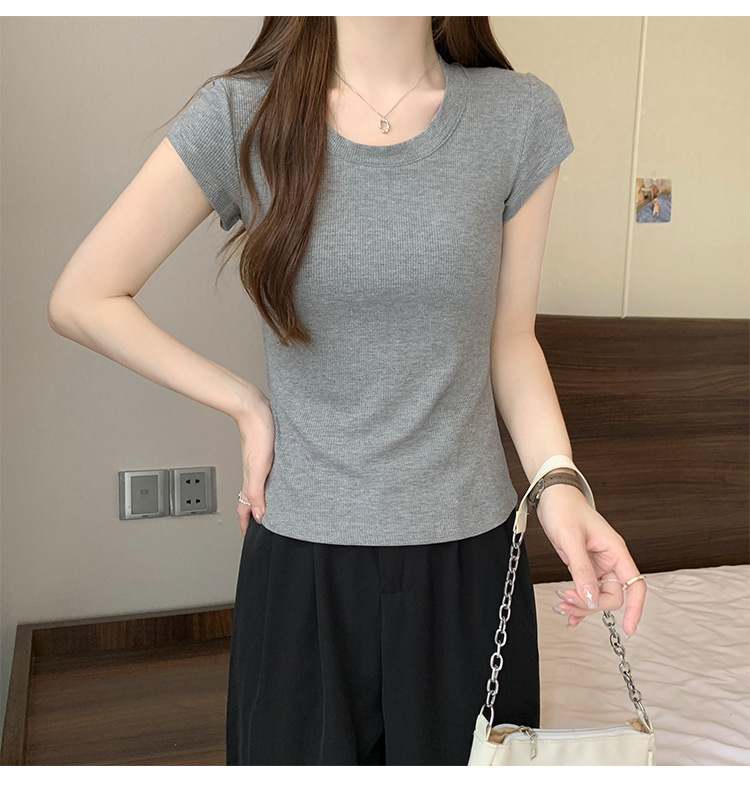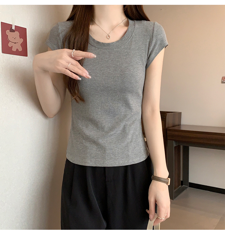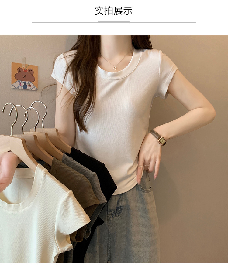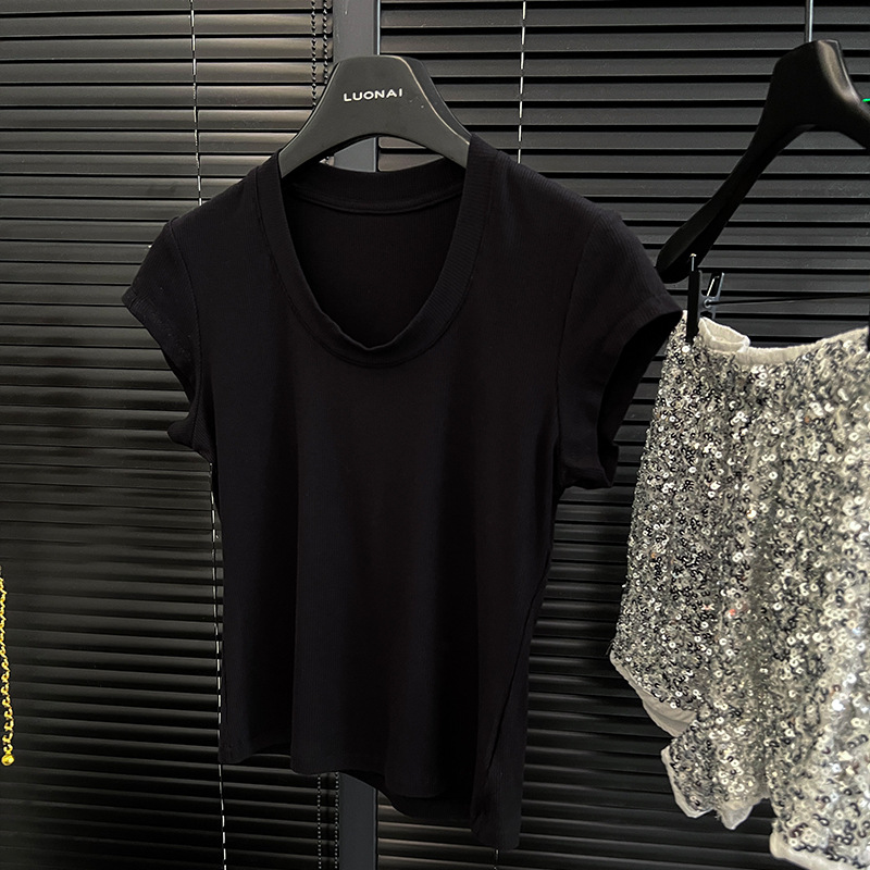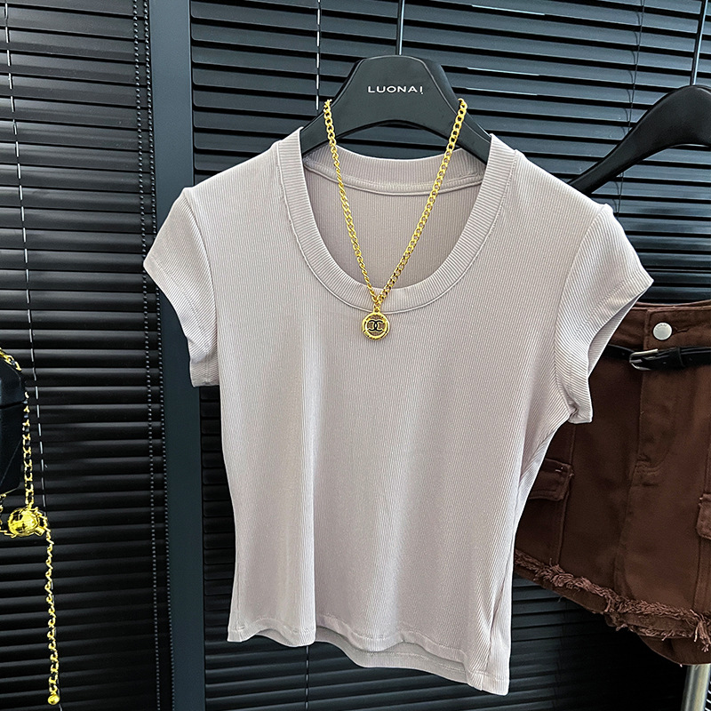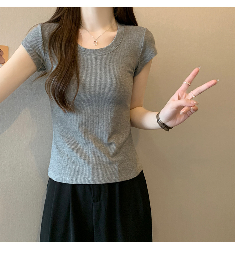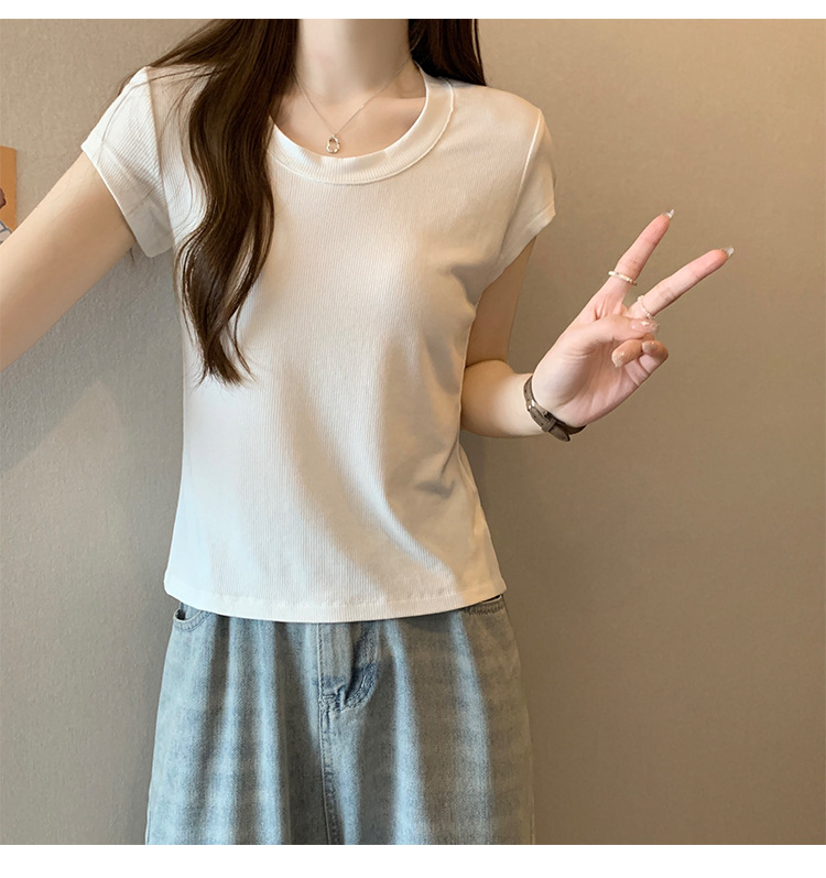螺纹u领短袖t恤女夏季新款坎肩体恤修身百搭上衣ins
