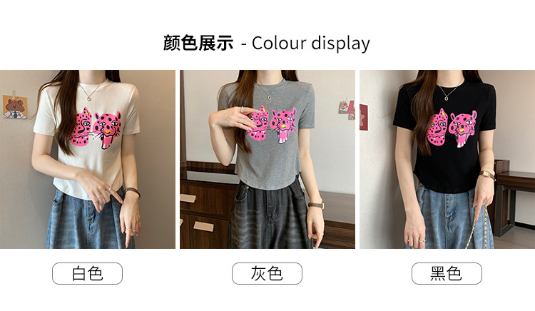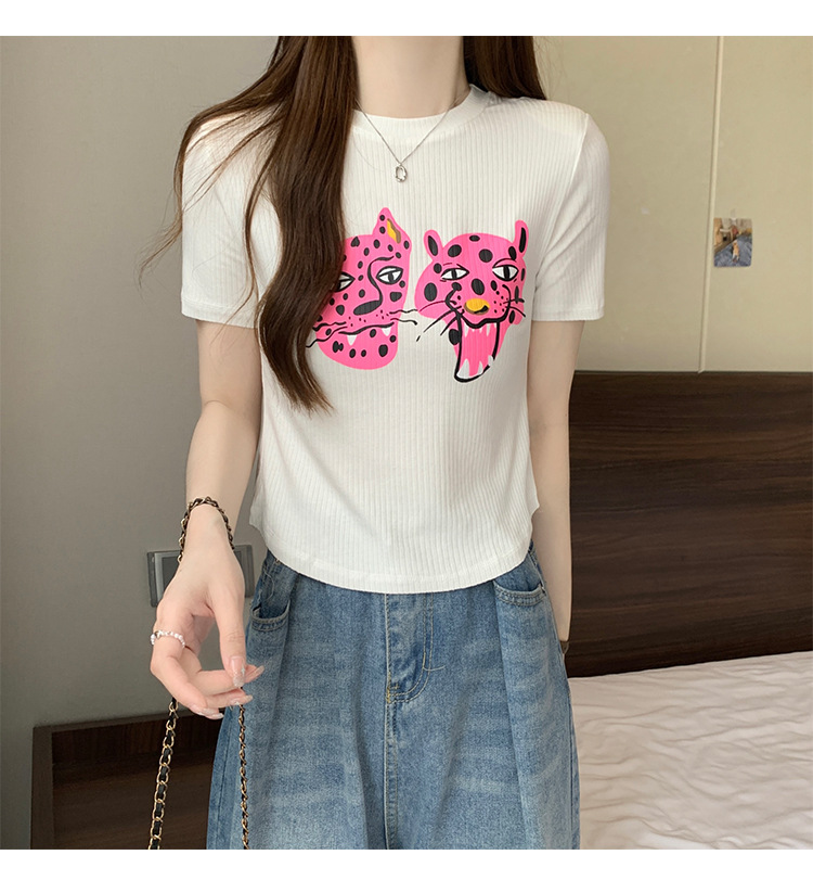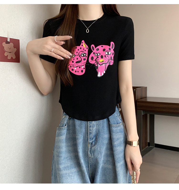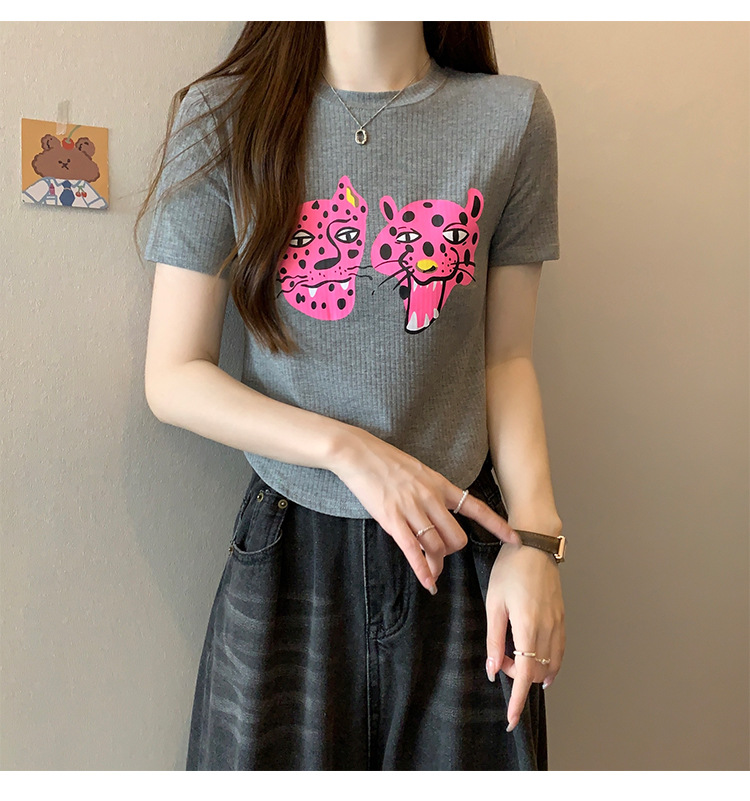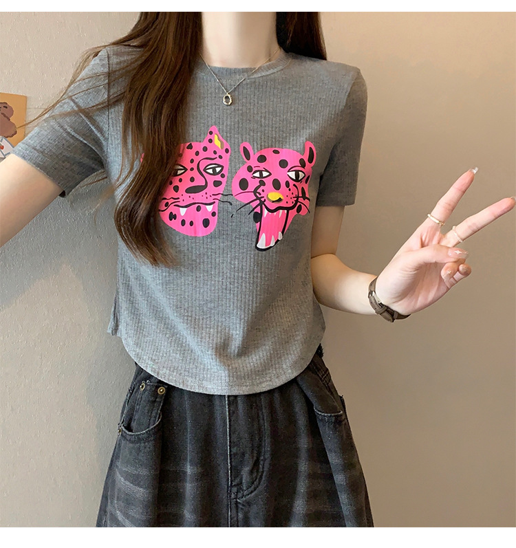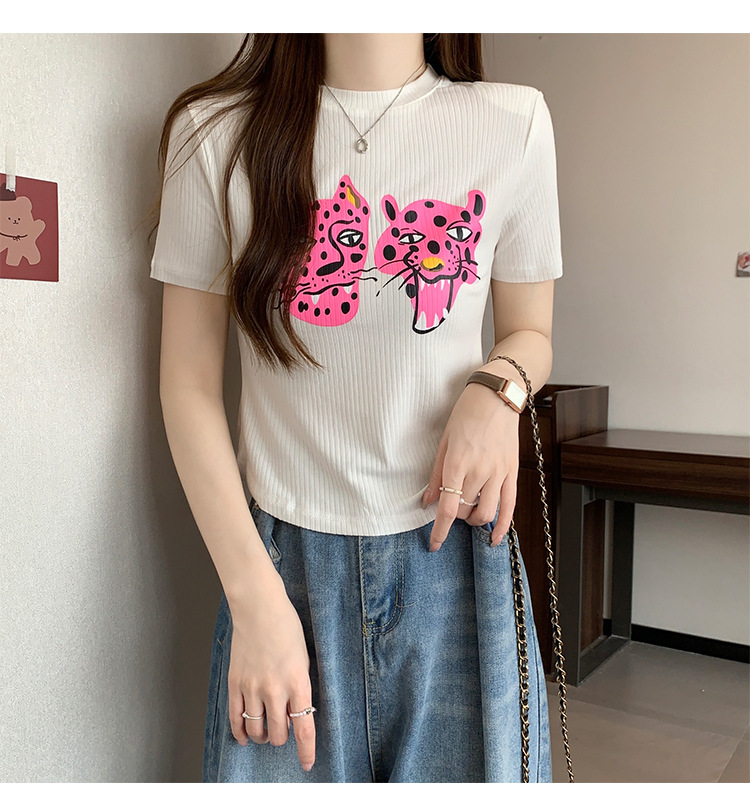 正肩t恤女短袖ins潮夏装chic港味老虎印花垫肩设计感辣妹短款上衣