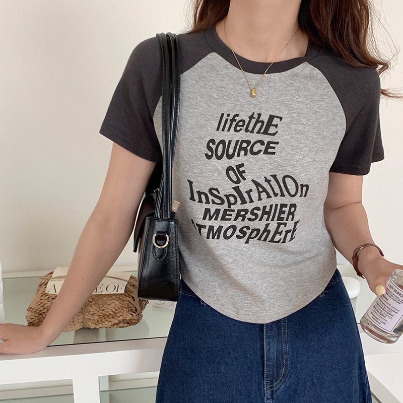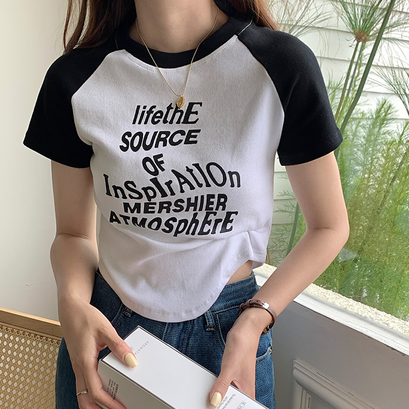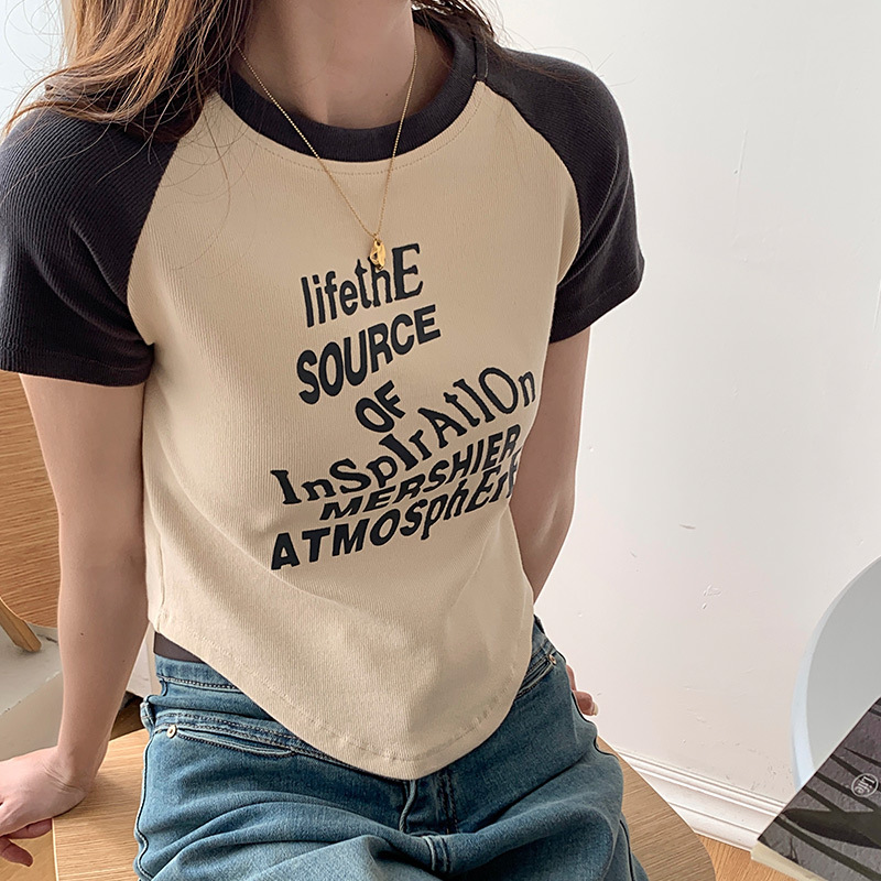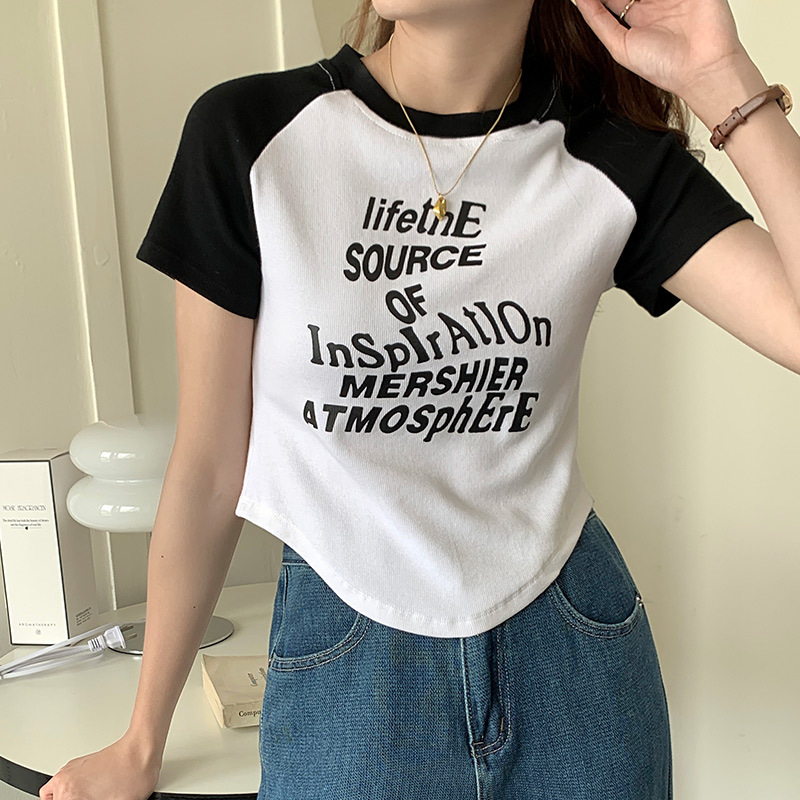 美式印花短袖t恤女夏季新款插肩设计感显瘦短款上衣女