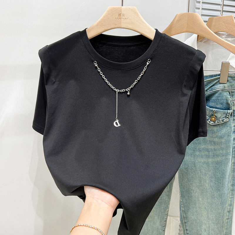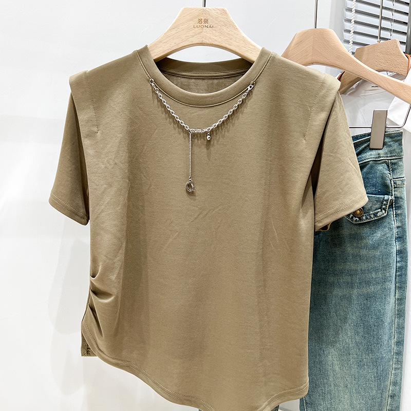 短袖t恤女夏季新款拼接不规则下摆设计感宽松显瘦上衣女
