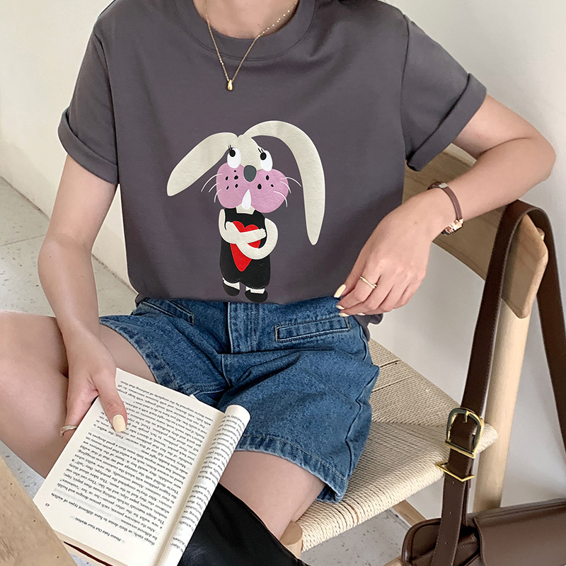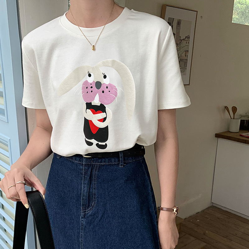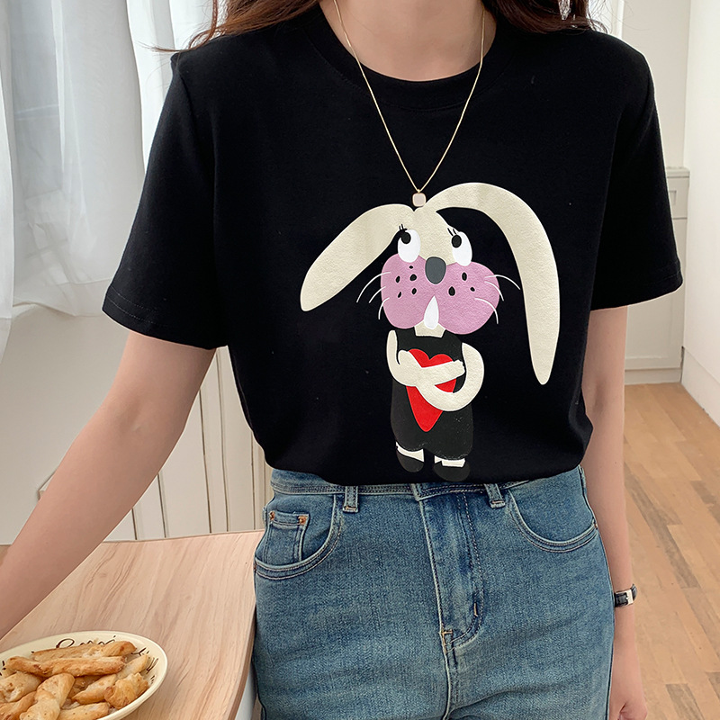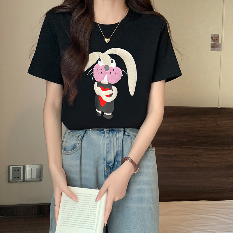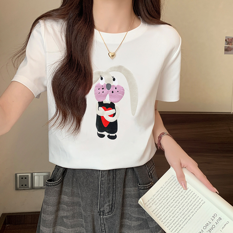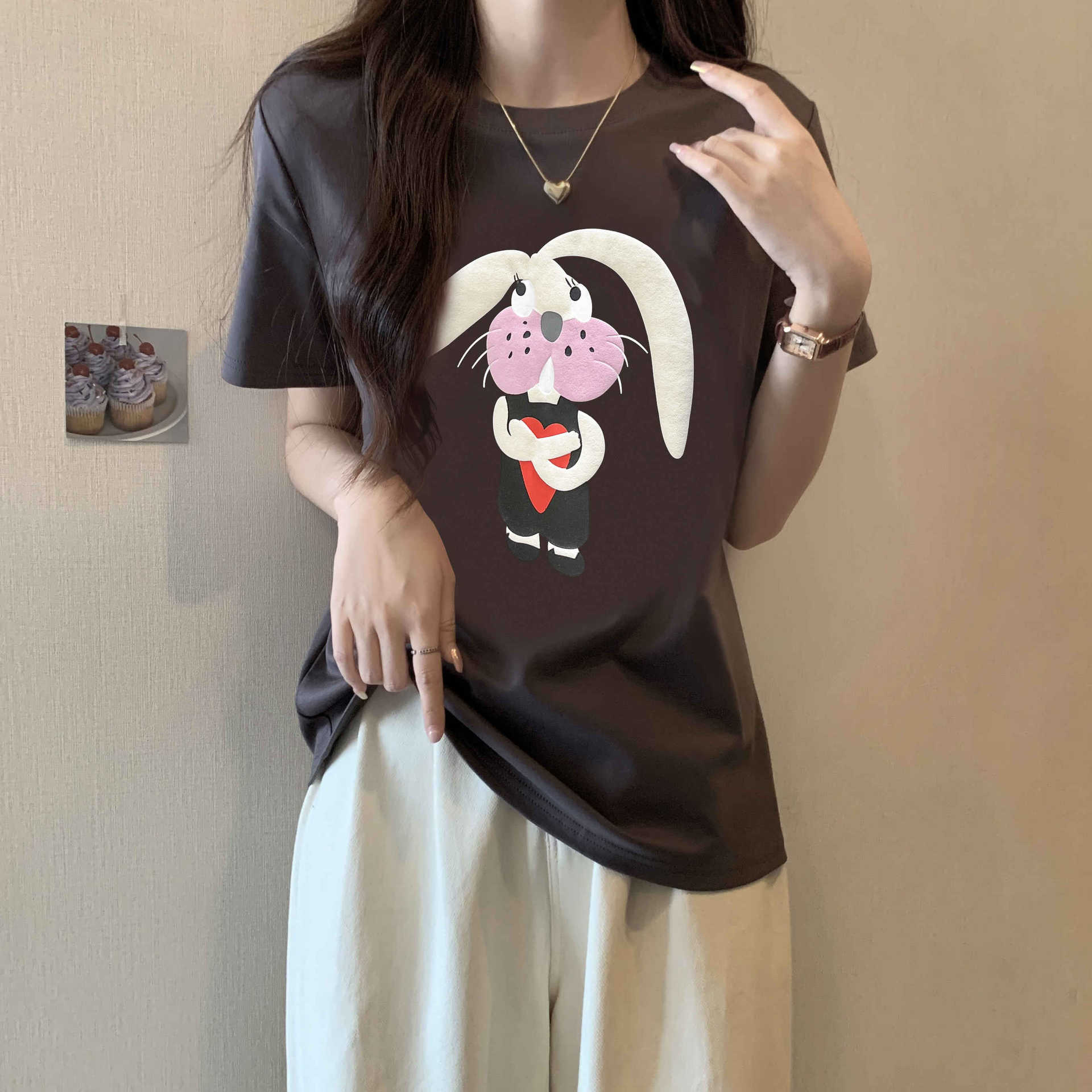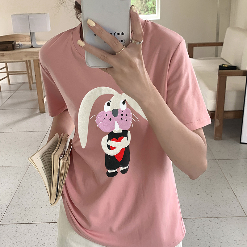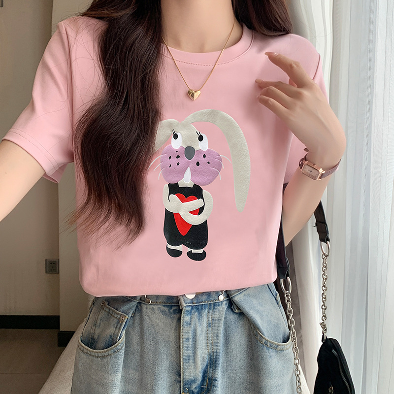 纯棉短袖t恤女夏季女装新款印花减龄漂亮洋气粉色宽松显瘦上衣女