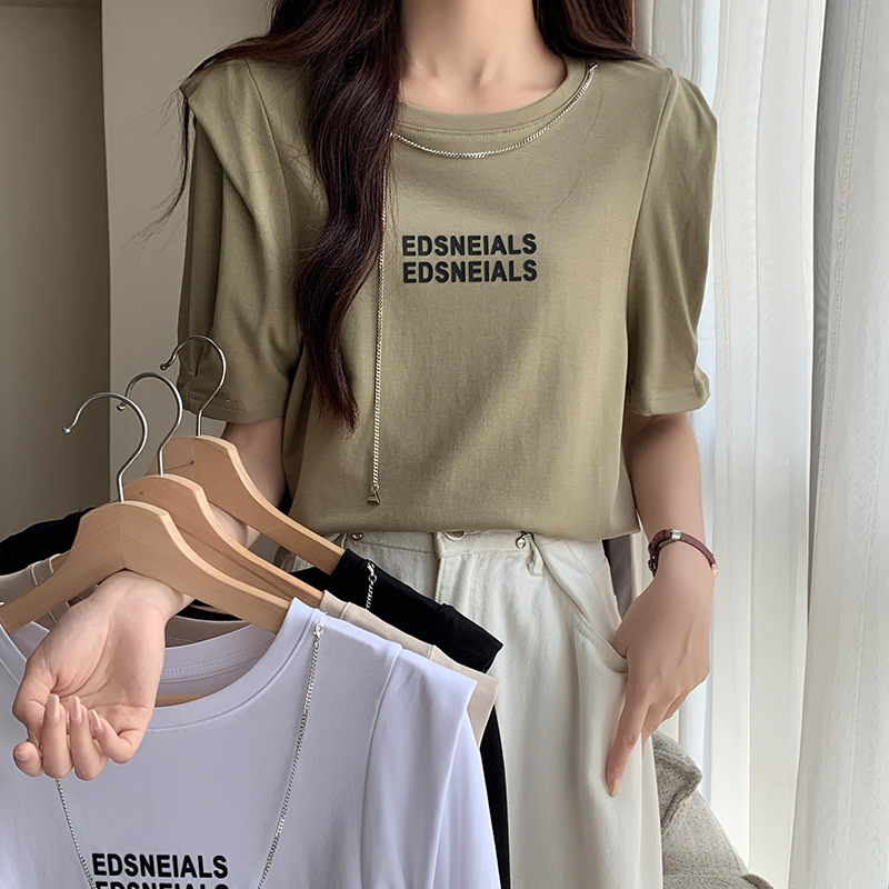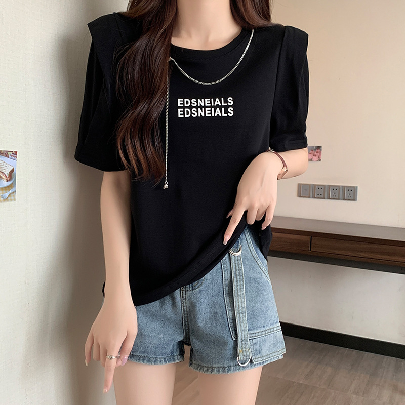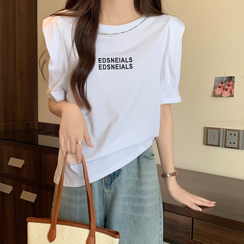 正肩宽松短袖t恤女夏季体恤设计感别致泡泡袖小众半袖上衣女