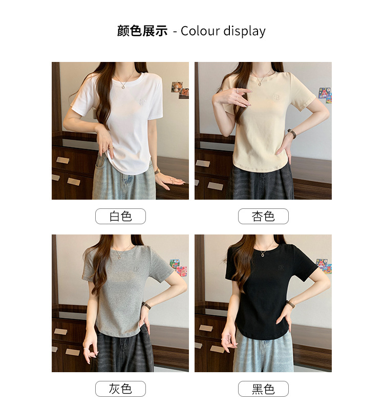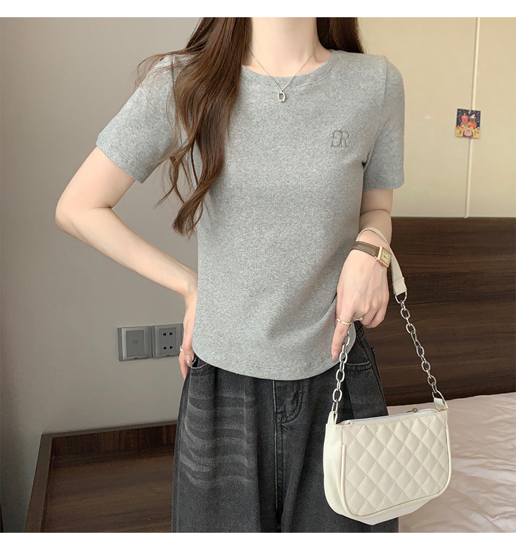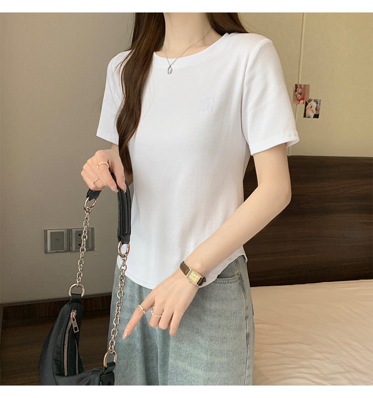 刺绣短袖t恤女正肩新款设计感夏装小众修身欧货上衣