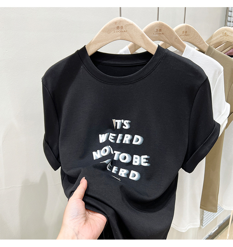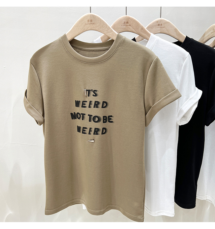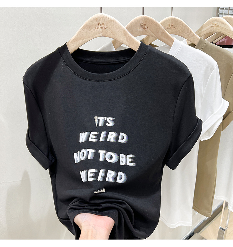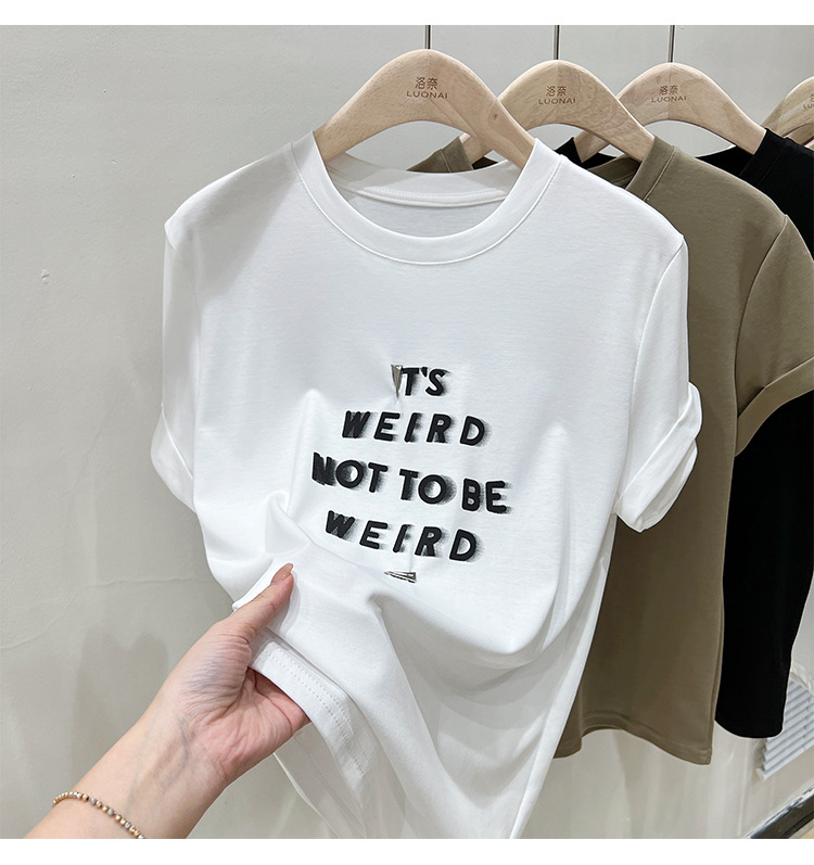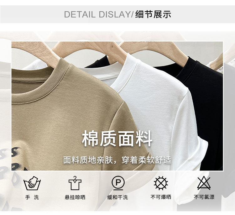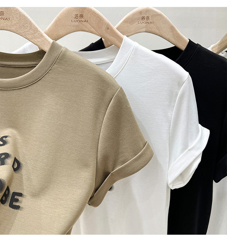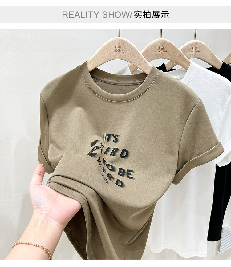 年宽松印花短袖t恤女百搭夏季圆领小众设计感女装显瘦时尚