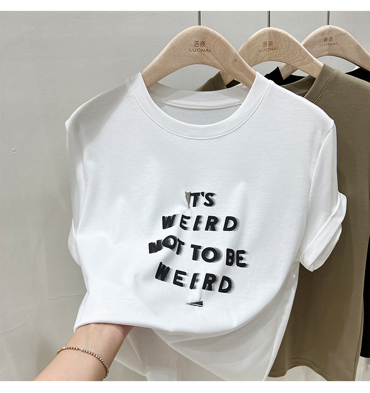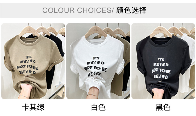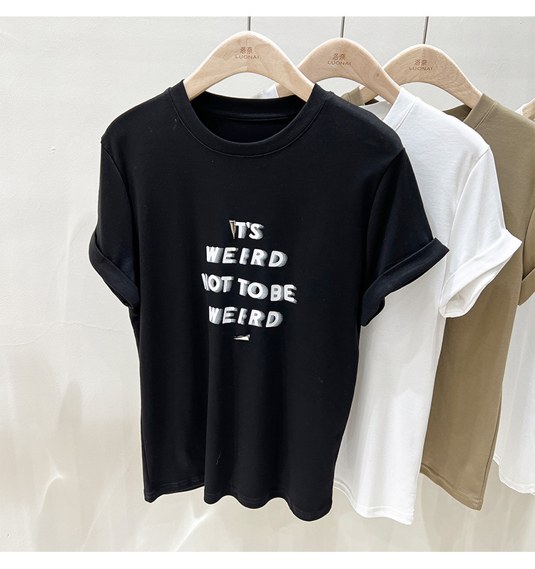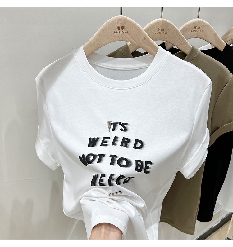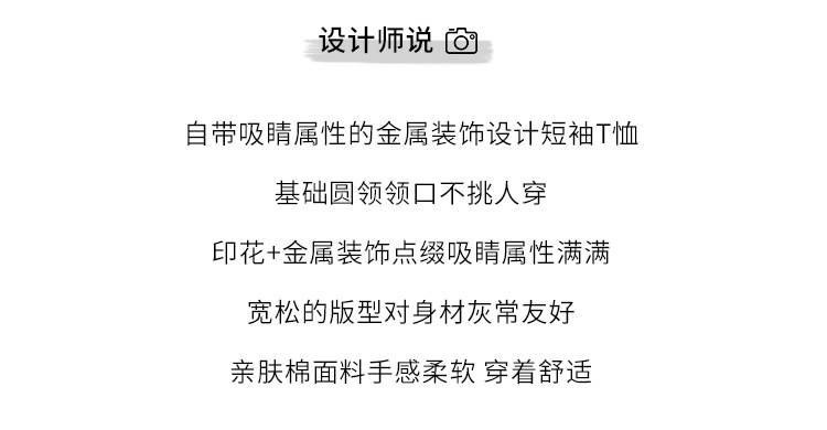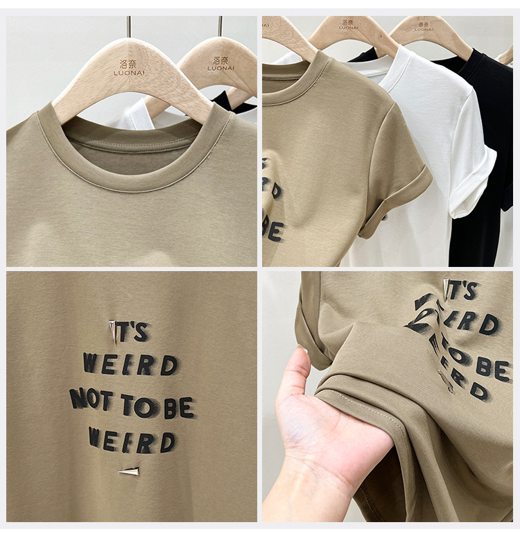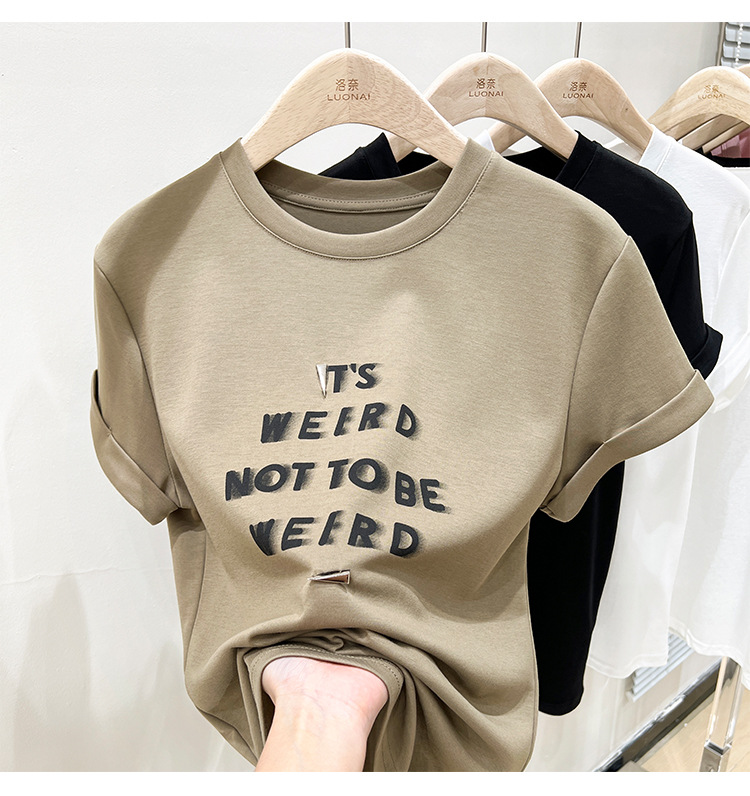 年宽松印花短袖t恤女百搭夏季圆领小众设计感女装显瘦时尚