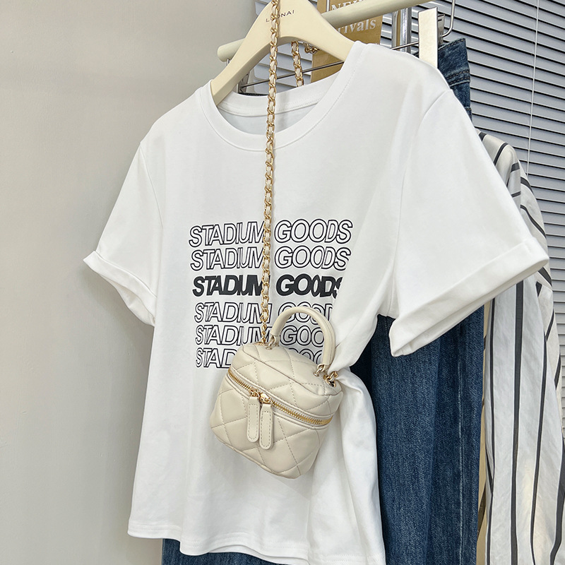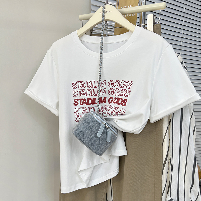 欧货短袖t恤女正肩设计感小众夏装印花别致宽松上衣