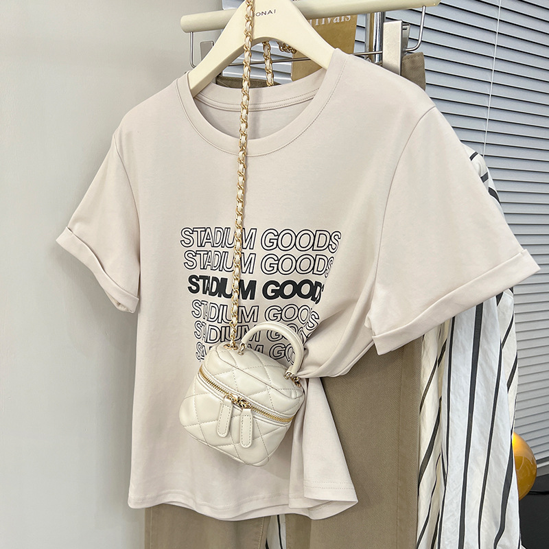 超手感莫代尔美式复古恤!夏轻薄款字母印花圆领休闲上衣短袖女潮