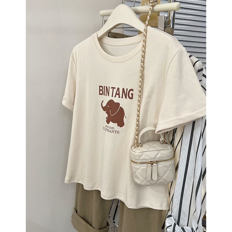 短袖t恤女夏季新款印花设计感小众减龄宽松上衣女潮
