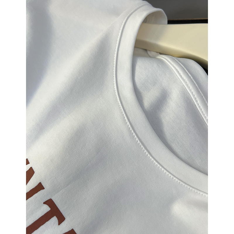 美式高街设计感线条印花短袖t恤女夏季新款宽松百搭重磅纯棉上衣