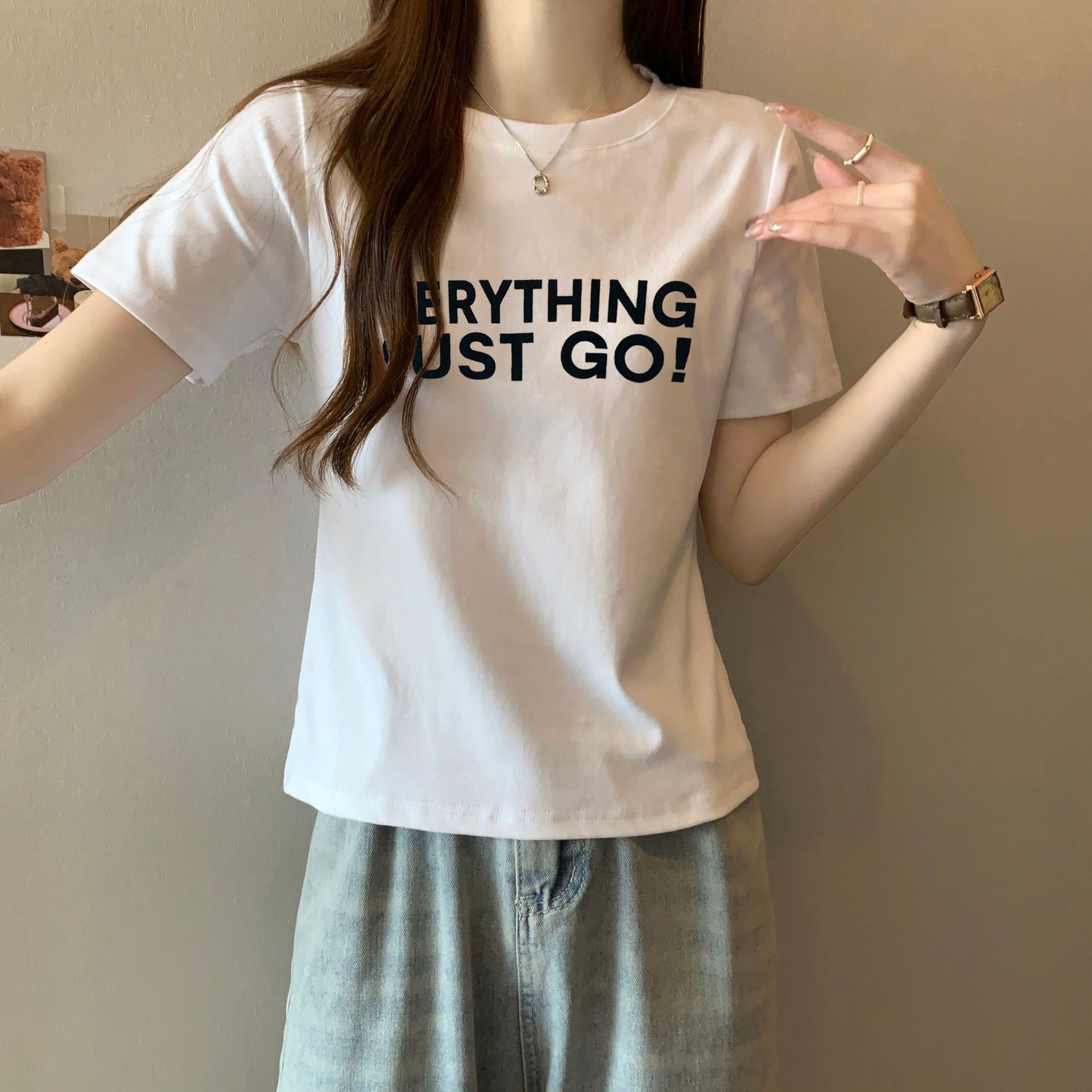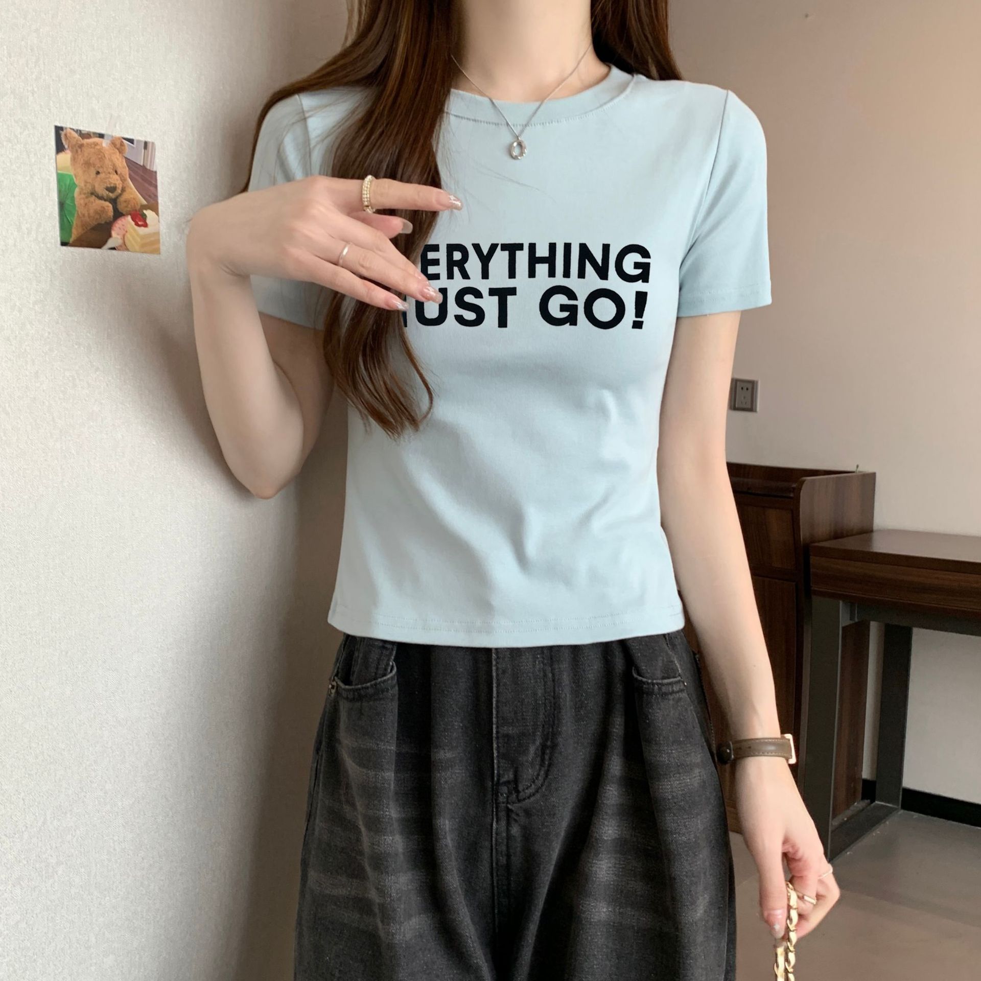 高腰短款紧身辣妹上衣印花t恤短袖女夏季半袖体恤潮