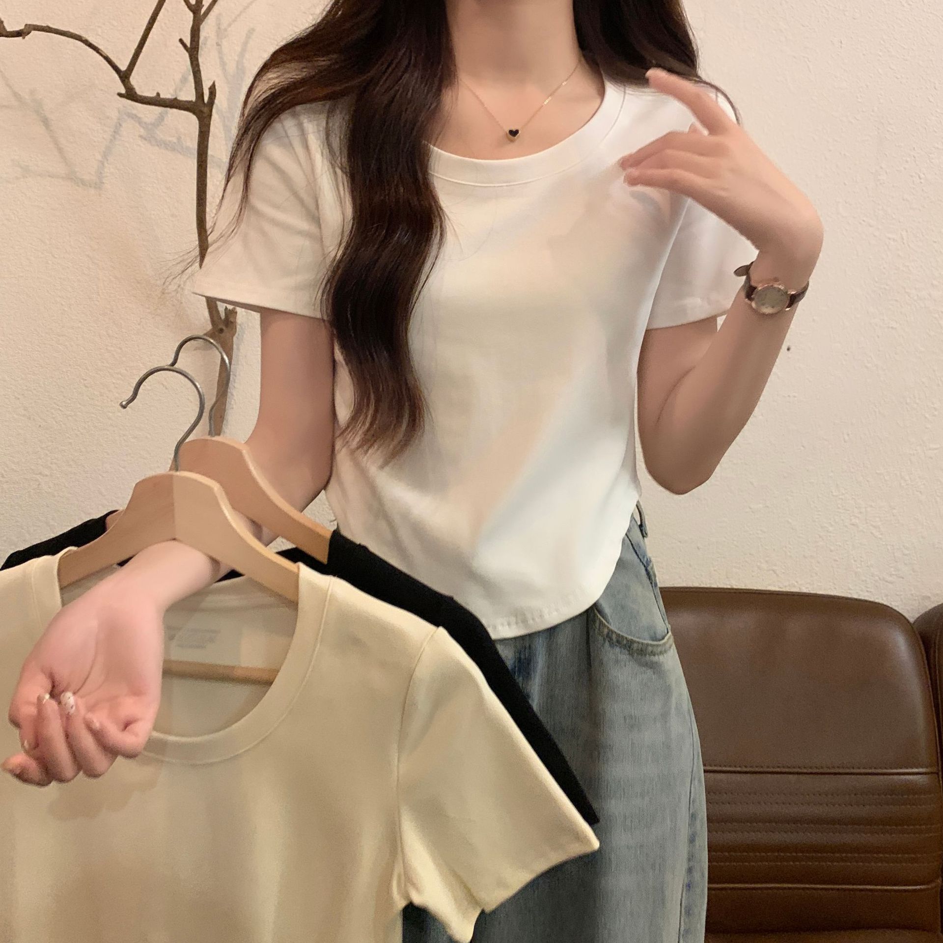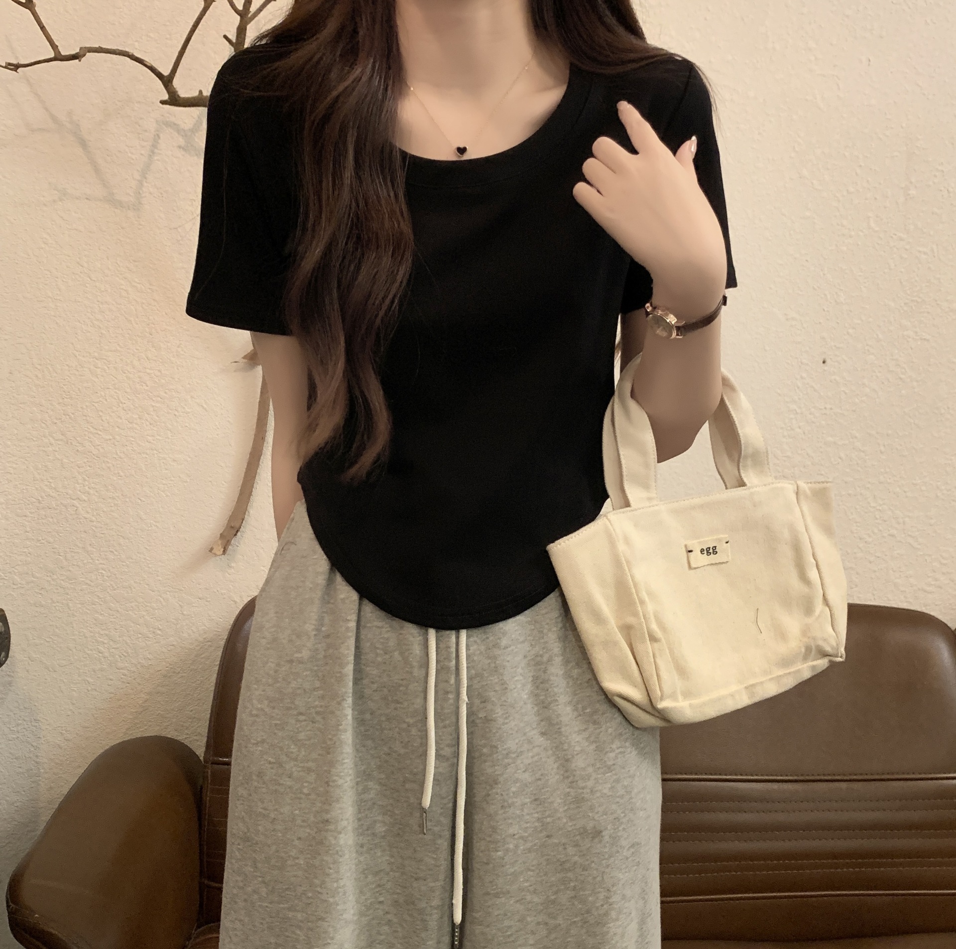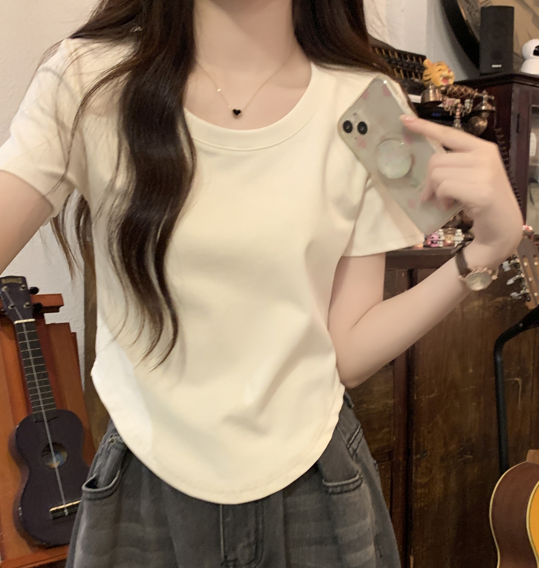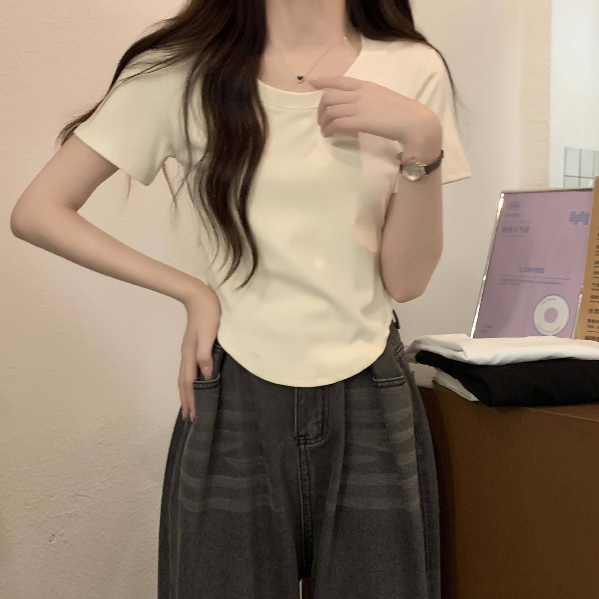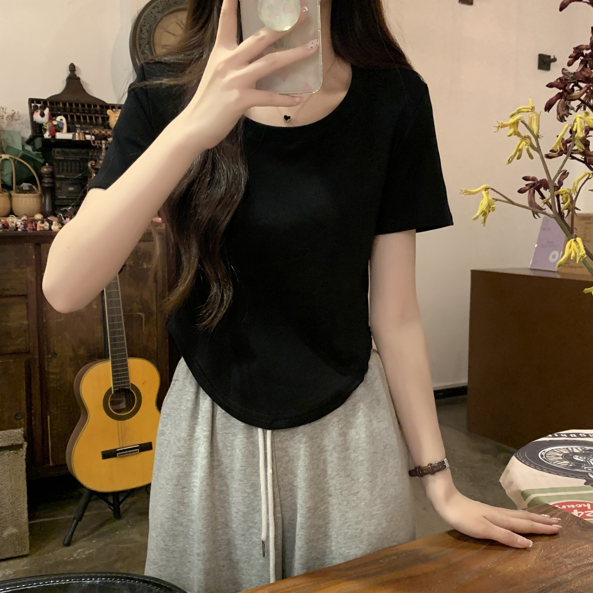 正肩u领短袖t恤女夏季设计感小众小个子修身短款上衣ins