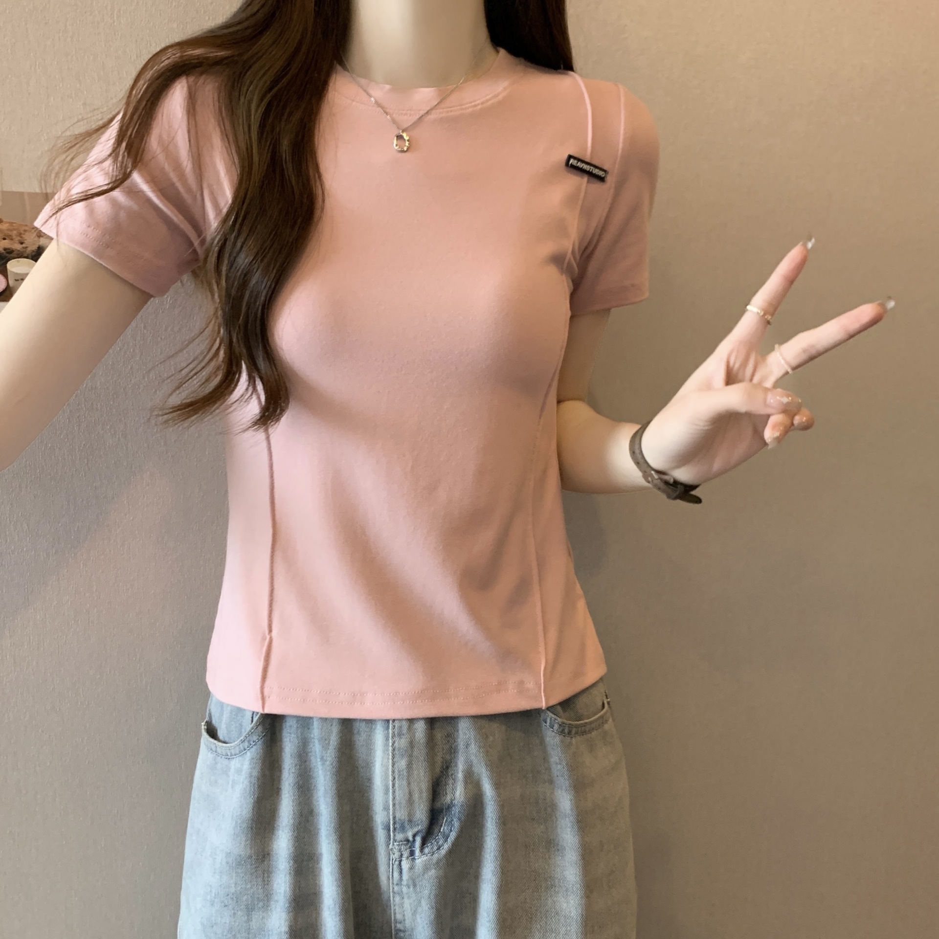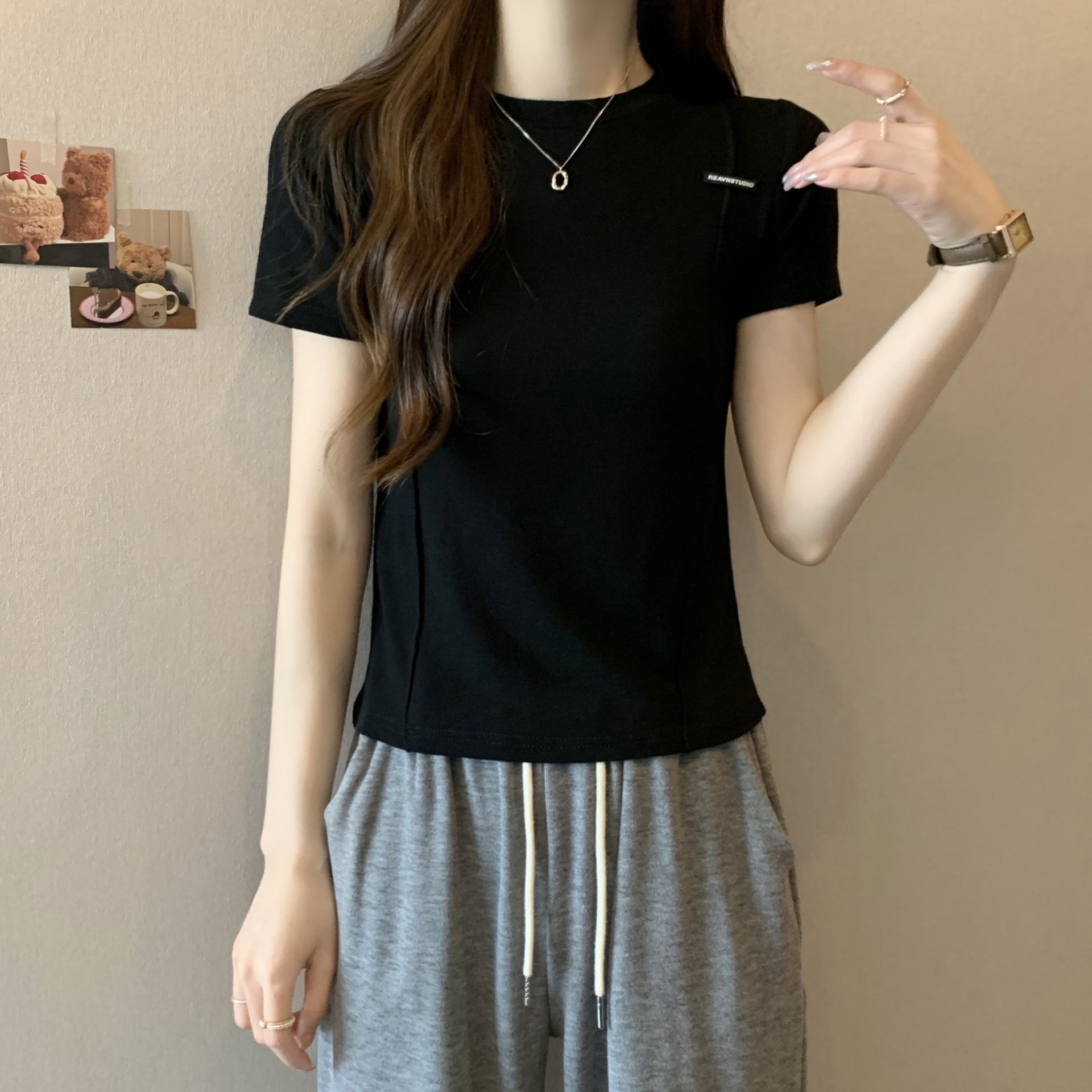 鱼骨短款短袖t恤女夏季半袖体恤甜辣妹紧身露脐上衣