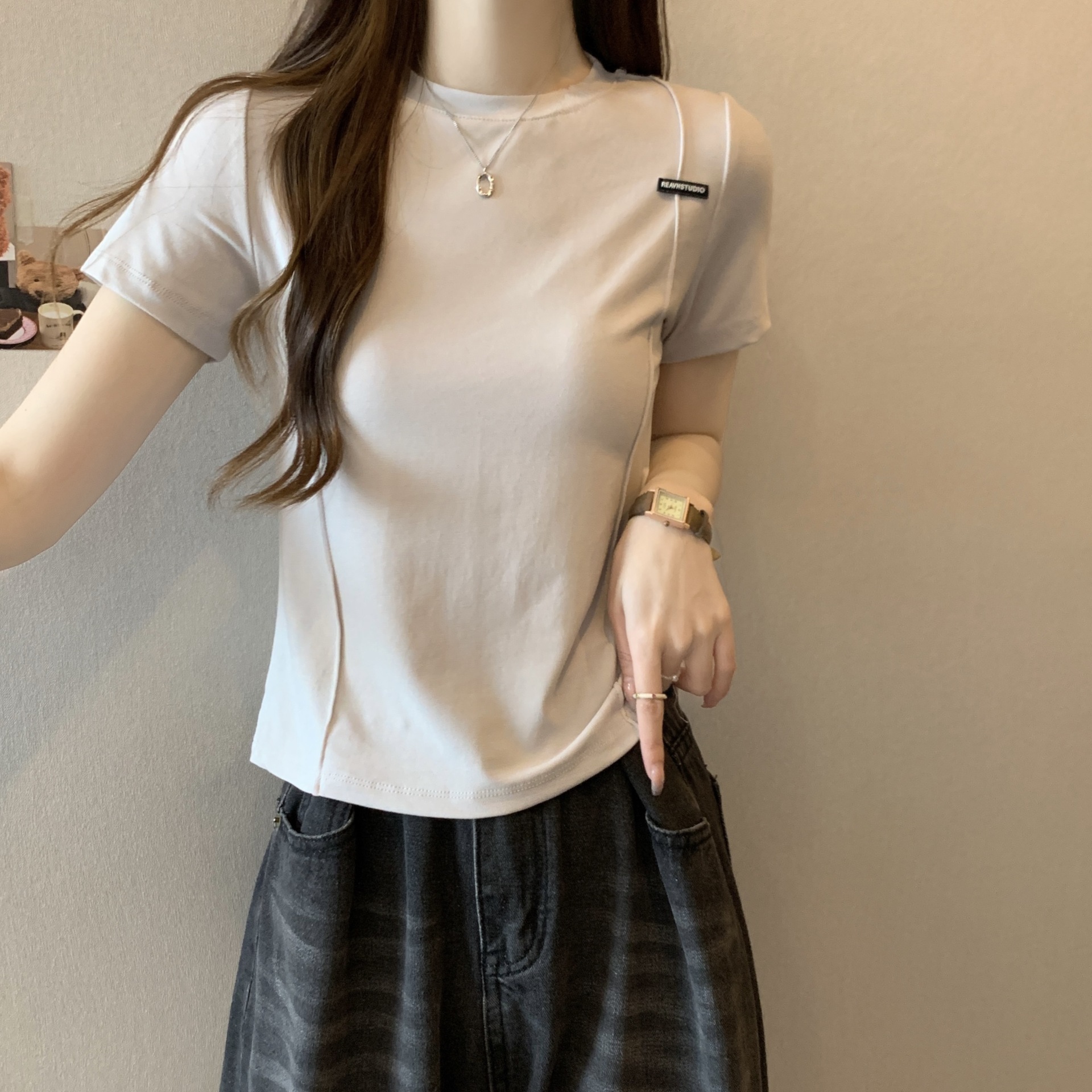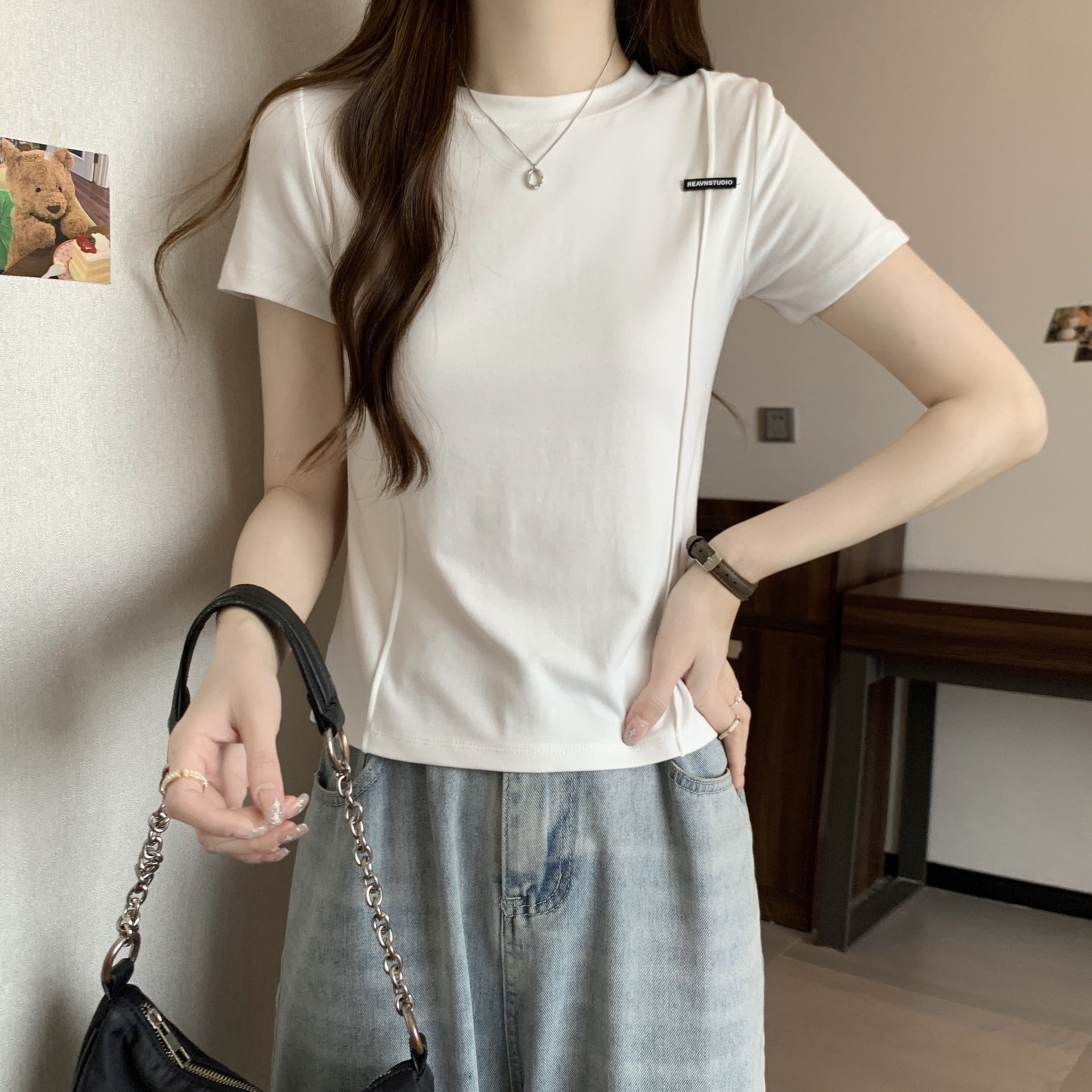 白色低领短袖t恤女设计感小众夏季新款独特别致假两件上衣女