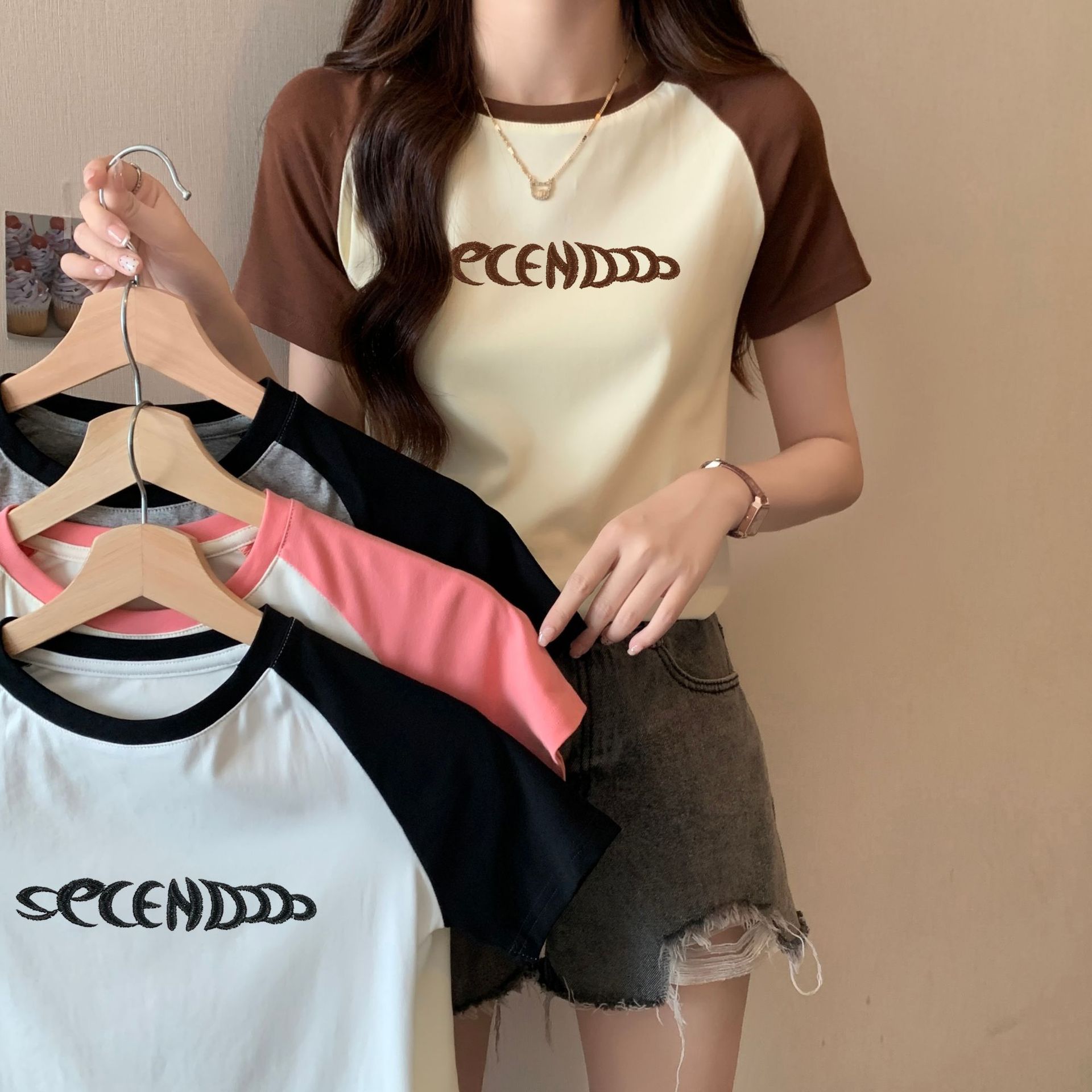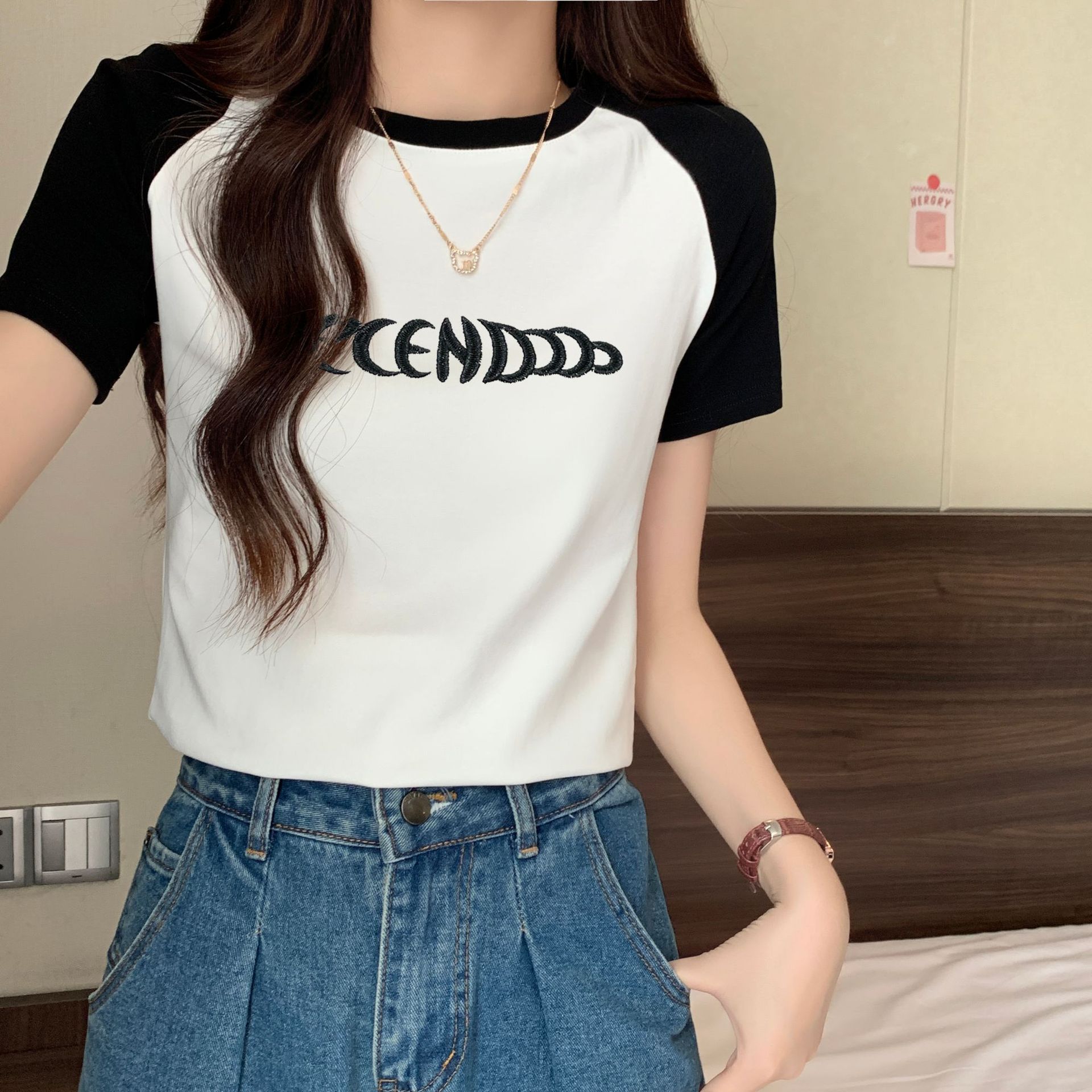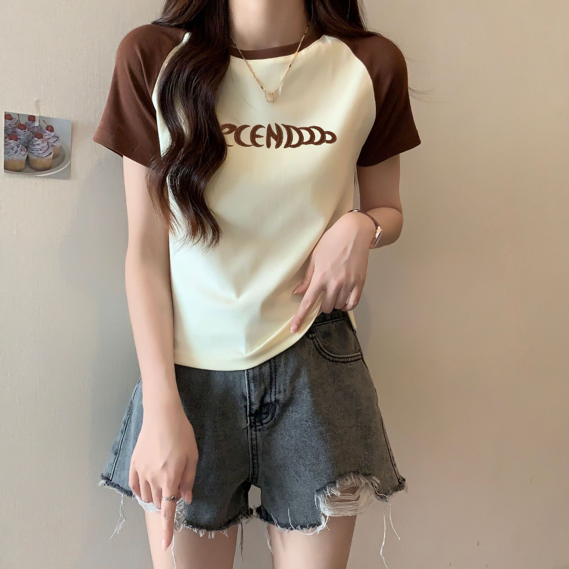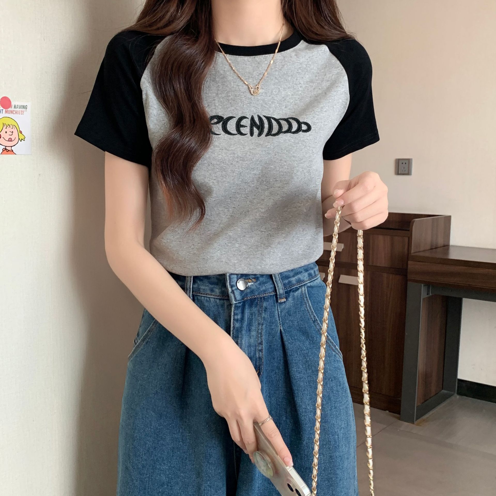 插肩袖t恤女短袖夏季设计感小众小个子修身短款上衣