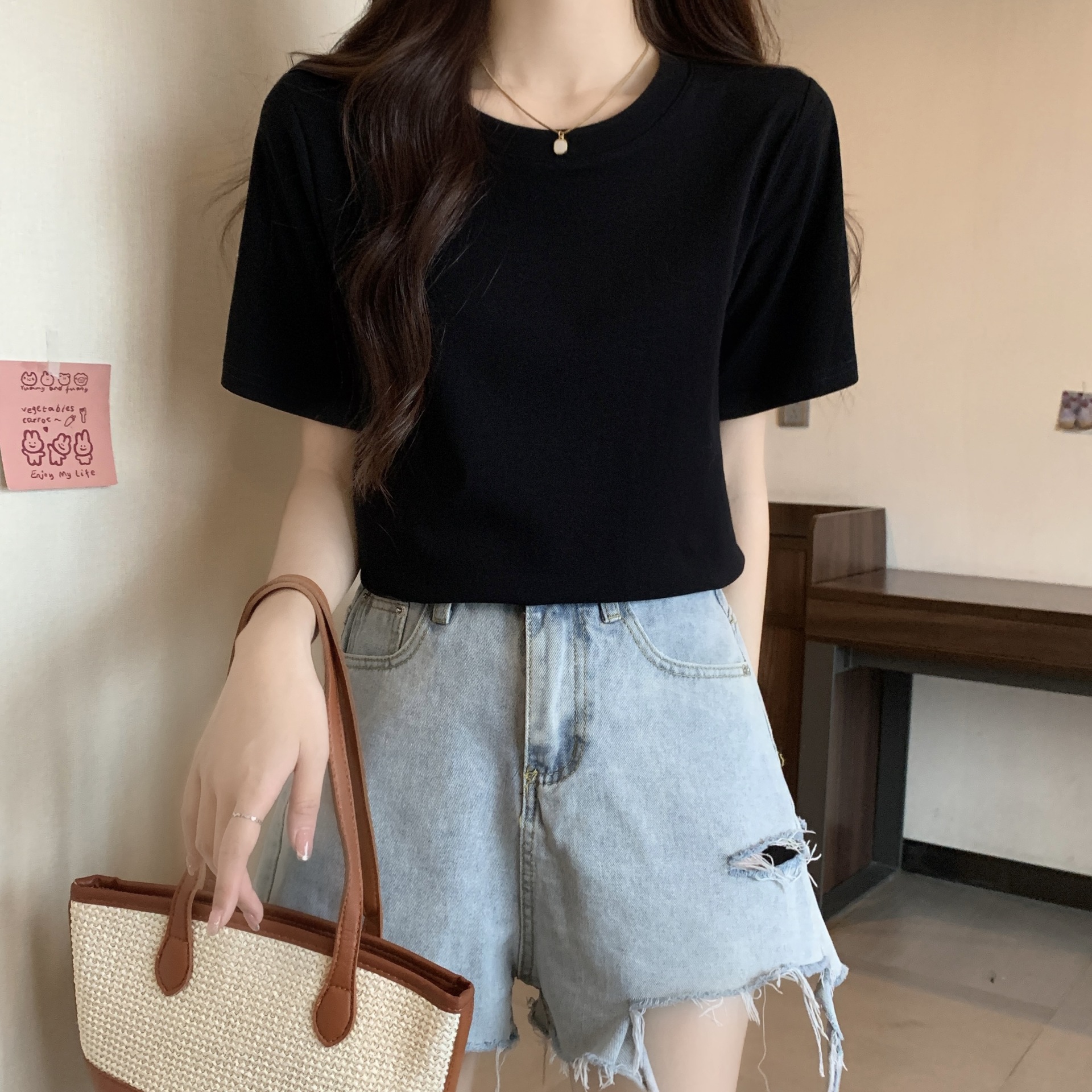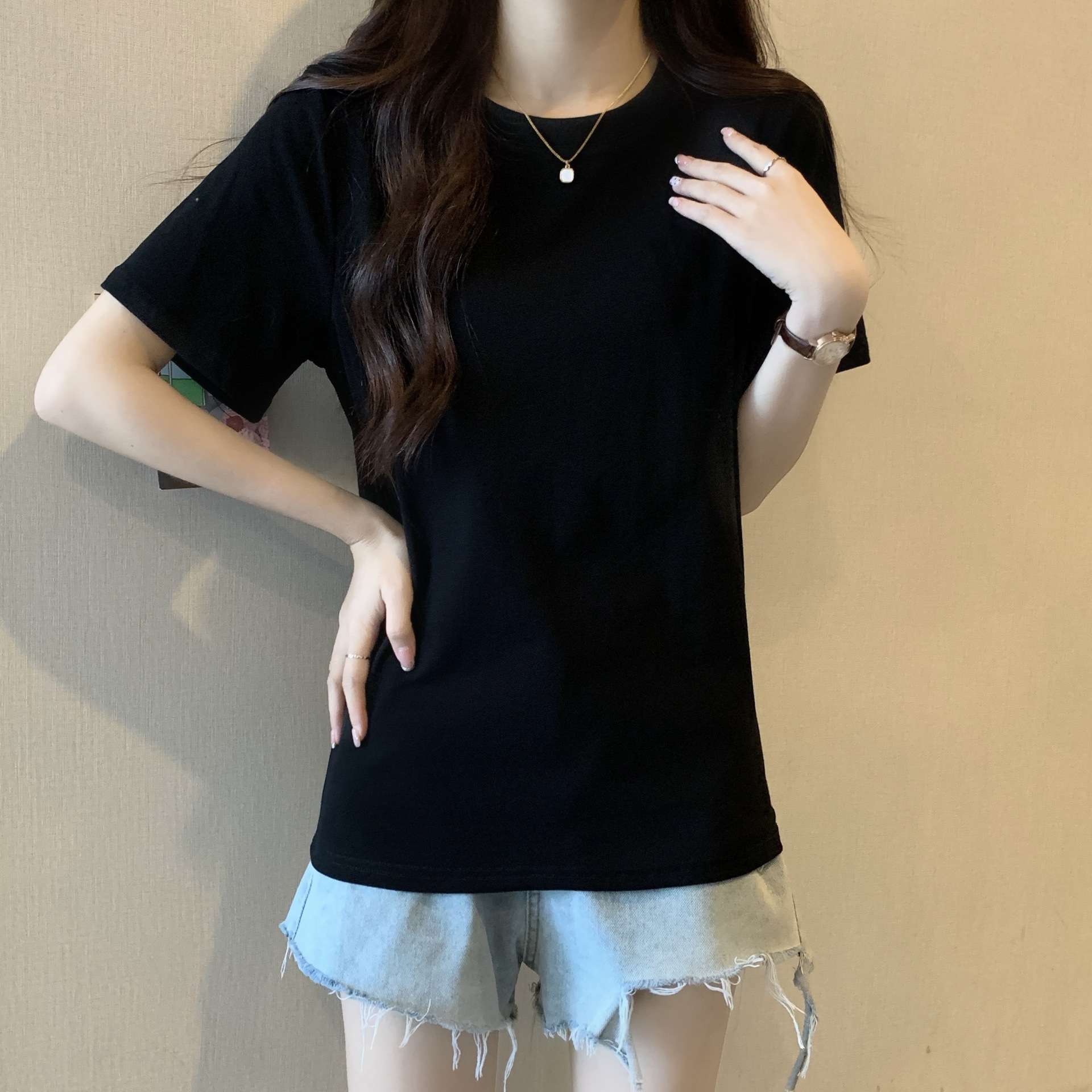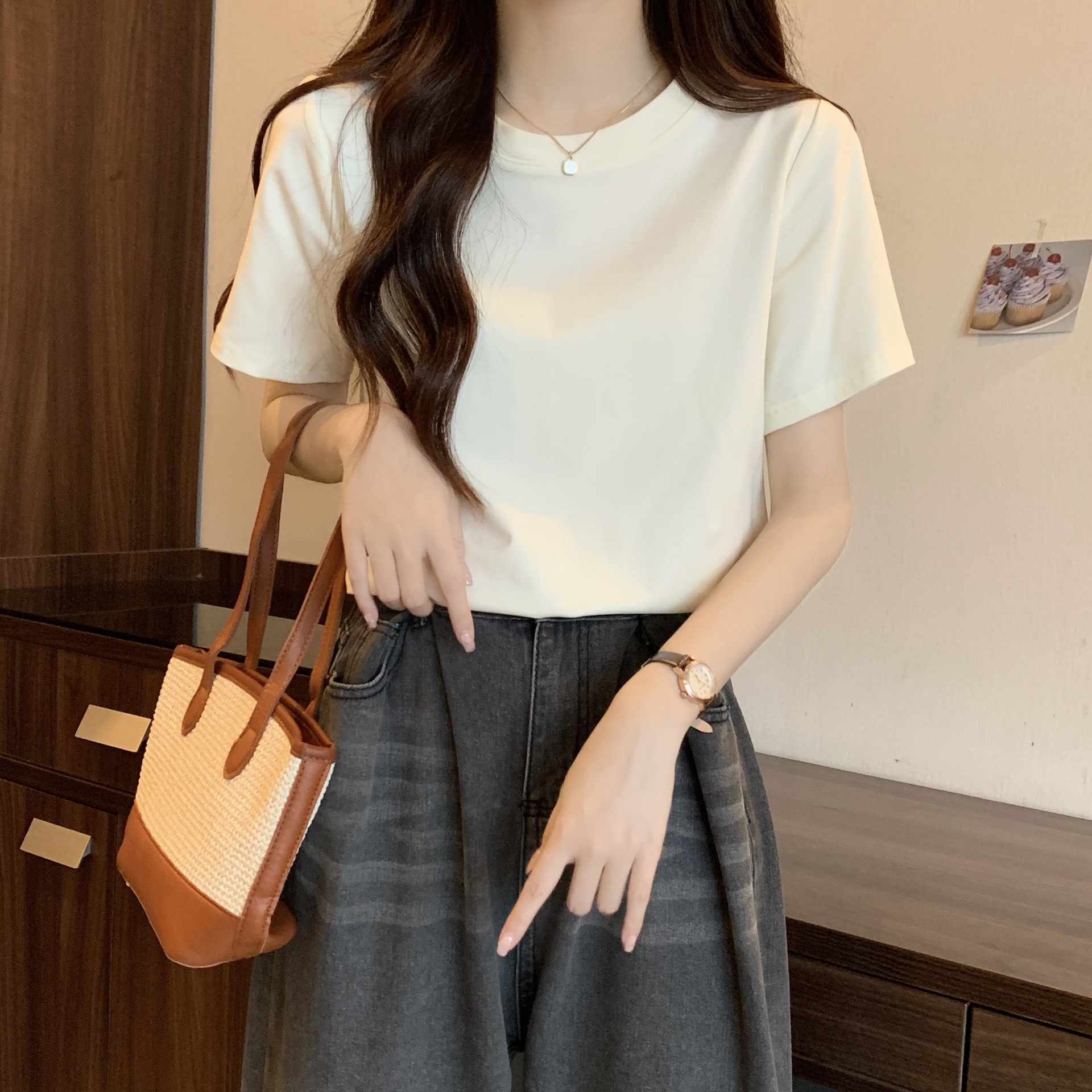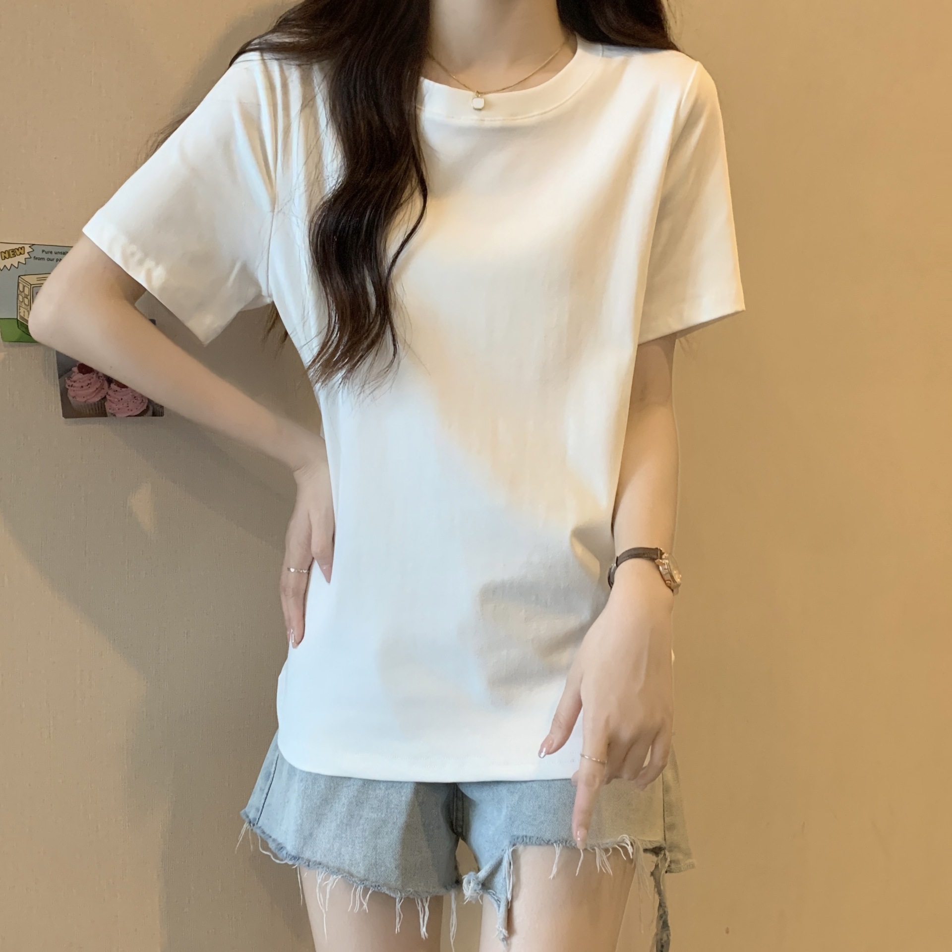 白色圆领短袖t恤女夏季新款正肩小众体恤休闲显瘦遮肚子上衣