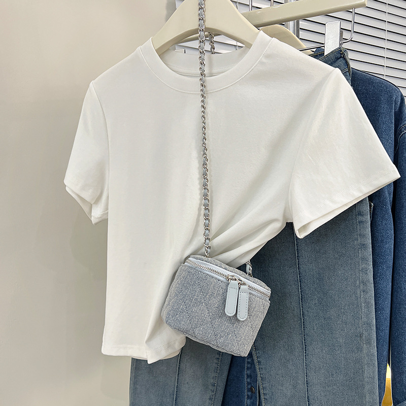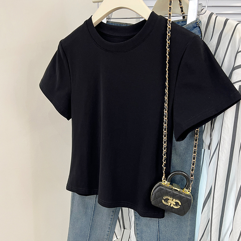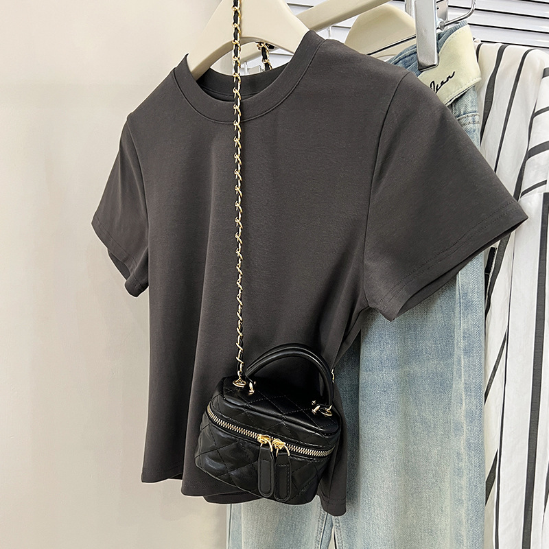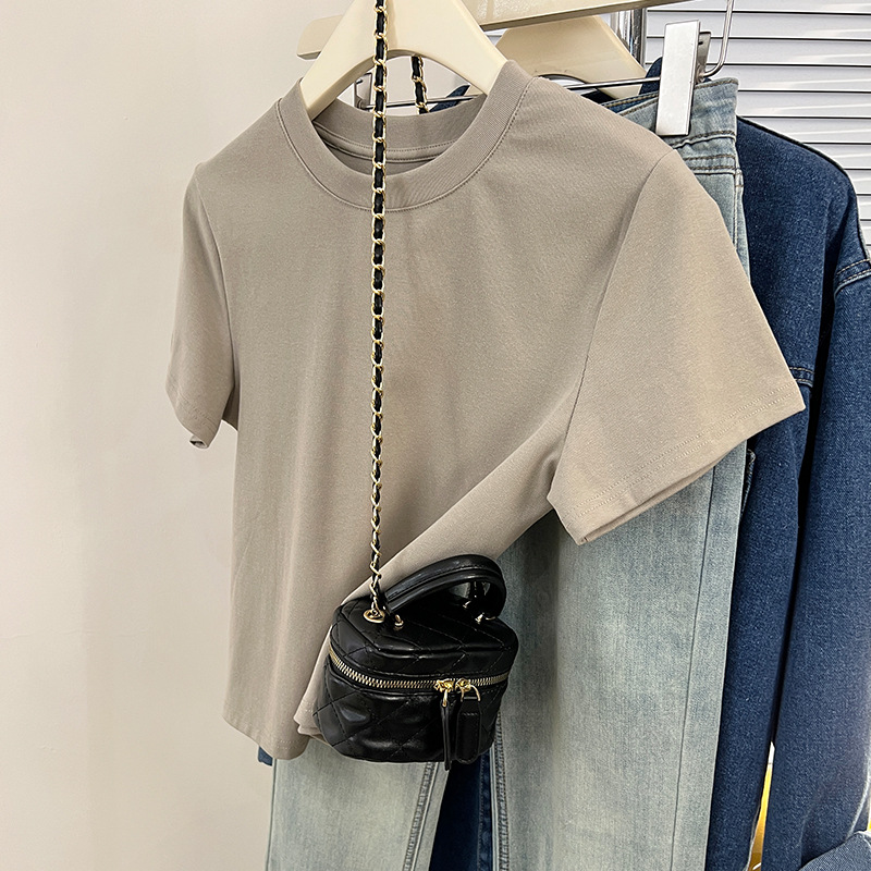 简约气质短袖t恤女夏季新款纯色圆领高级感穿搭上衣