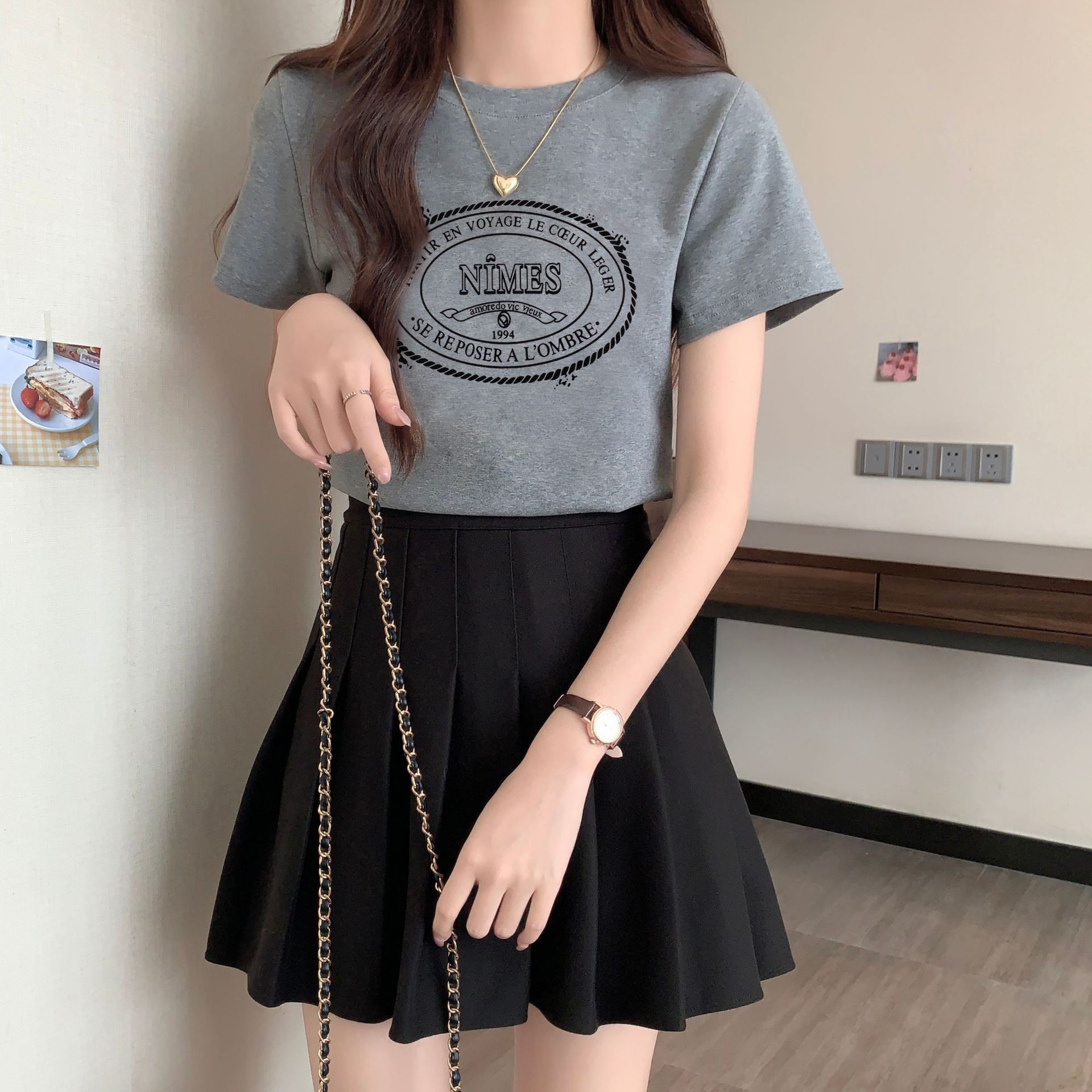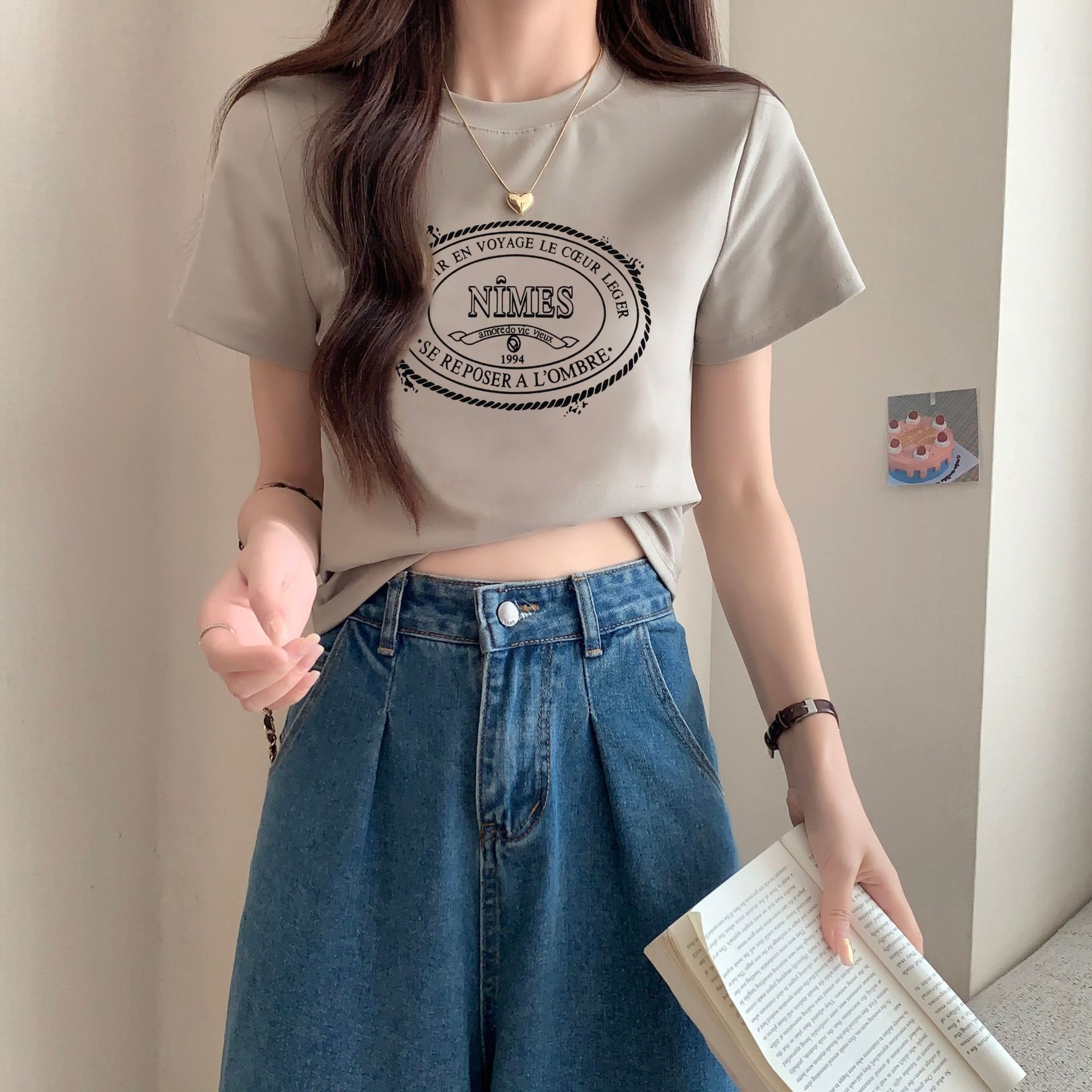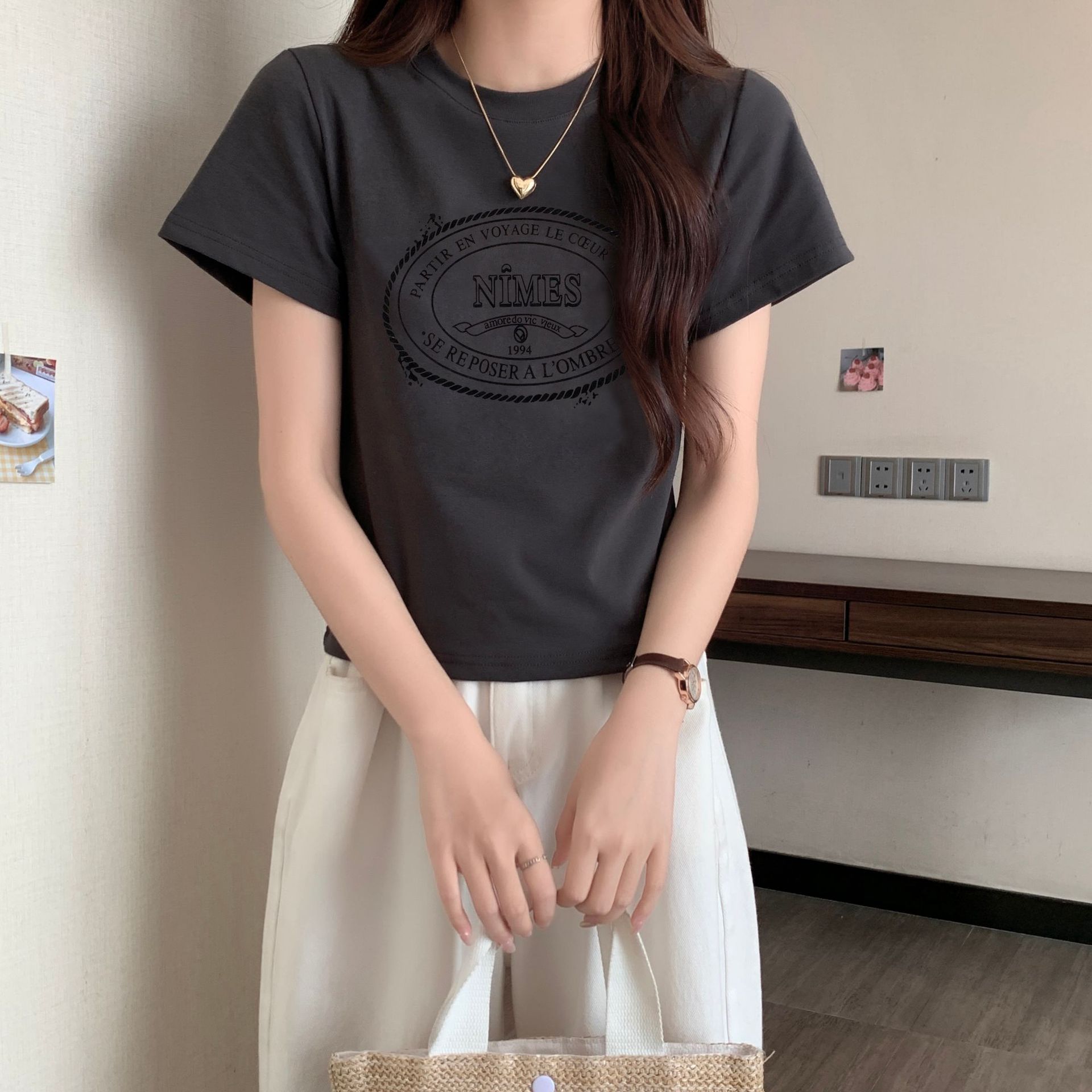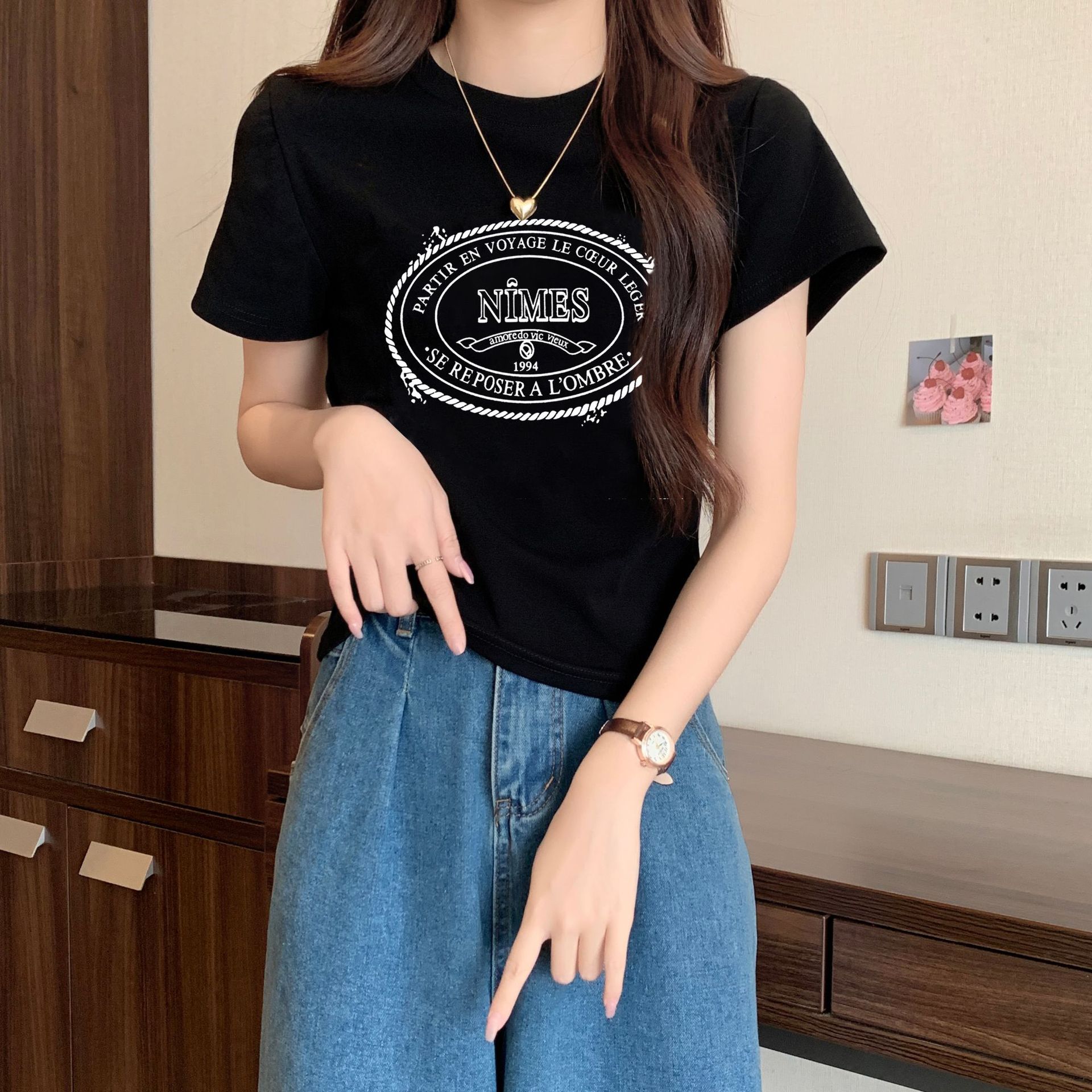 印花正肩短袖t恤女夏季夏设计感体恤小个子短款上衣
