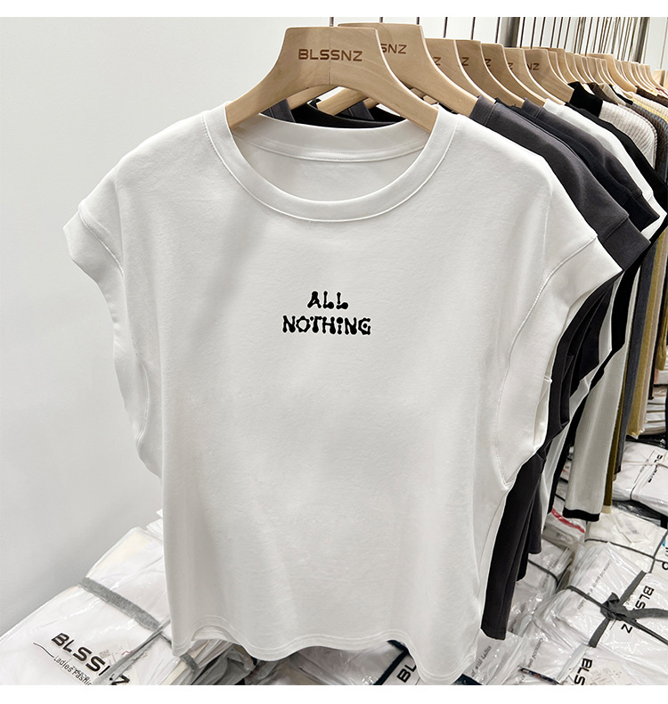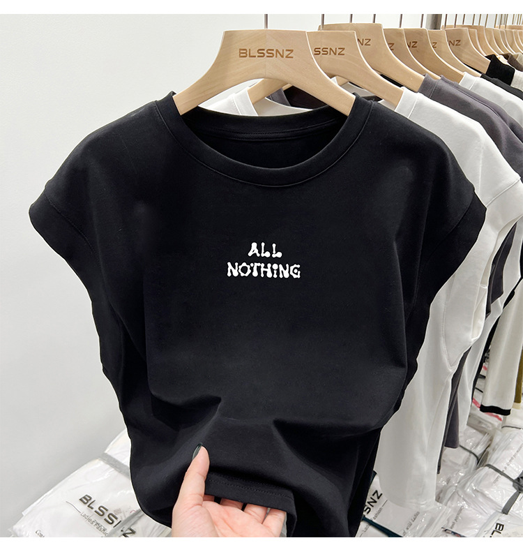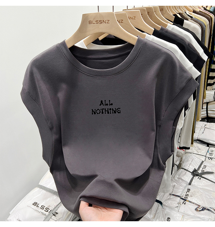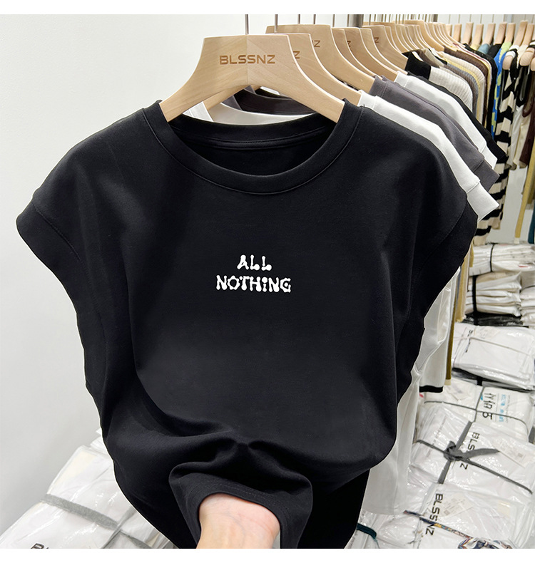 宽松显瘦无袖上衣女体恤夏季新款落肩袖印花t恤女
