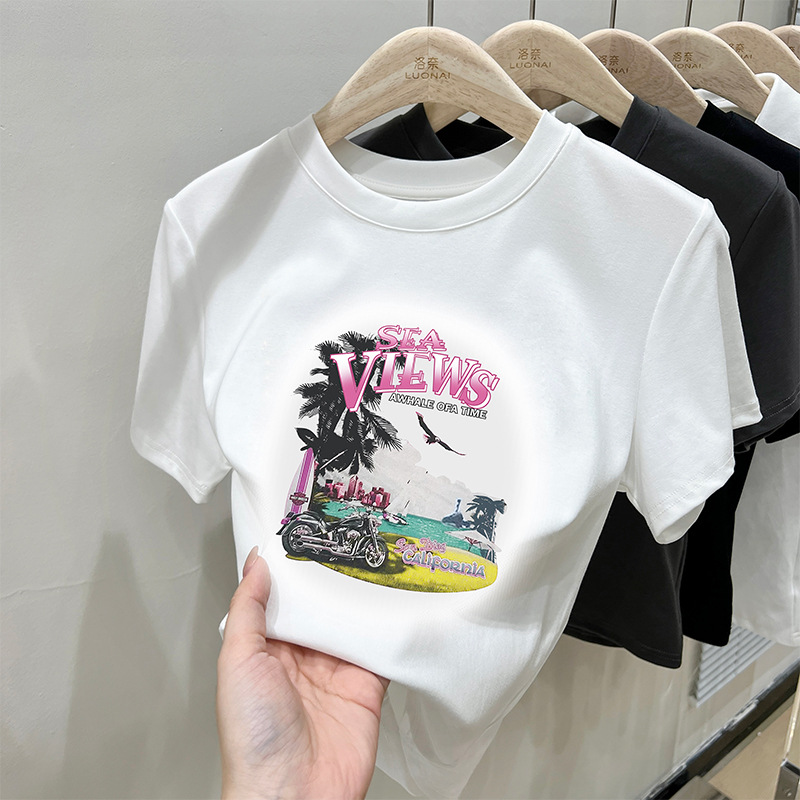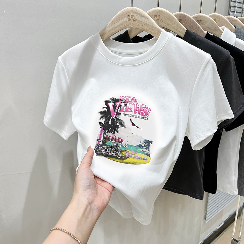 新款夏季休闲纯棉T白色圆领短袖t恤女百搭修身上衣女ins潮