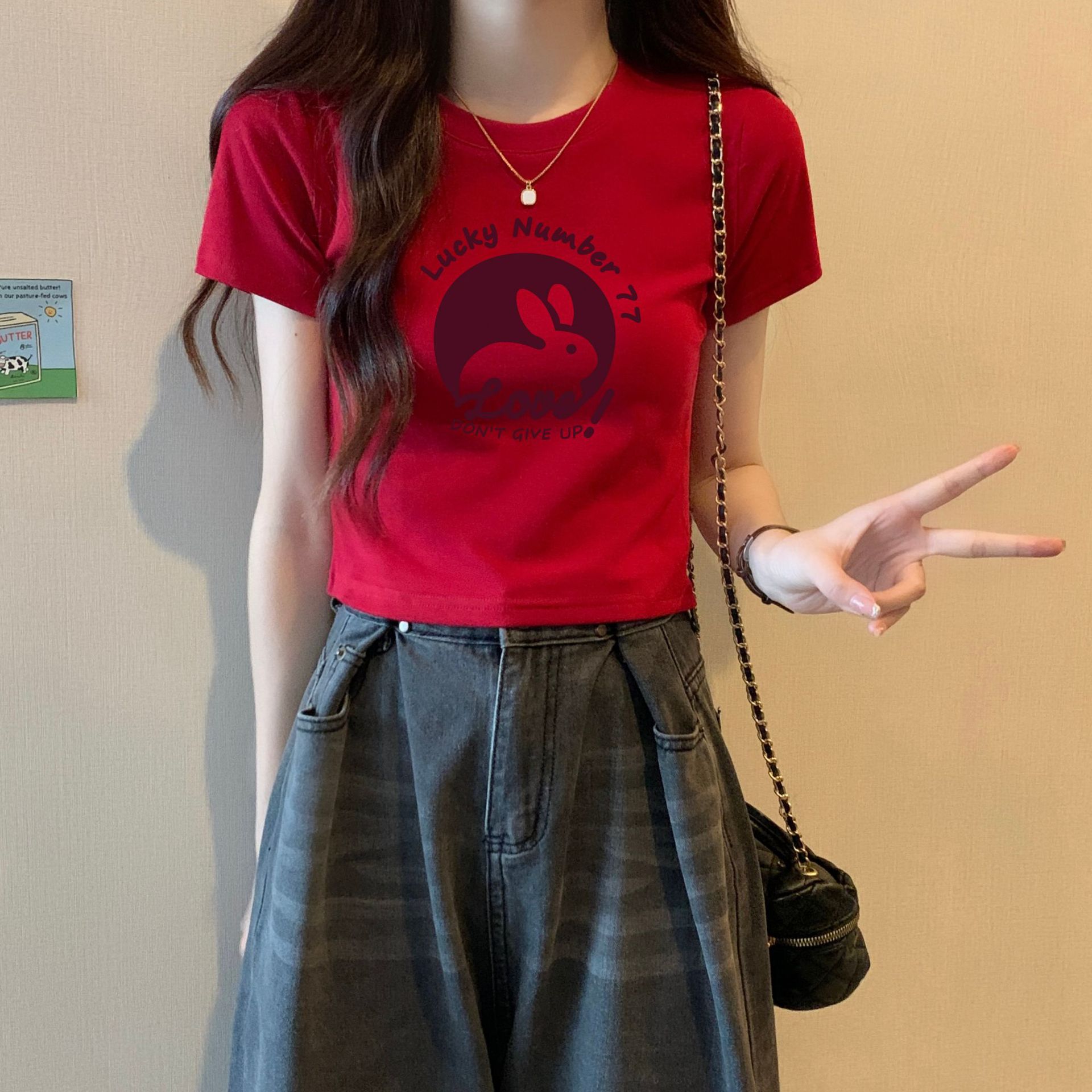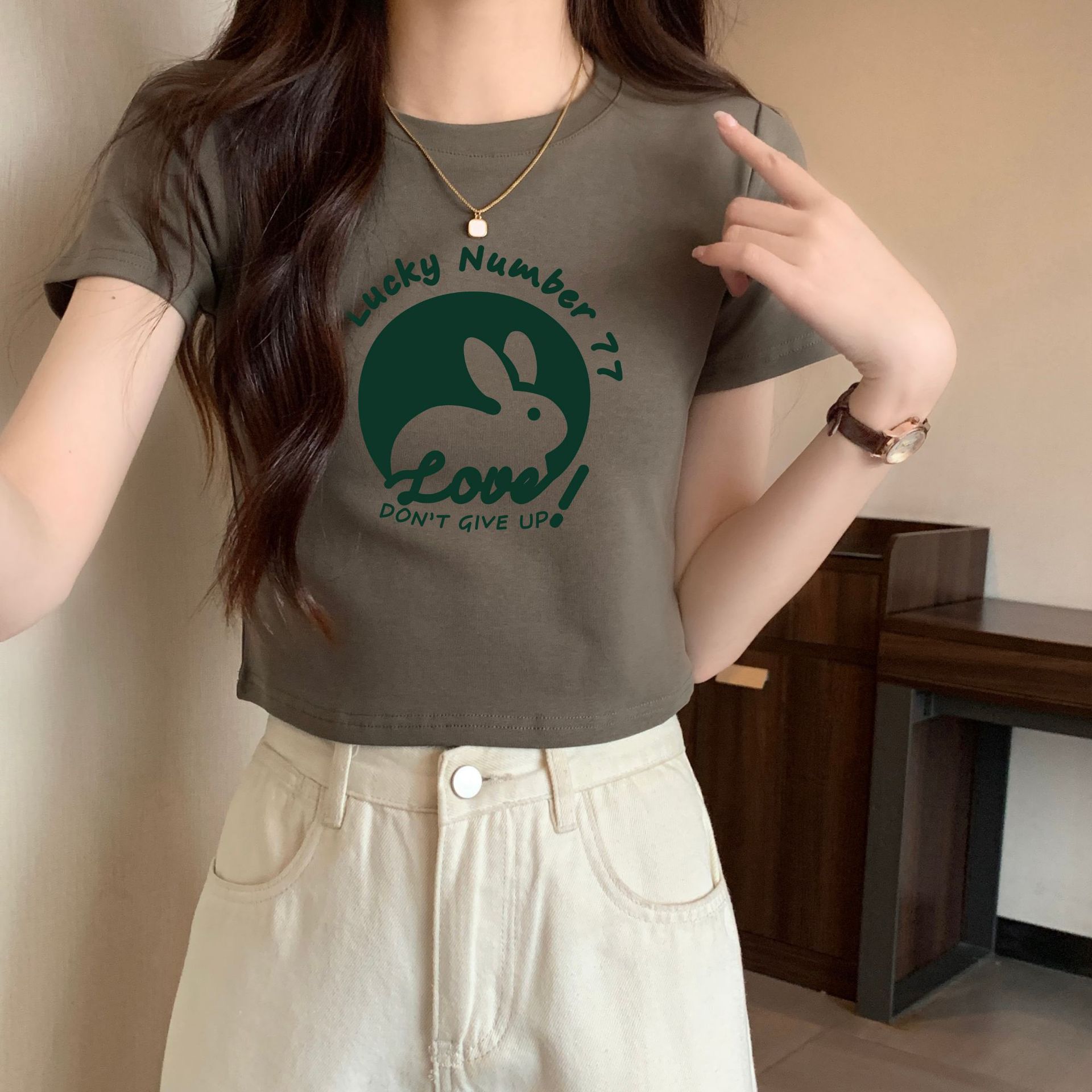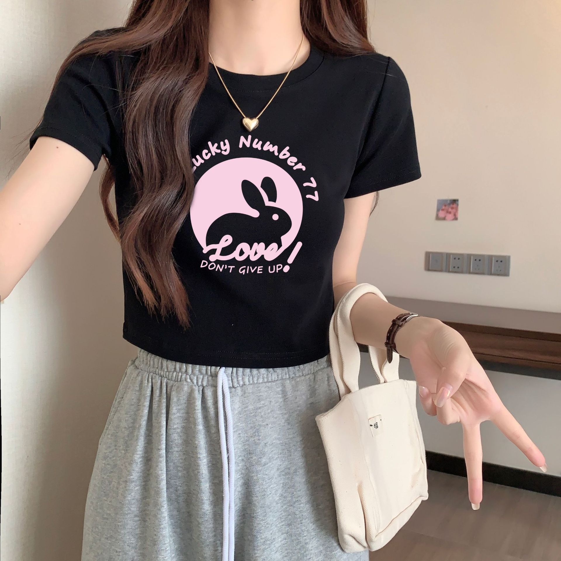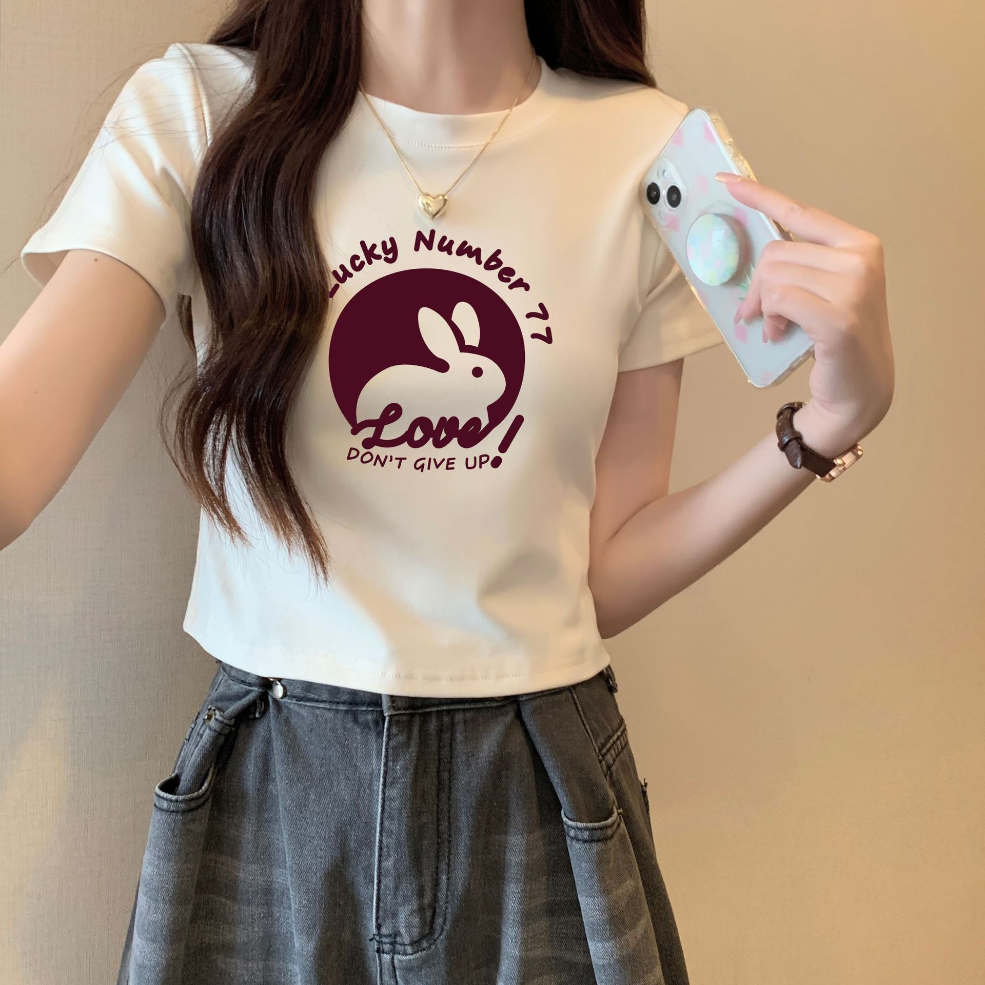 圆领短袖t恤女夏季设计感小众小个子体恤修身短款上衣夏