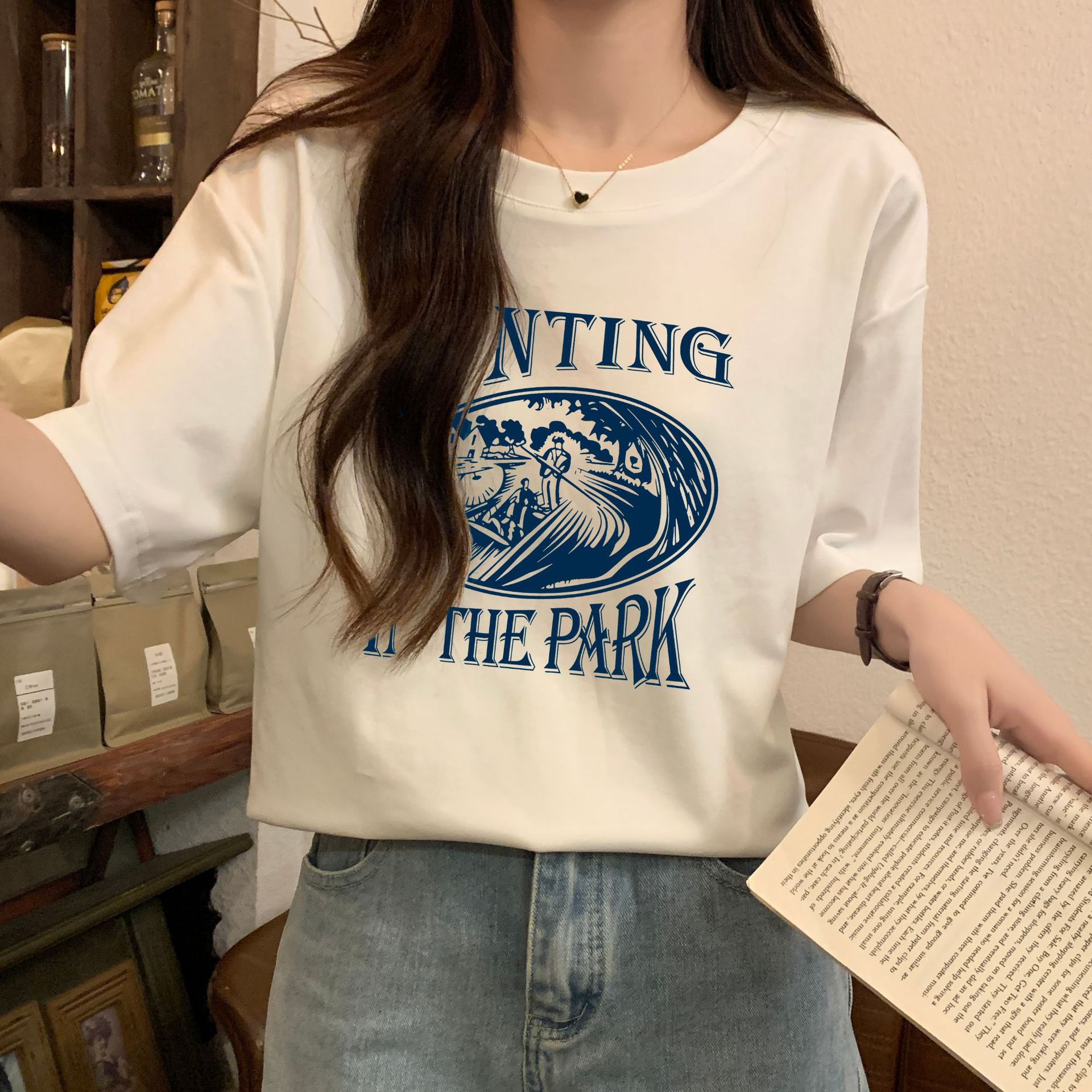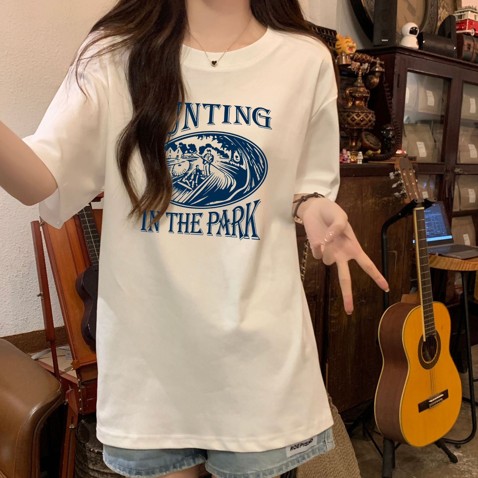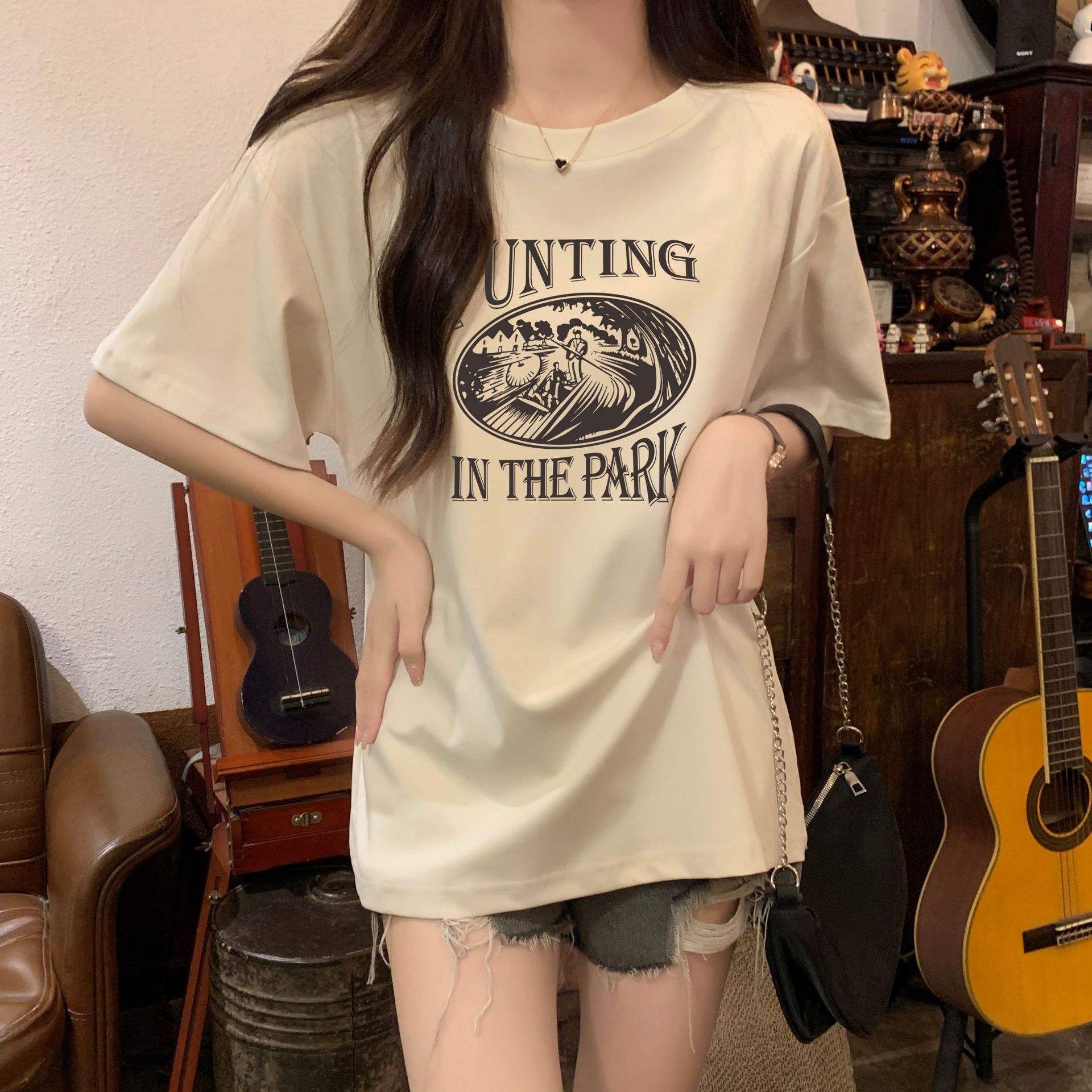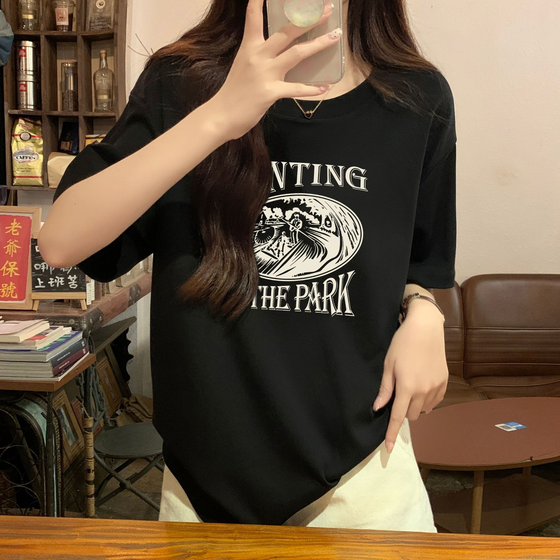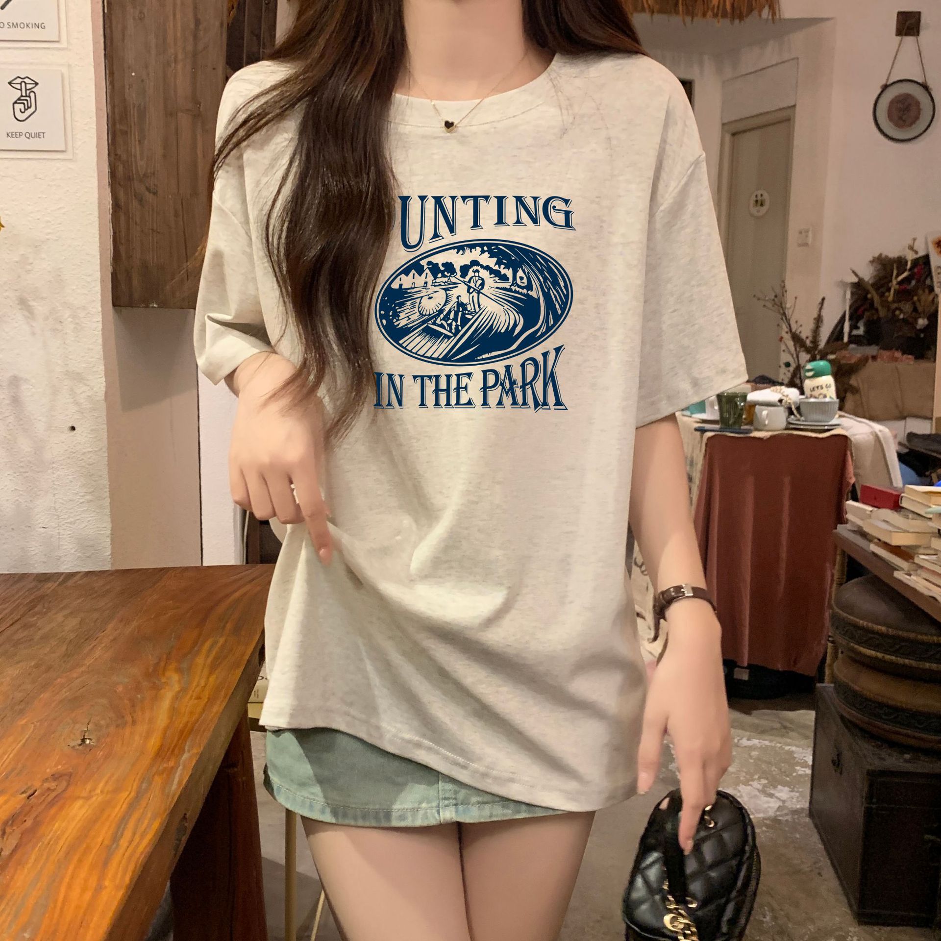 正肩宽松中长短袖t恤女夏季夏设计感小众小个子体恤上衣
