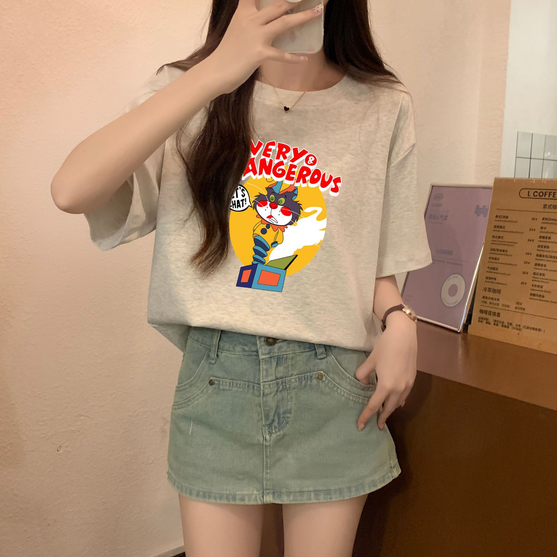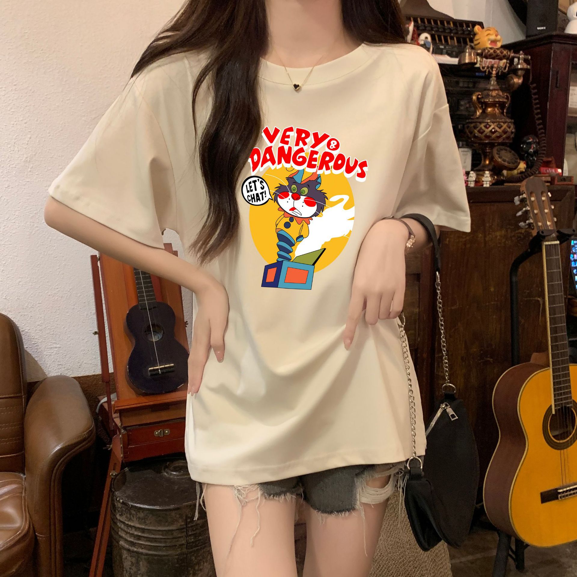 欧美休闲大码女装夏季宽松情侣衫新款美式字母印花短袖T恤ins