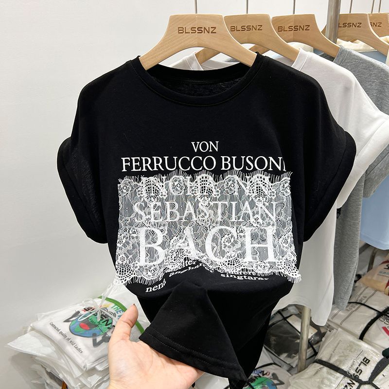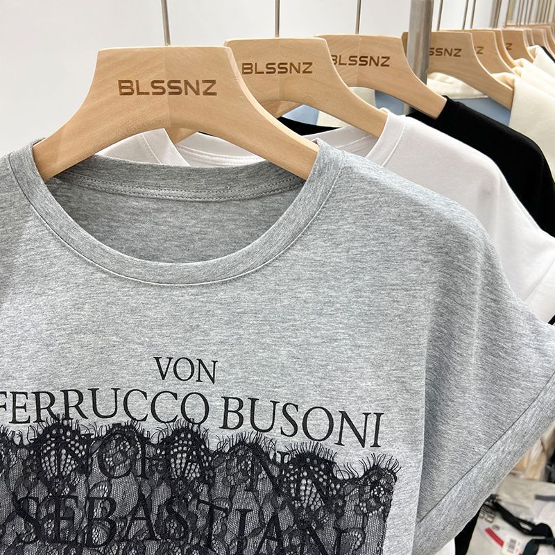 欧洲站短袖t恤女夏宽松漂亮重磅设计感独特高级感蕾丝上衣女夏季