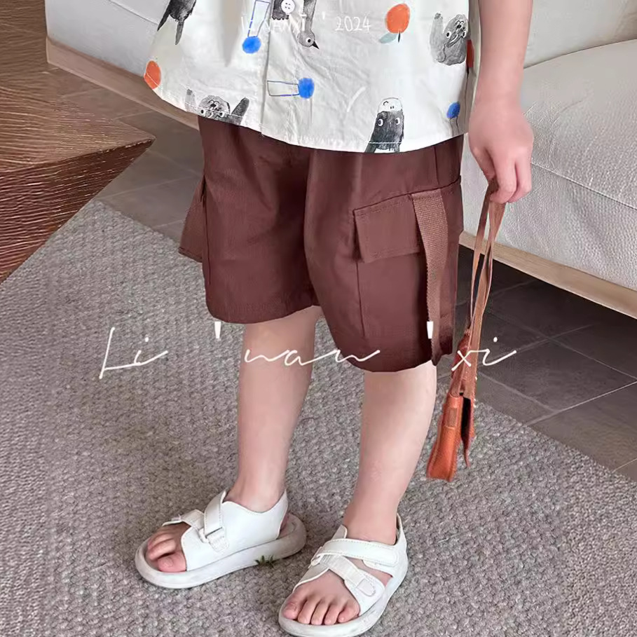 儿童短裤24年夏新款男女童工装风大口袋中裤宝宝休闲五分裤