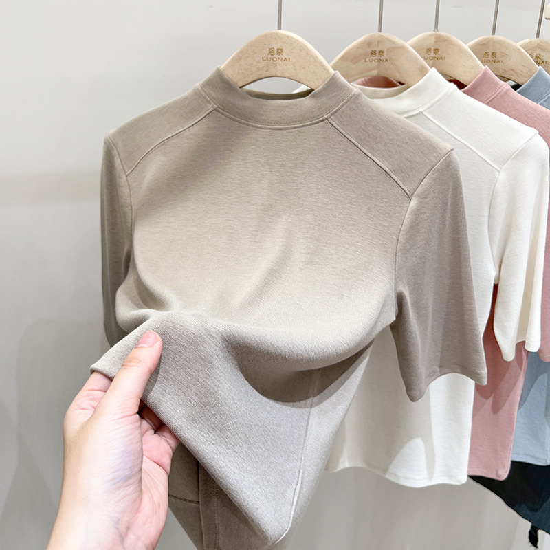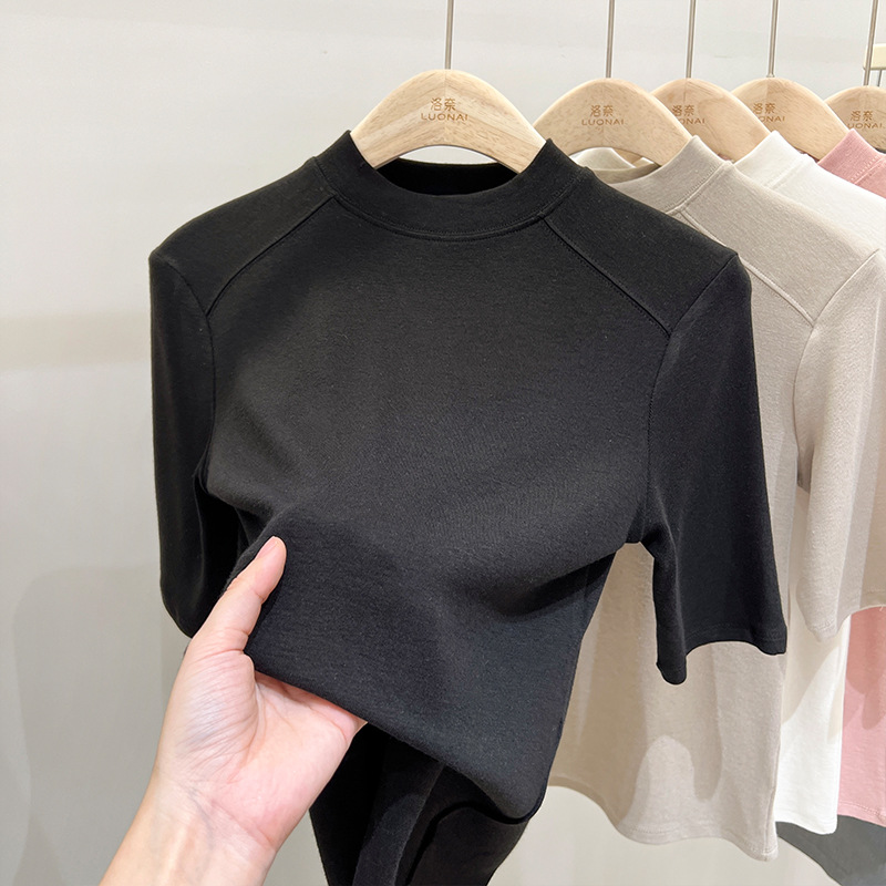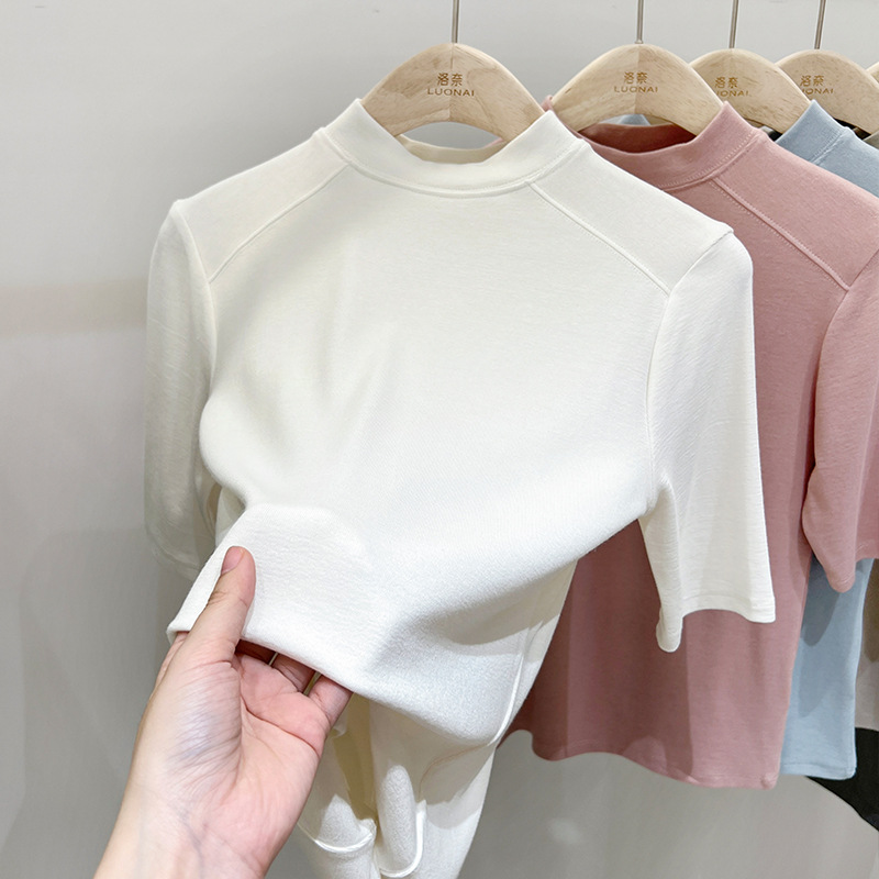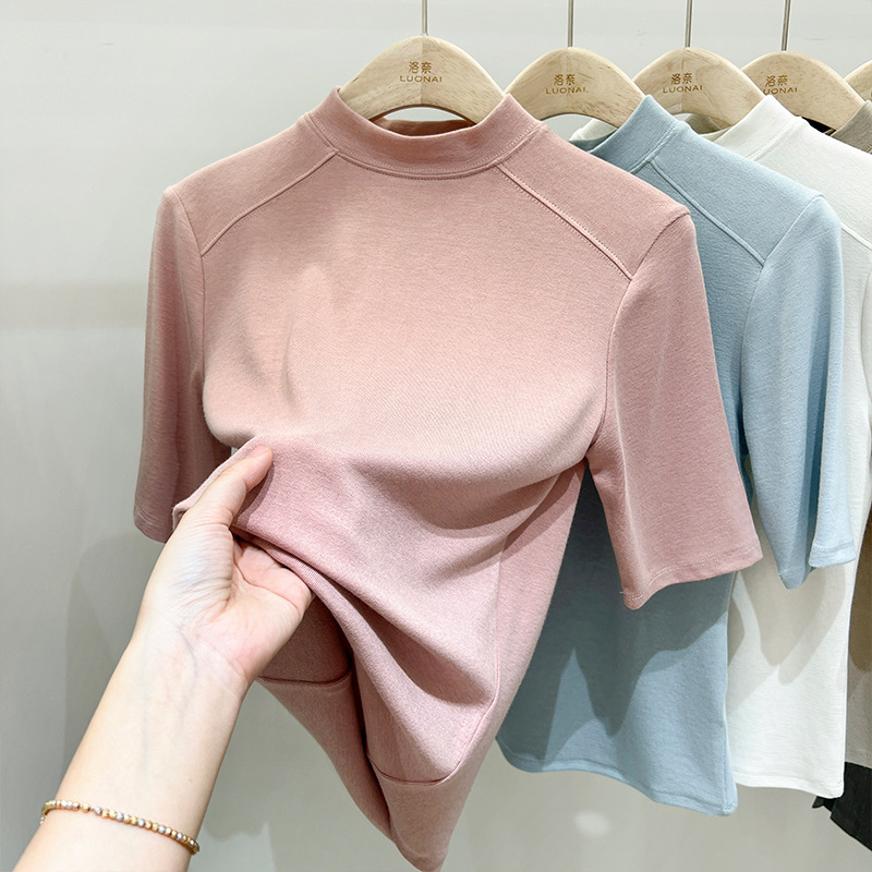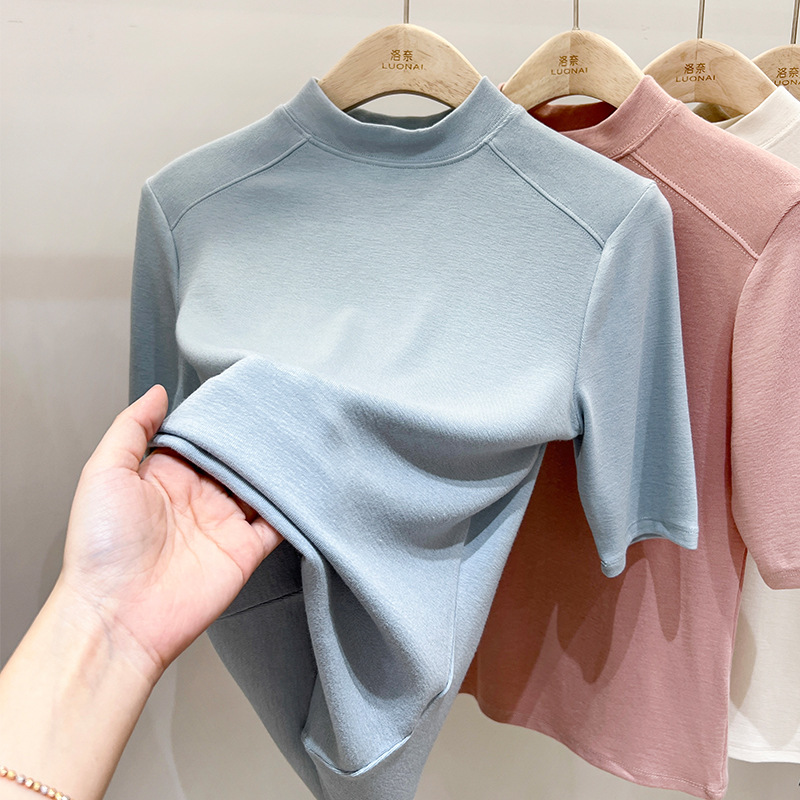 半高领领短袖t恤女ins潮夏季设计感洋气修身七分袖上衣