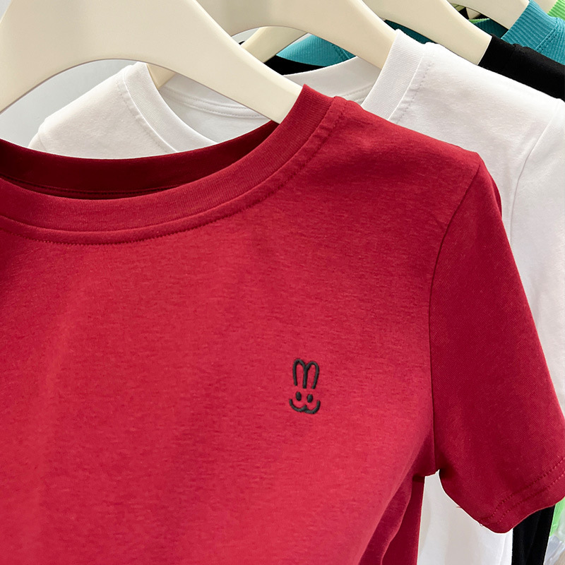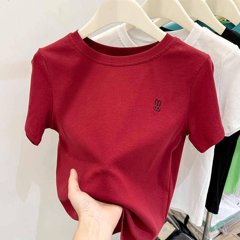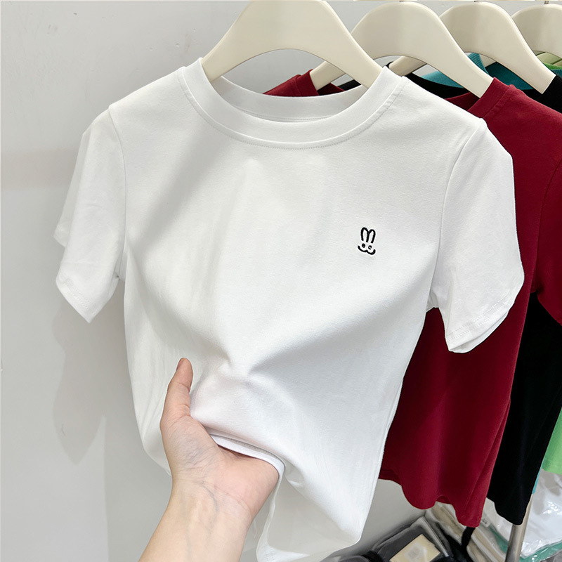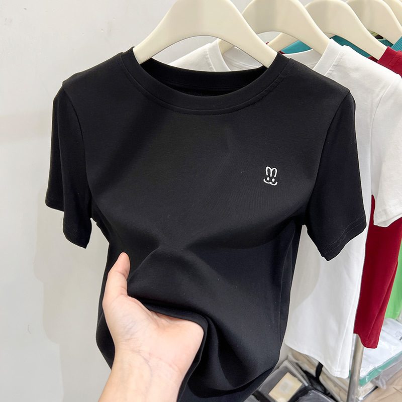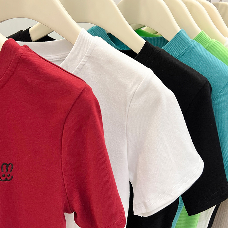 正肩短袖t恤女独特圆领设计感宽松新款欧货上衣别致