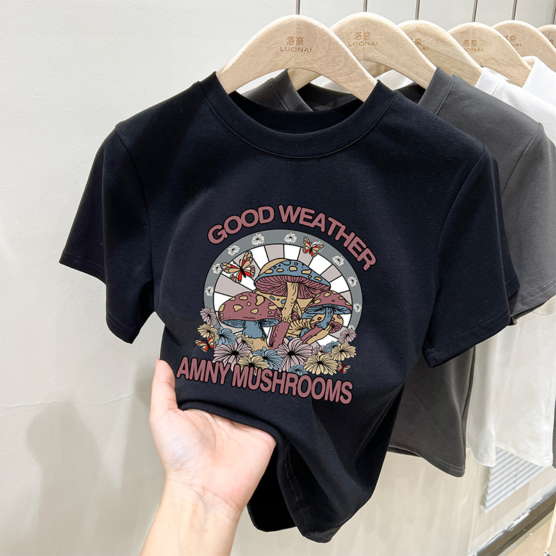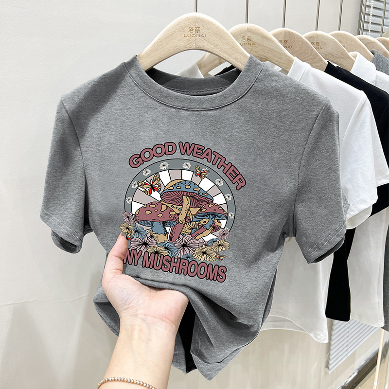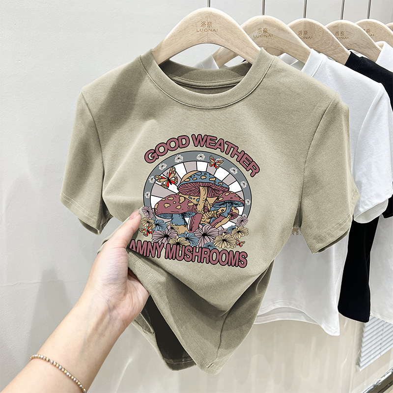 圆领锁骨正肩t恤女短袖夏季高腰短款收腰显瘦辣妹上衣
