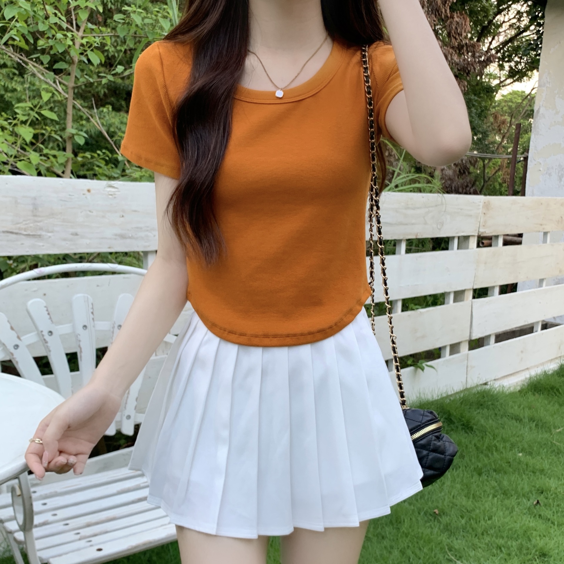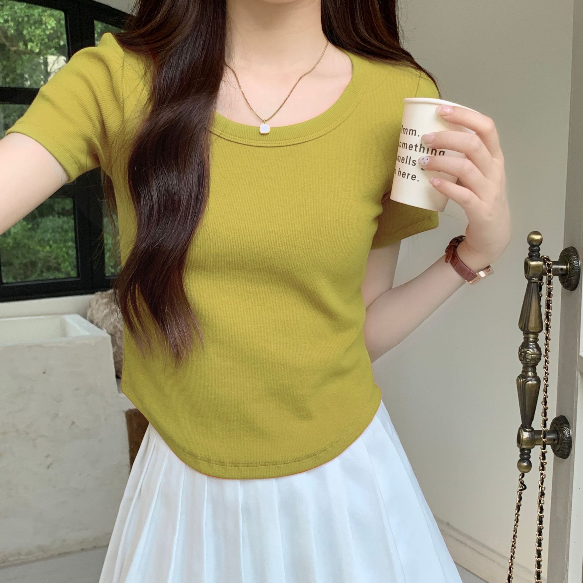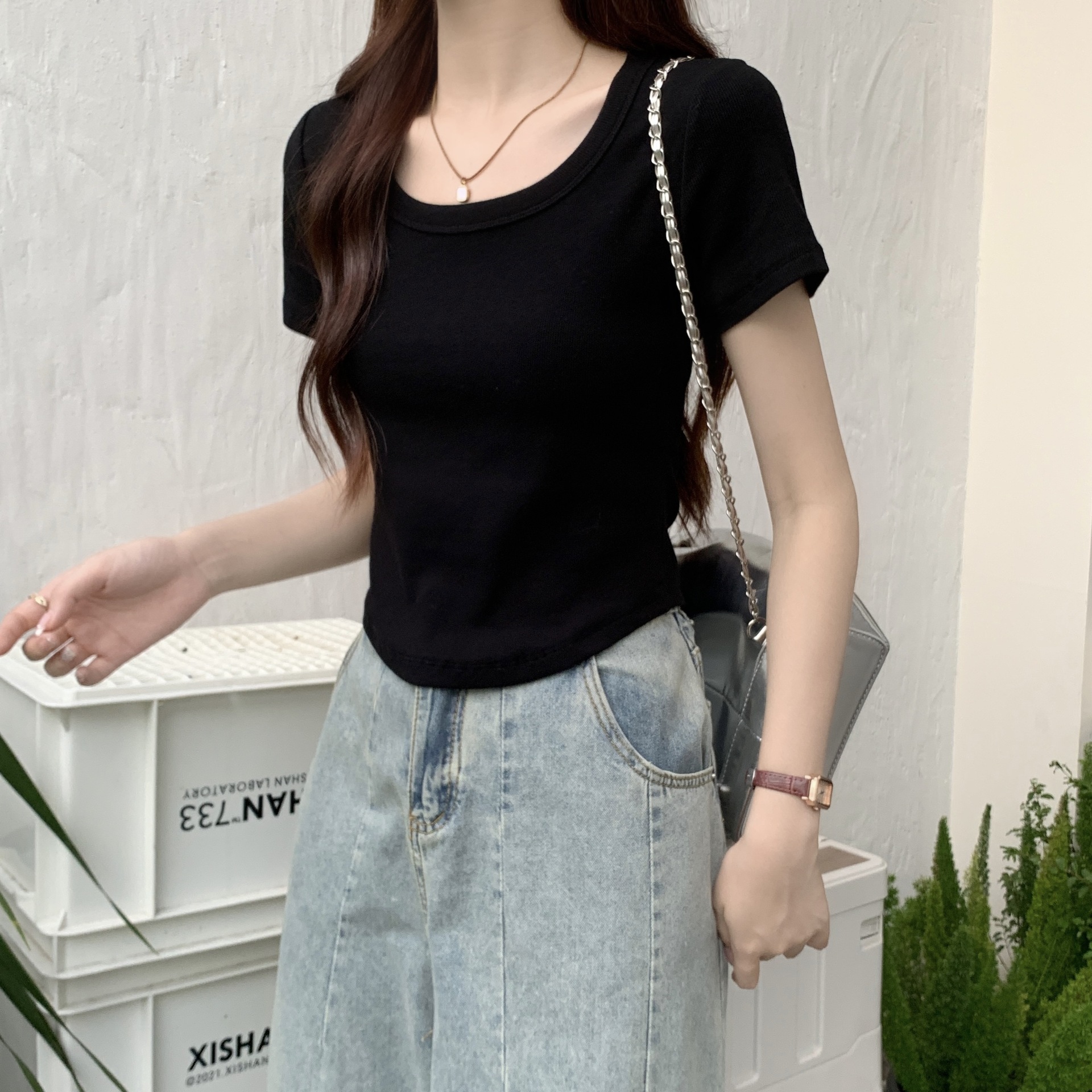 方领冰丝短袖T恤女设计感小众夏季新款修身显瘦辣妹短款上衣潮ins