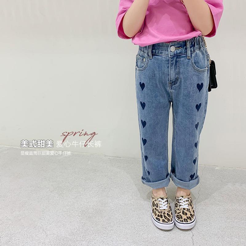 女童韩版洋气爱心牛仔裤薄春夏装新款儿童休闲百搭直筒裤755